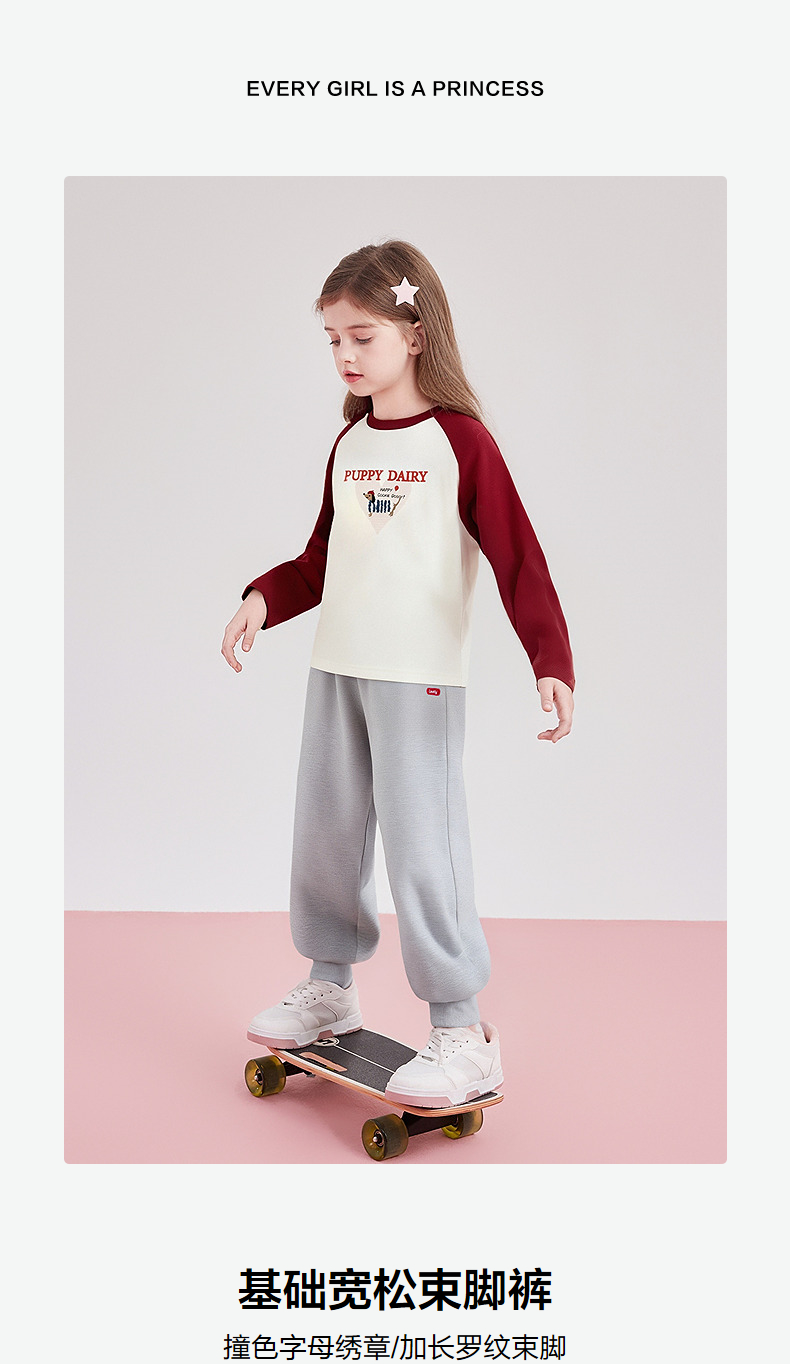 笛莎Deesha 童装女童裤子2025秋新款女童基础宽松束脚裤