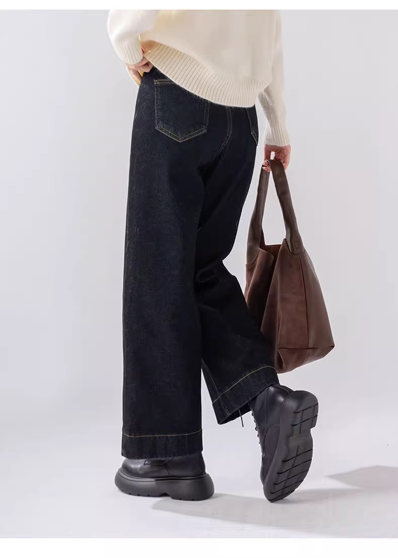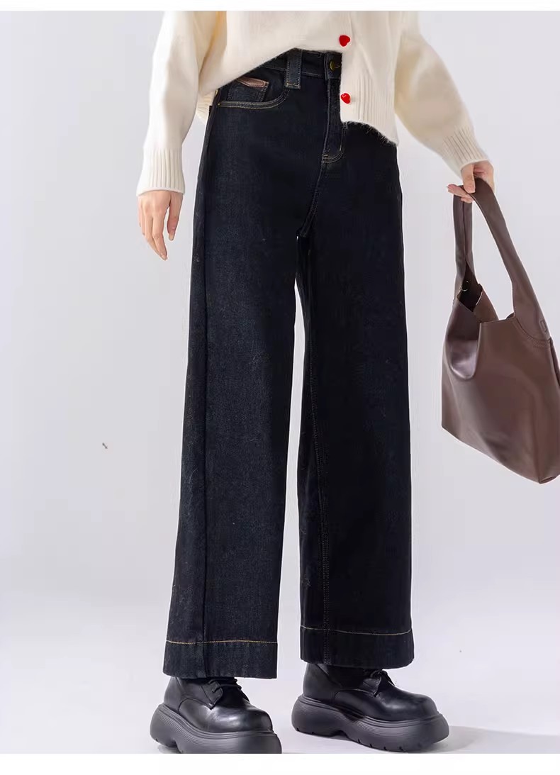 【门店同款】ENJOY冬季冬季复合绒高腰显瘦直筒休闲奶奶裤 160357228