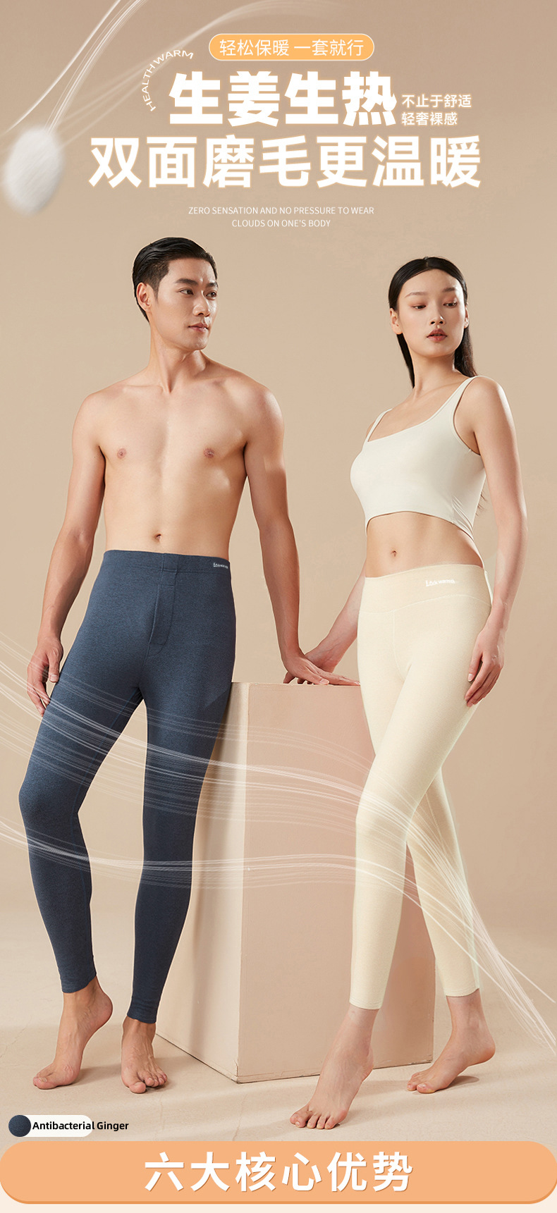 【买一送一 抢2件】情侣款10抗菌暖姜保暖裤 双面磨毛保暖 暖姜精华 10A抗菌 修身显瘦拒绝臃肿 无畏严寒