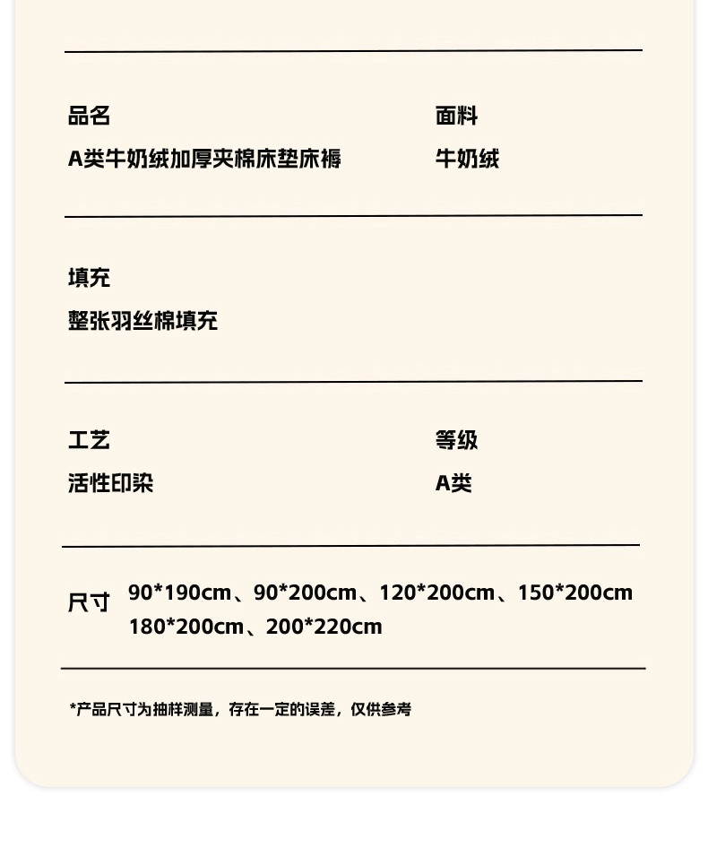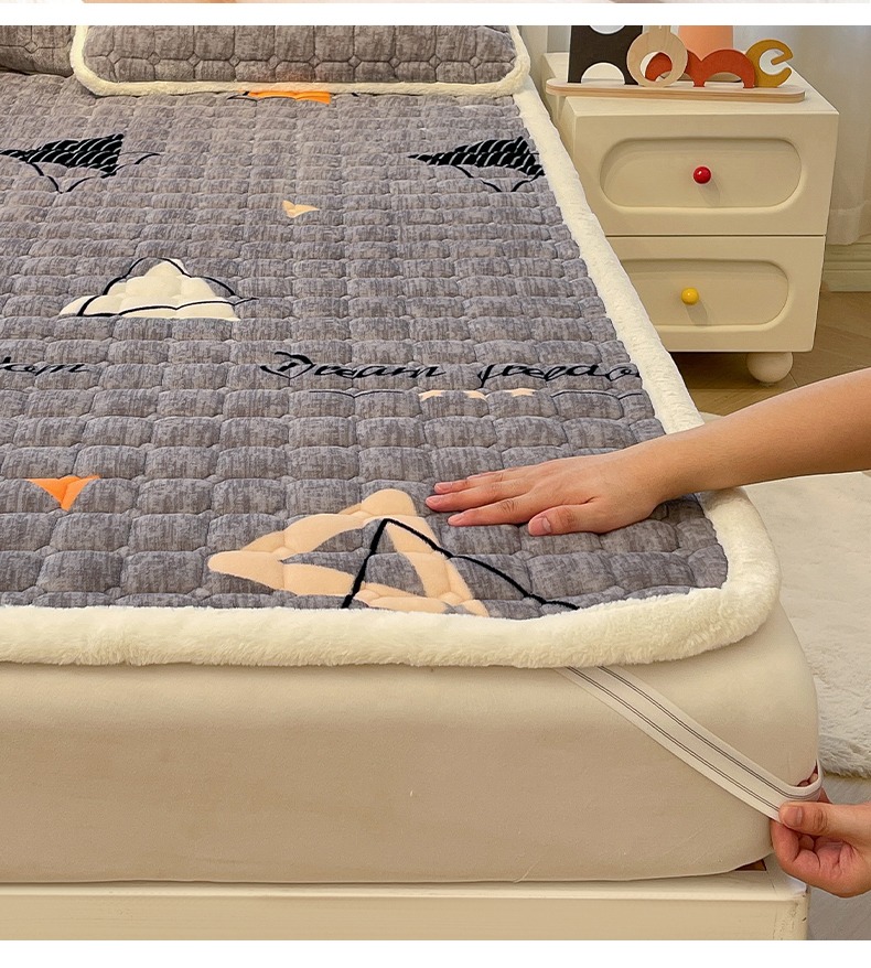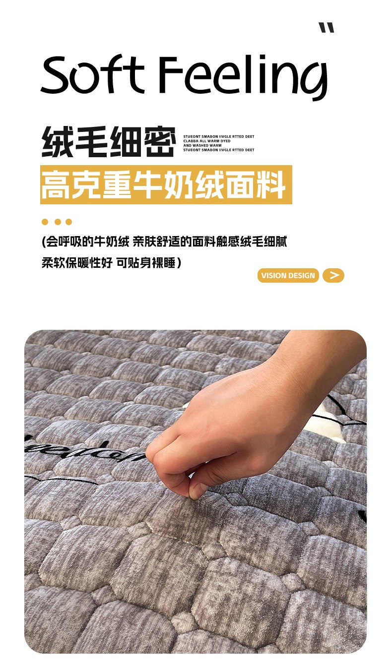 【冬季牛奶绒夹棉床垫】不含枕套 A类母婴 柔软亲肤的牛奶绒面料 0束缚 防汗耐用不掉色不起球