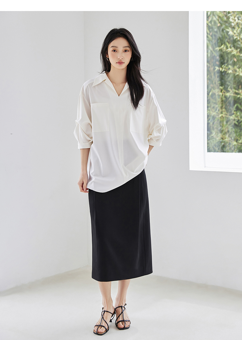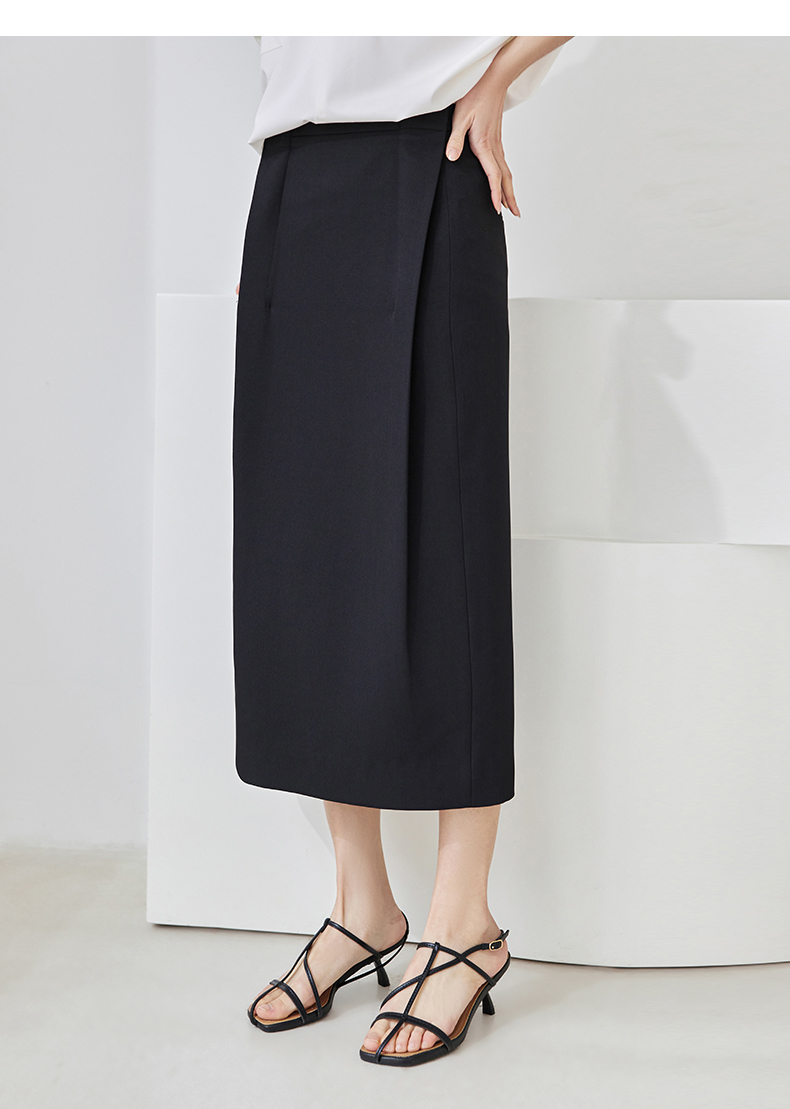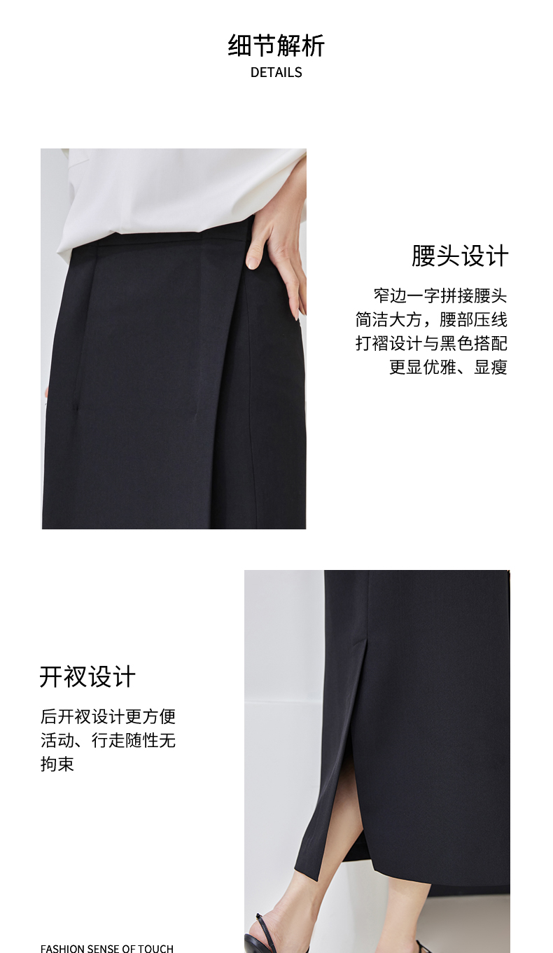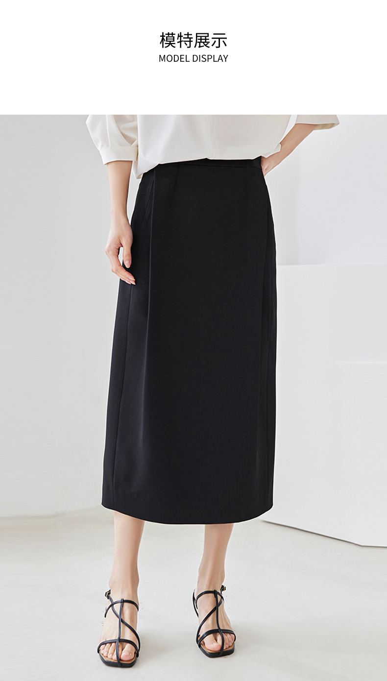 IC 设计感小众后开叉收腰半身裙通勤百搭黑色a字裙高腰直筒中长裙