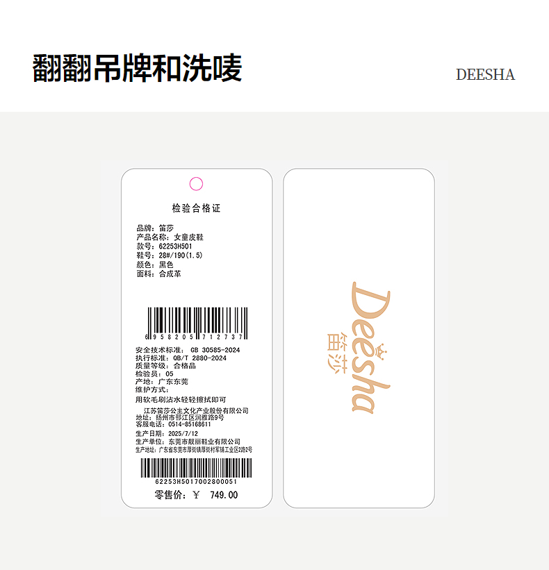 笛莎Deesha 女童童鞋2025秋新款浅口低帮皮鞋