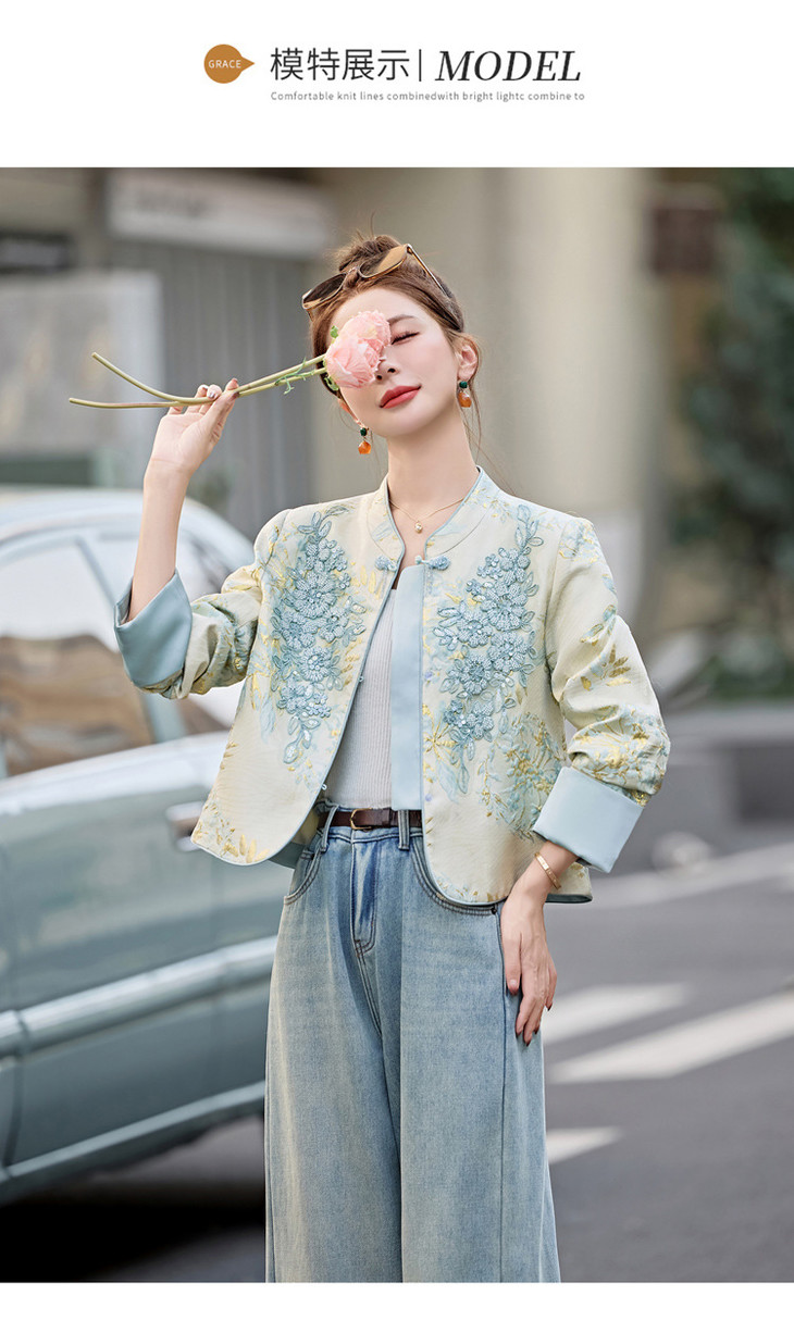 新中式气质国风重工亮片短外套女装春季新款时尚上衣HR-SYY2706 商品图3