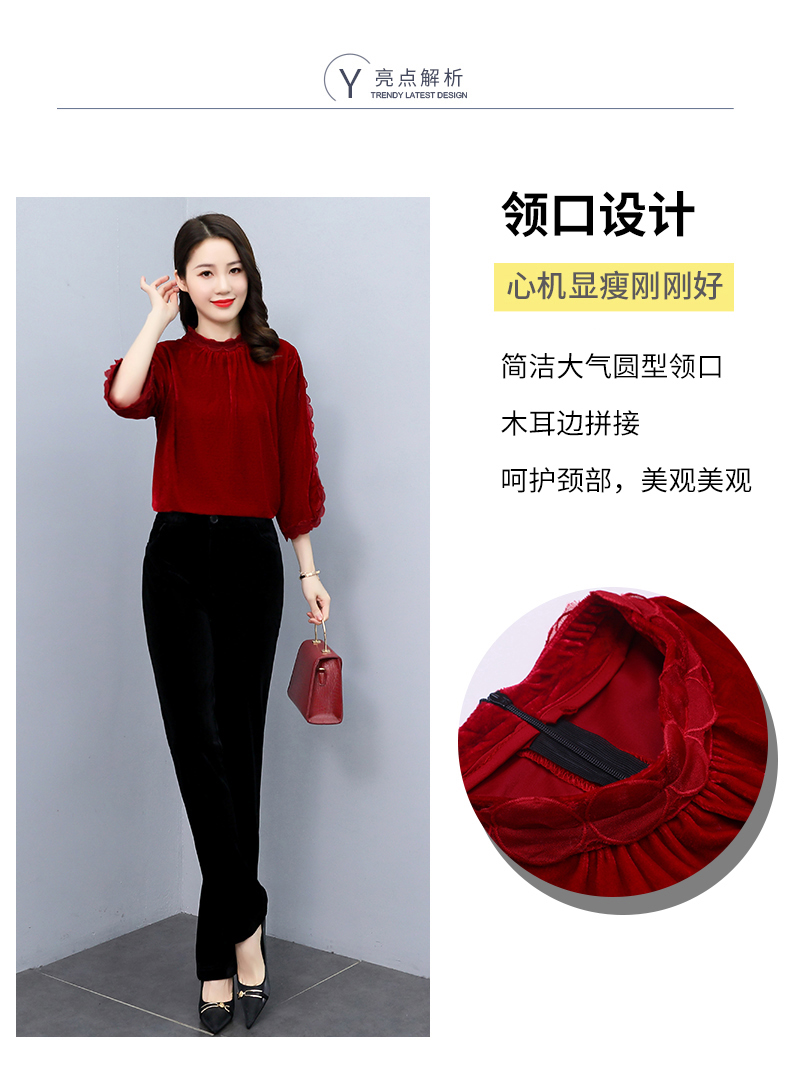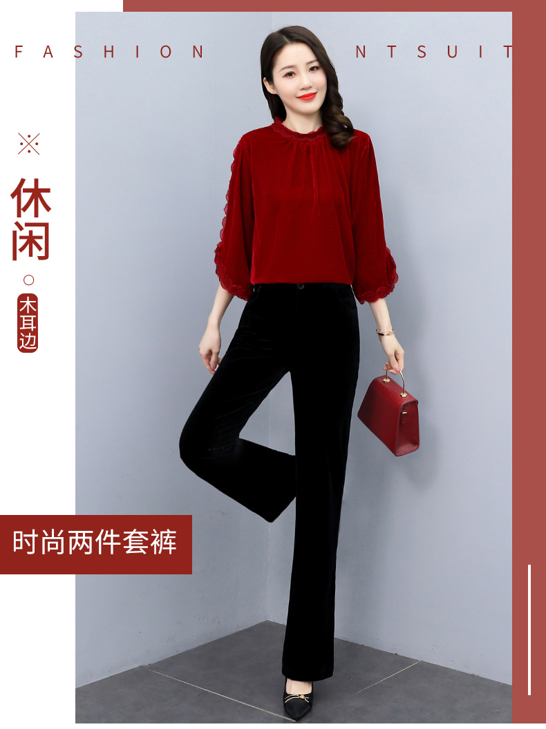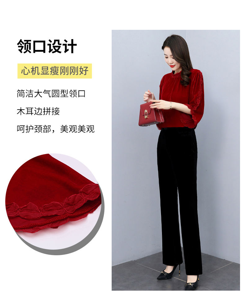 金丝绒时尚优雅潮流舒适套装2022年春季圆领个性气质 HR-HRYZ7721