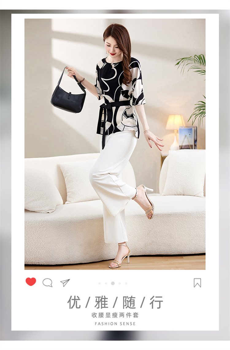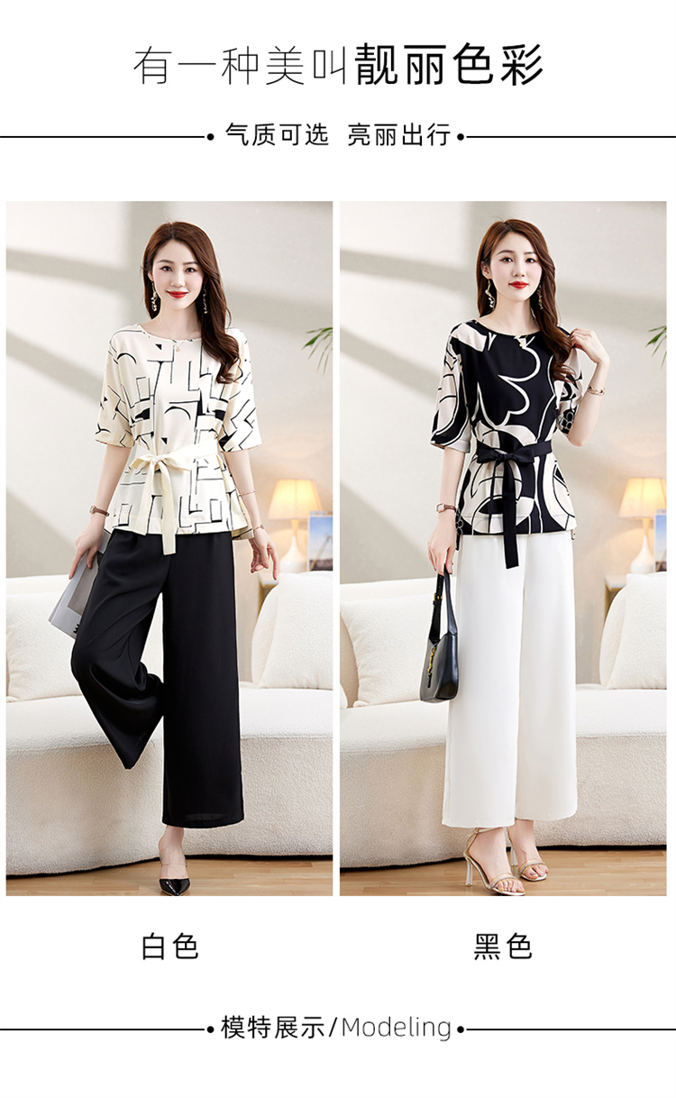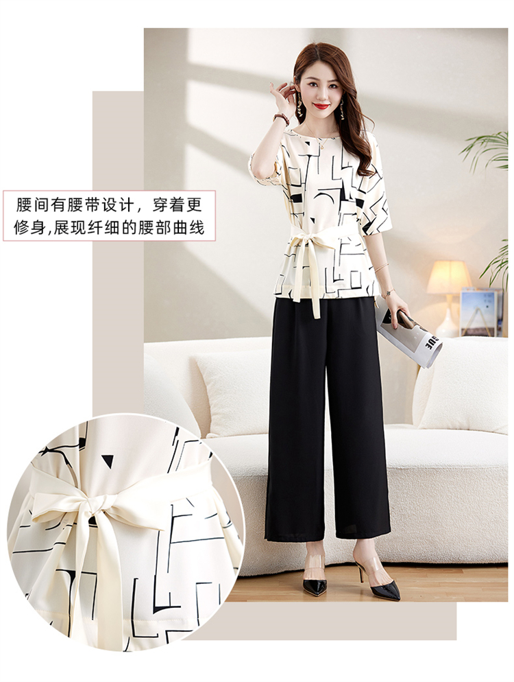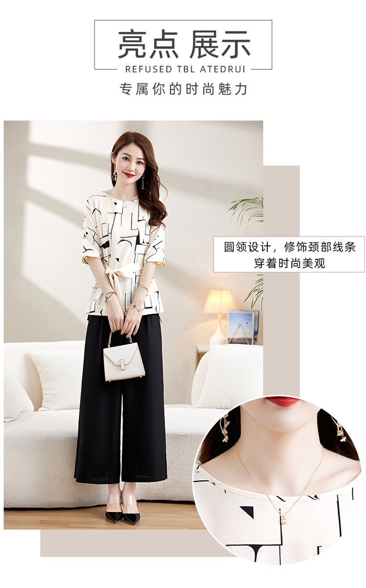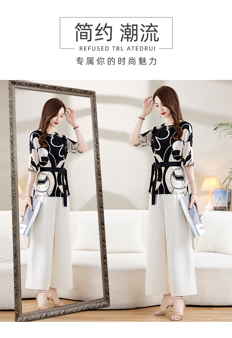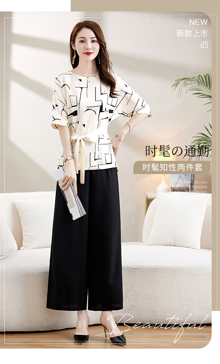 减龄漂亮洋气印花,时尚阔腿裤子两件套装HR-XXL6820