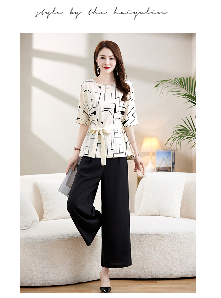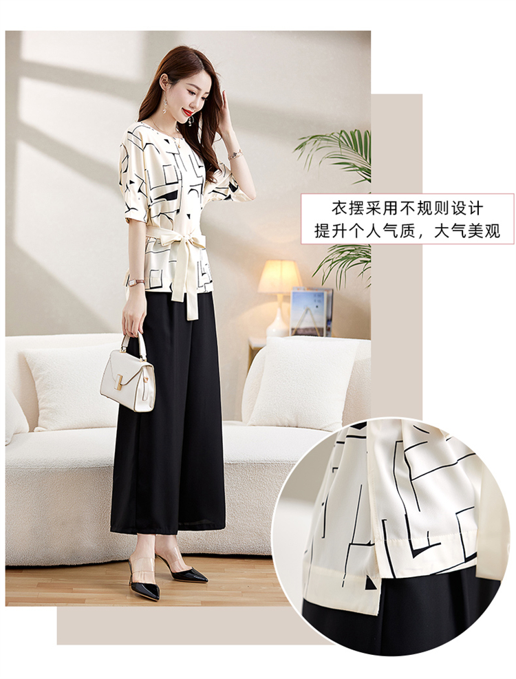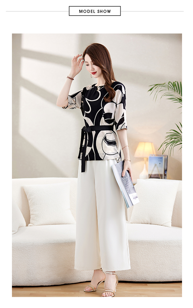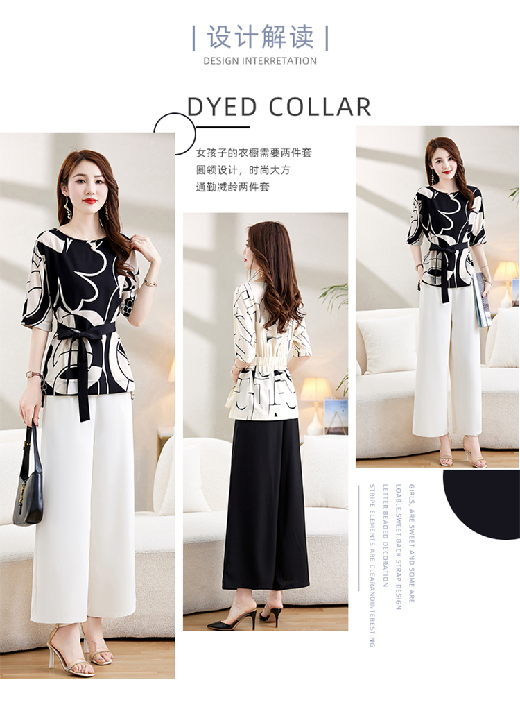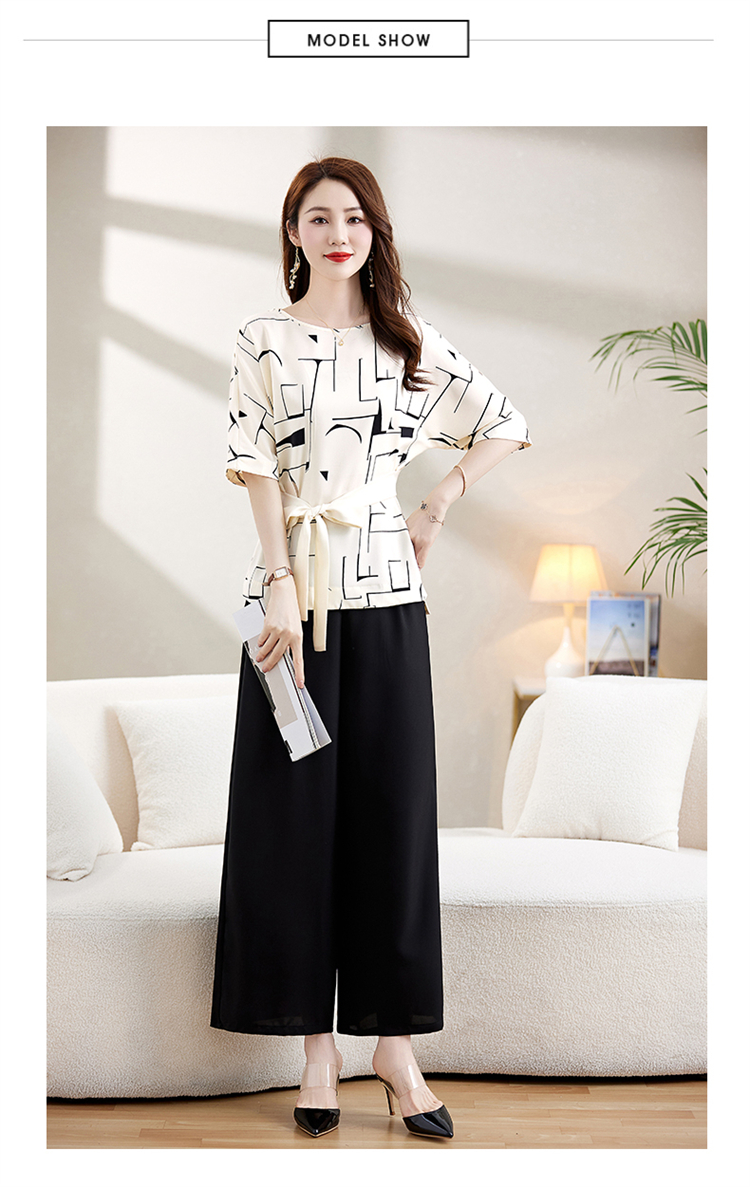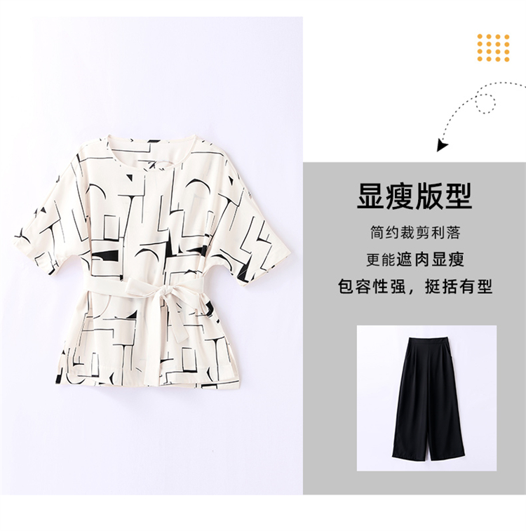减龄漂亮洋气印花,时尚阔腿裤子两件套装HR-XXL6820
