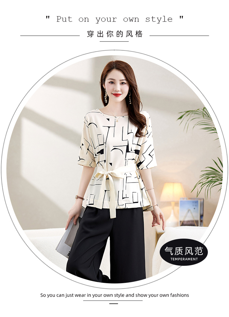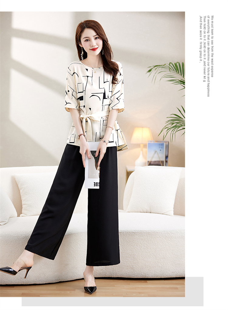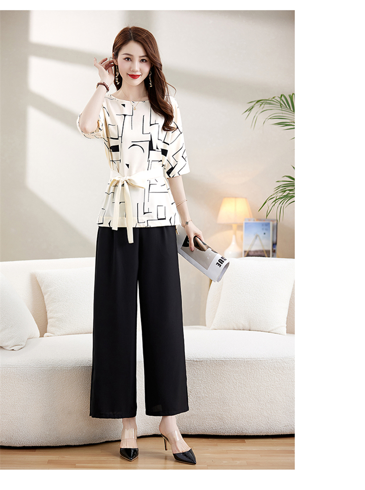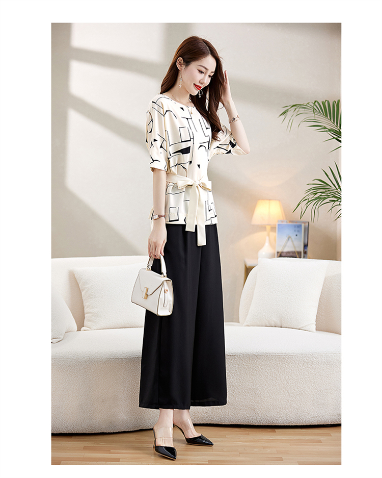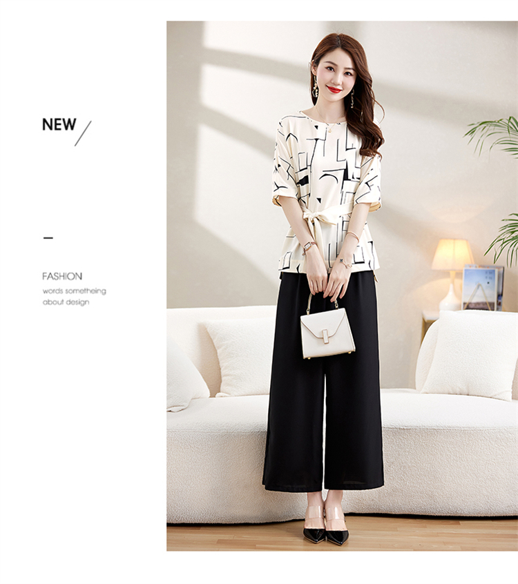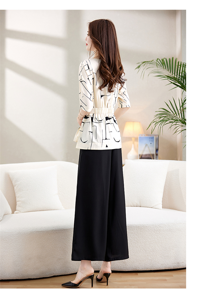 减龄漂亮洋气印花,时尚阔腿裤子两件套装HR-XXL6820