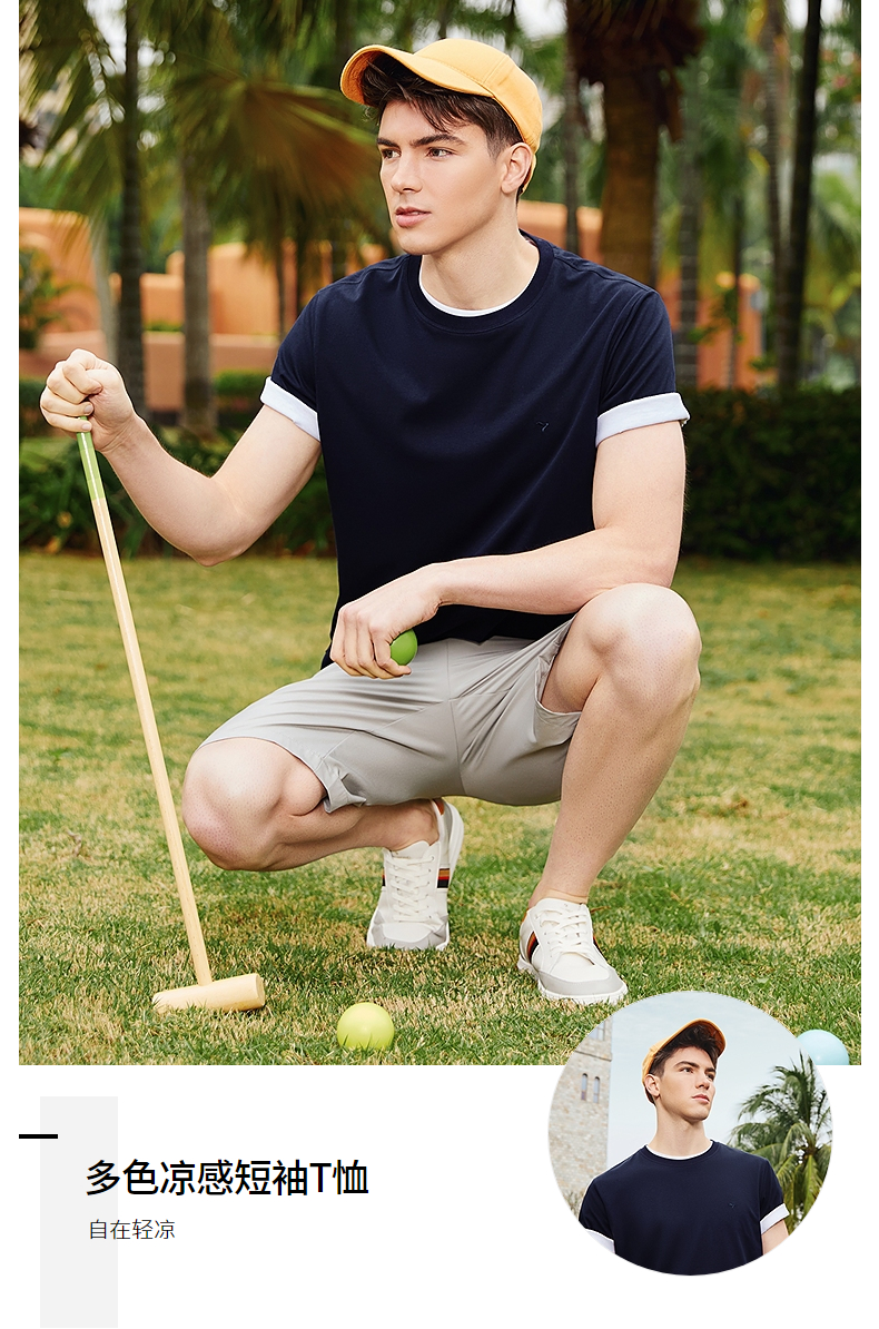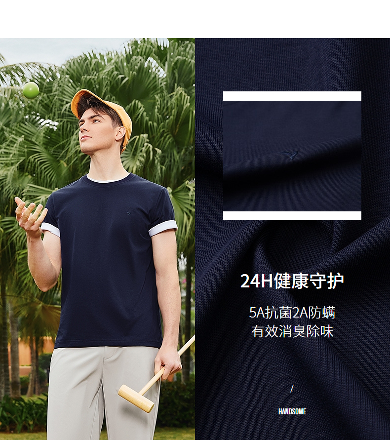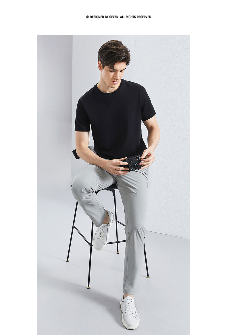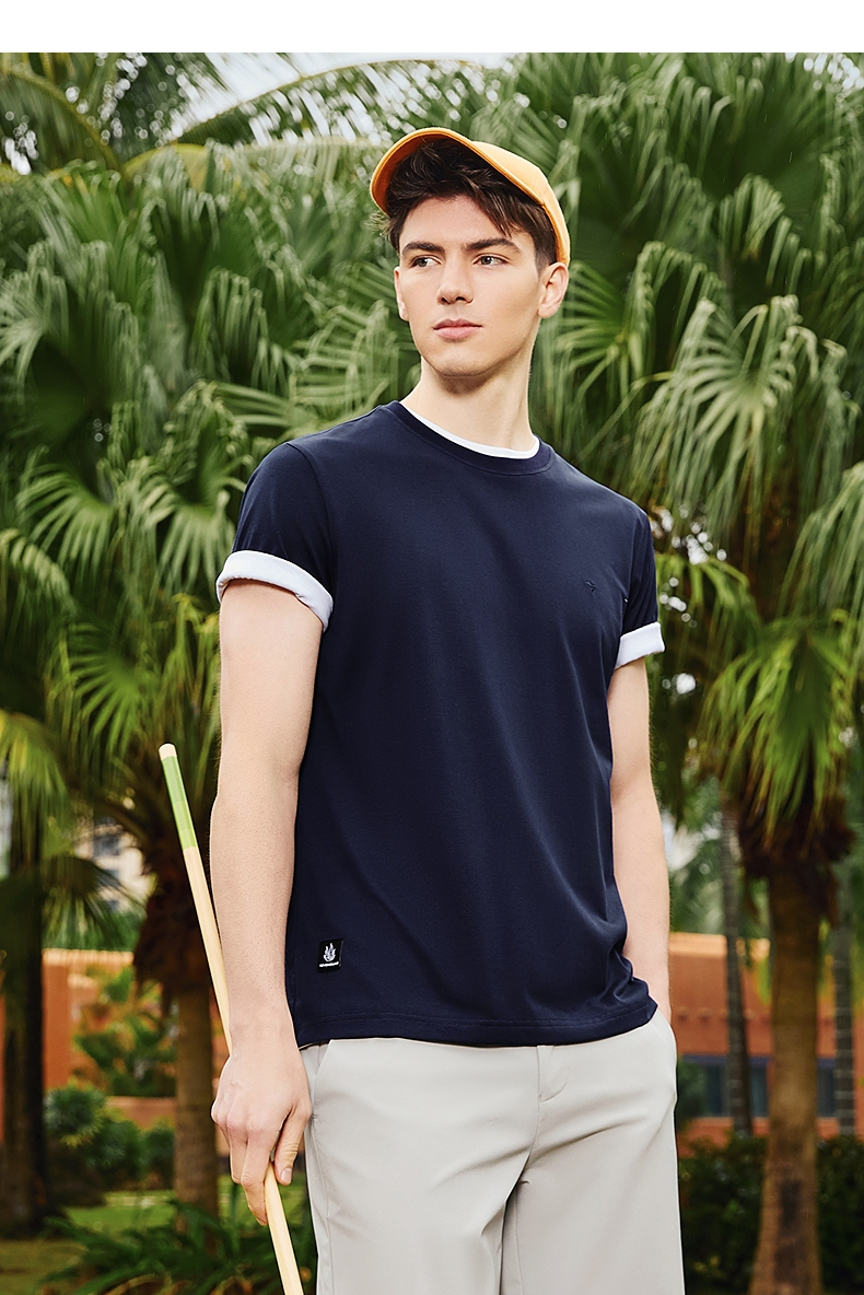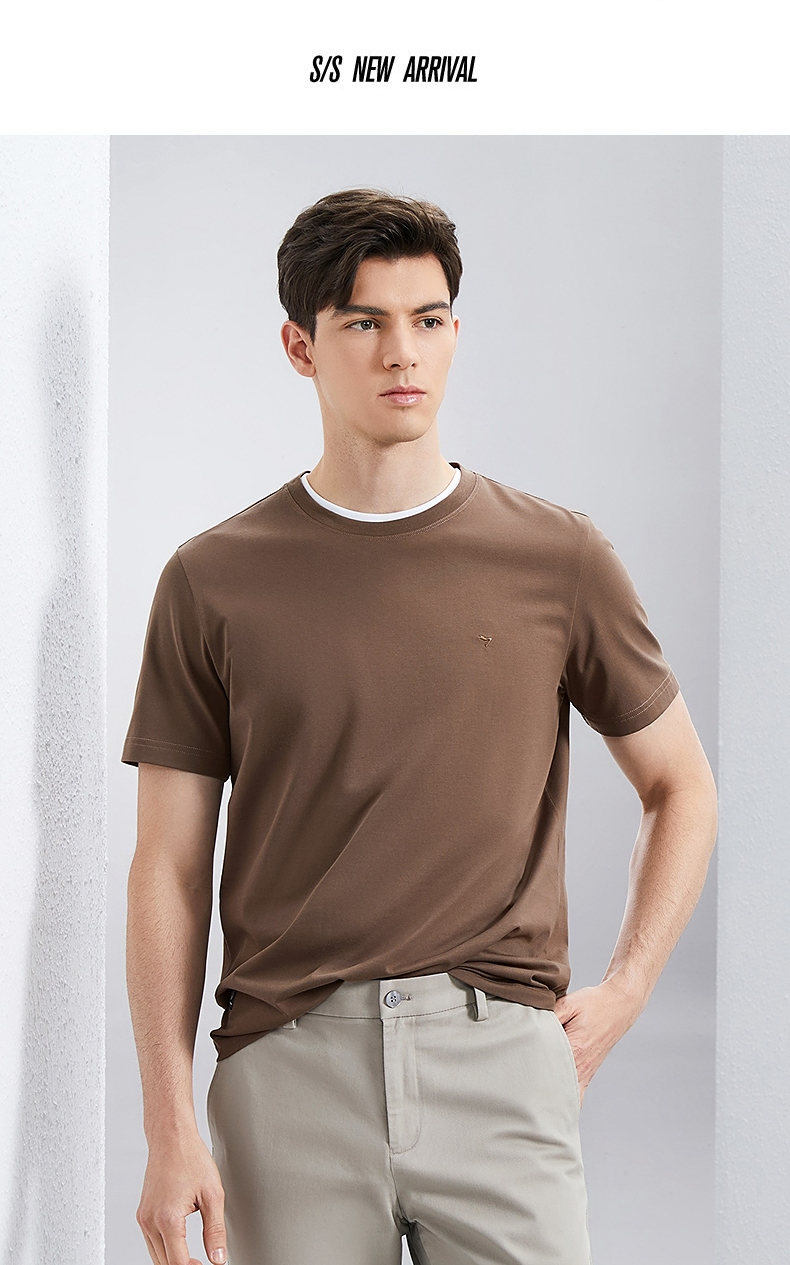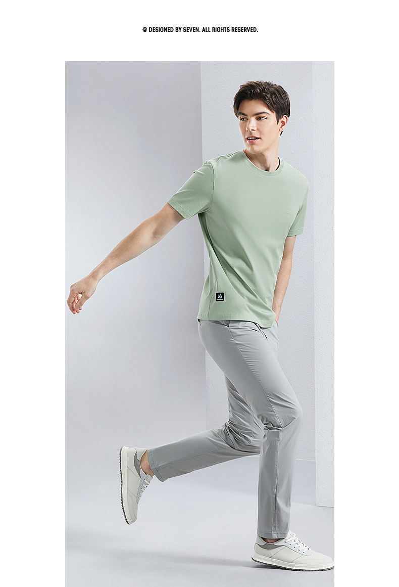 【冰藻泥】柒牌短袖T恤男2024夏季新款时尚休闲多色凉感圆领上衣126T71570