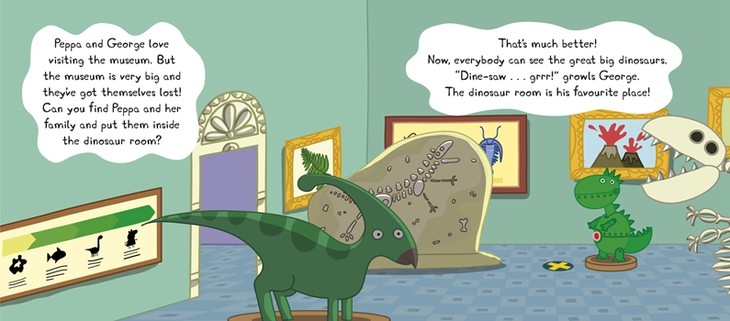 小猪佩琪和弟弟乔治非常喜欢参观博物馆! 不过博物馆太大了,他们全家走散了,你能帮忙把小猪佩琪一家找出来并放到合适定位位置吗?接下来是到公园野餐的时间咯,好多的食物,一样,先把小猪佩琪一家找出来吃饭吧,他们一定饿坏了……