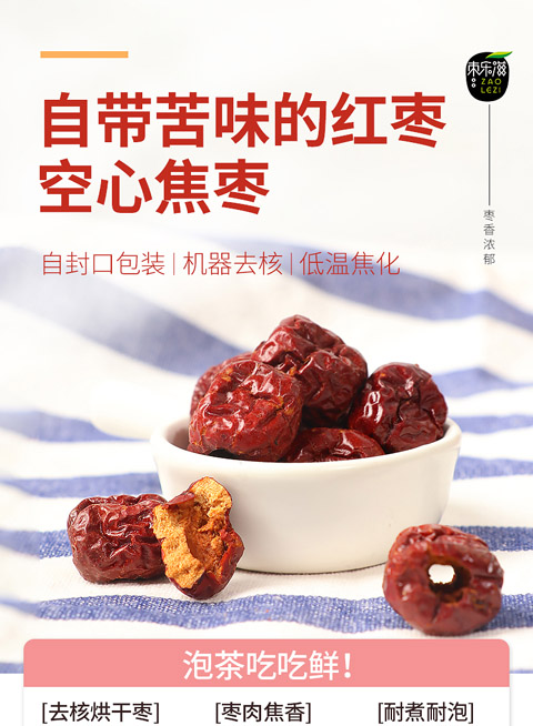 无核空心焦枣 烘干无油 枣肉焦香 耐煮耐泡 自然糖化无添加 泡茶煮粥好伴侣 吃了不上火