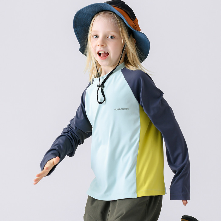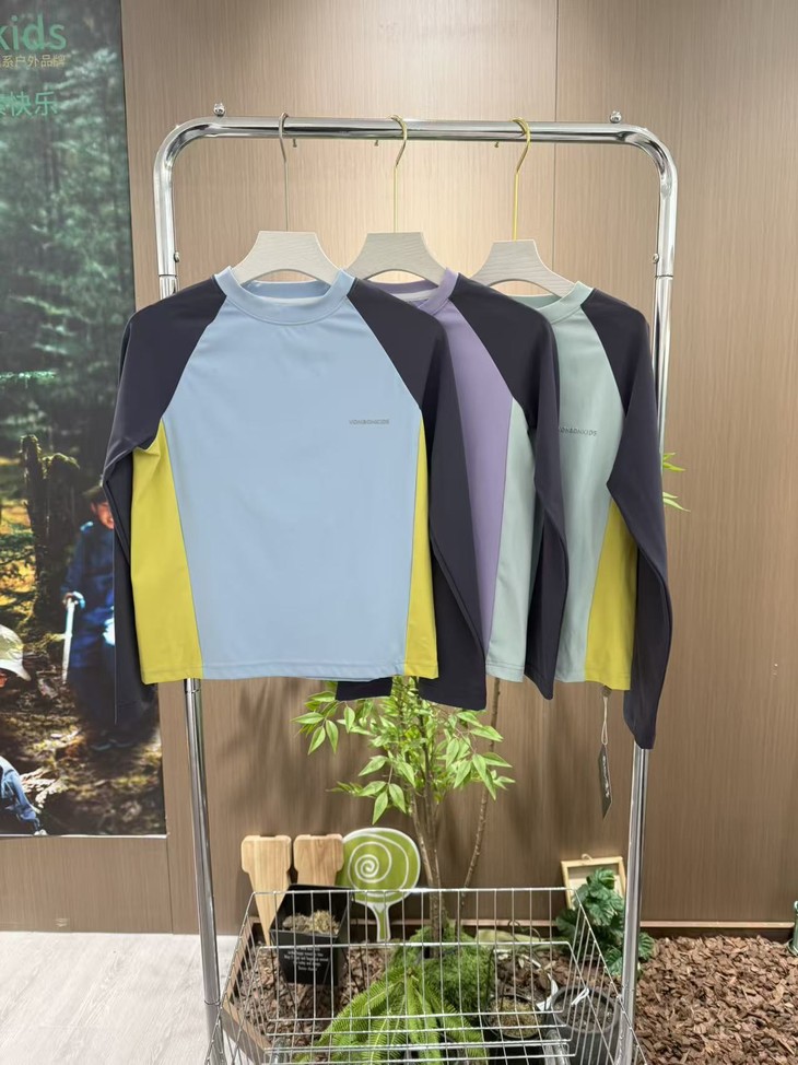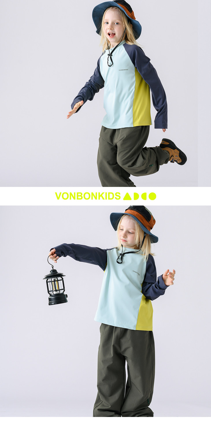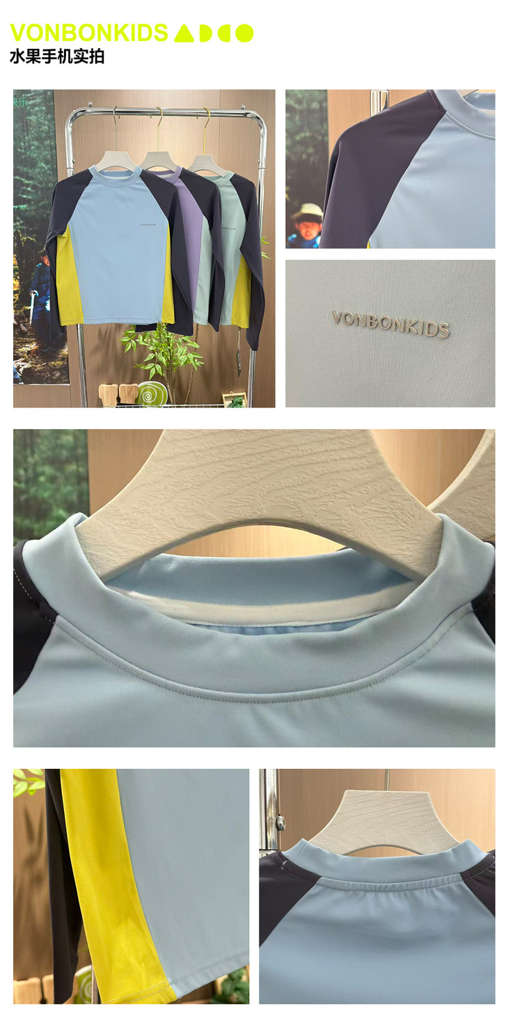 这款山系小凉皮上衣的拼接撞色设计,是它的一大亮点: 视觉层次:打破了纯色的单调感,让整体造型更有层次和立体感。 山系氛围:每个颜色的组合自带户外清爽感,侧边的拼色设计又增添了活力感,完美契合山系户外的潮酷调性,让孩子穿出门就是整条街最亮眼的崽。 百搭属性:搭配不挑下装,无论是同系列的黄色运动裤,还是日常的牛仔裤、短裤,都能轻松适配,一件就能穿出多种风格。