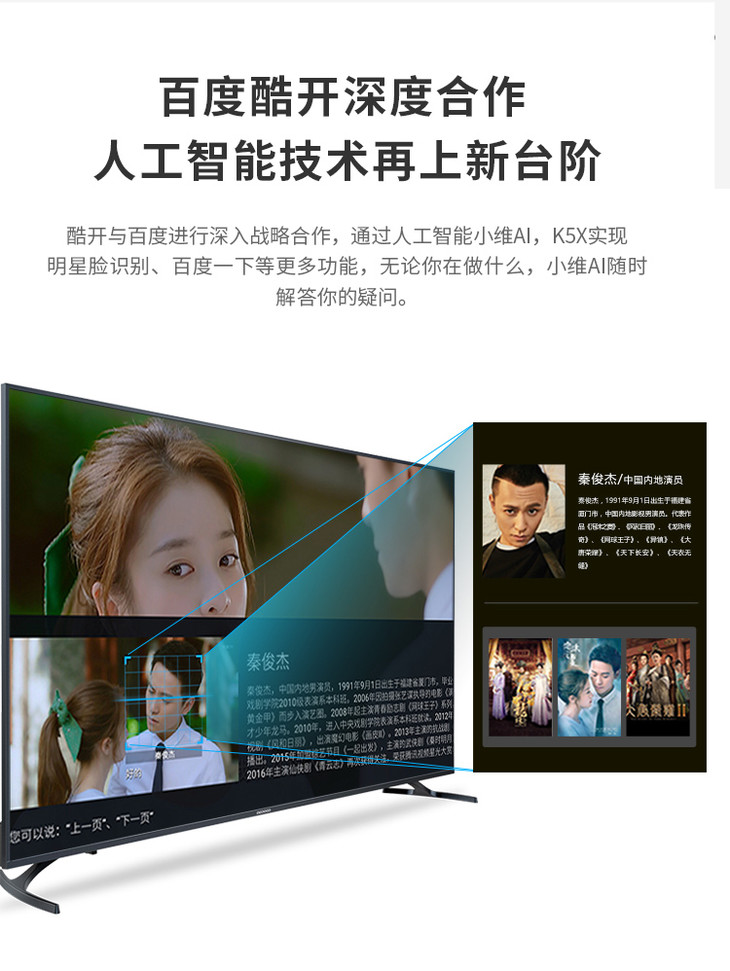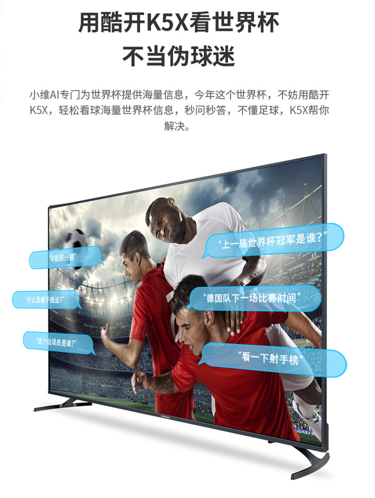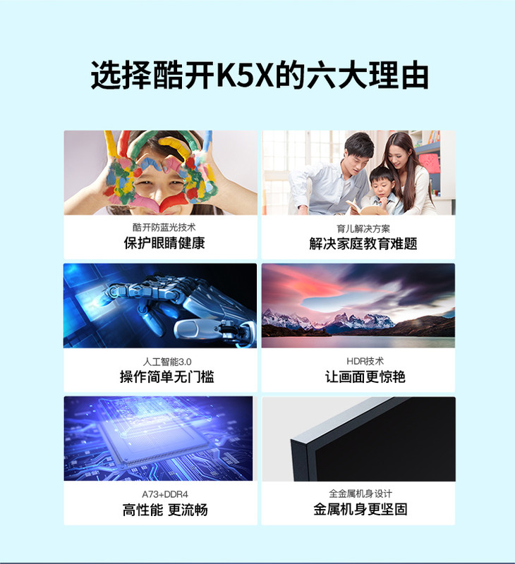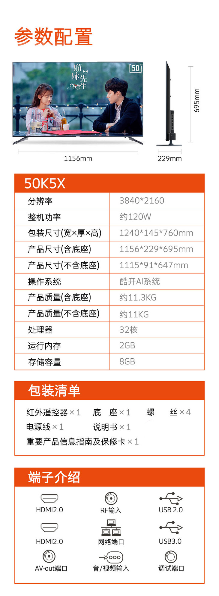 创维 酷开(coocaa) 50K5X 50英寸 4K超高清 爱奇艺影视 防蓝光护眼 HDR 32核 人工智能液晶网络电视机