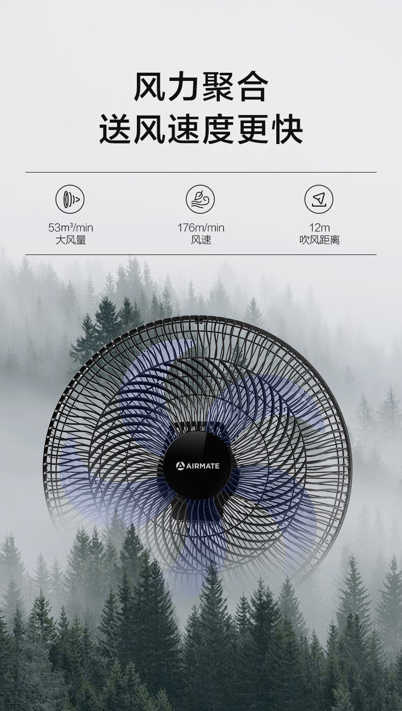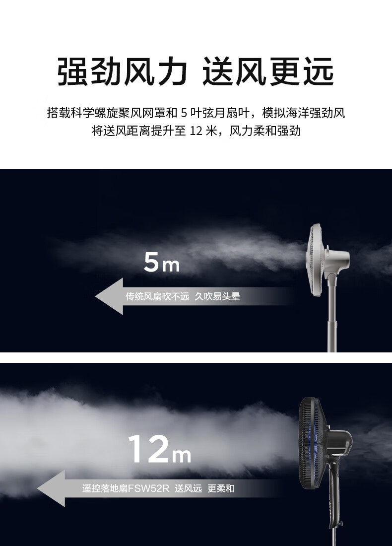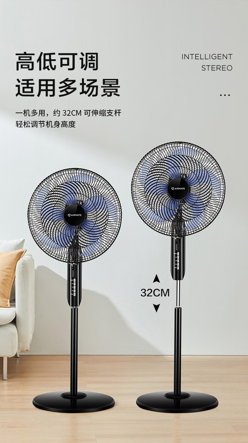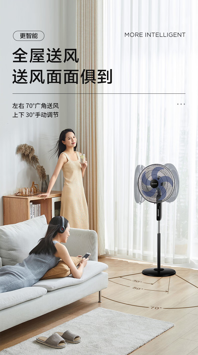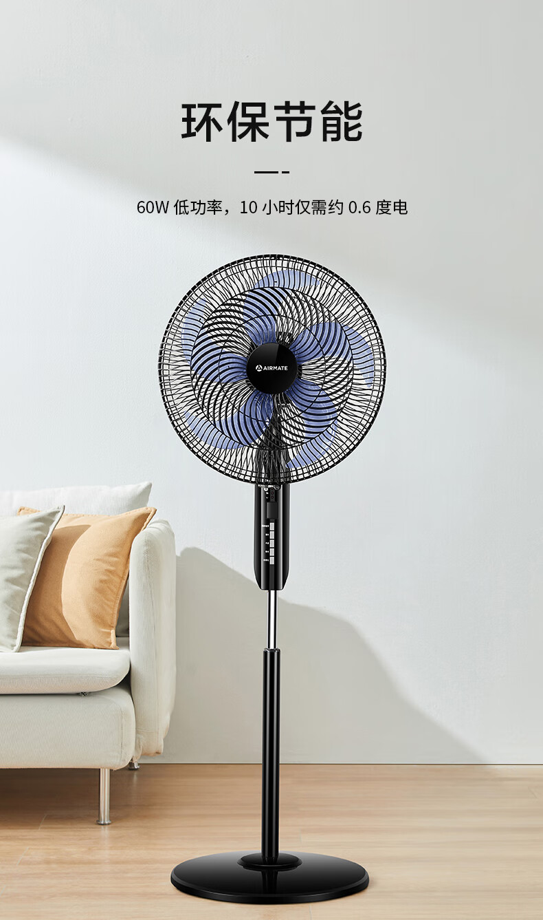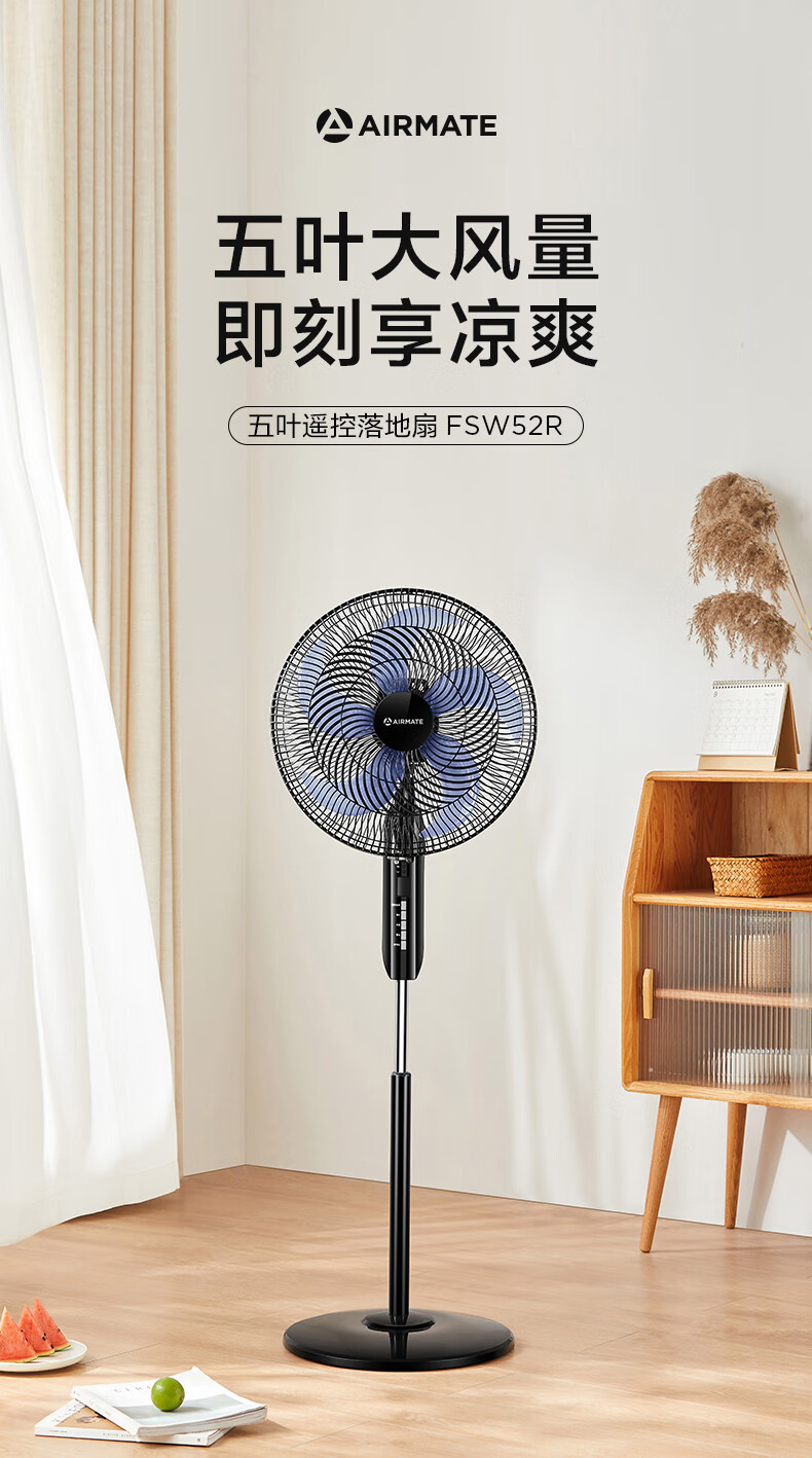 艾美特(AIRMATE)五叶 家用智能遥控 电风扇 大风量摇头立式 落地扇 节能轻音 定时电扇 宿舍降温风扇 FSW52R