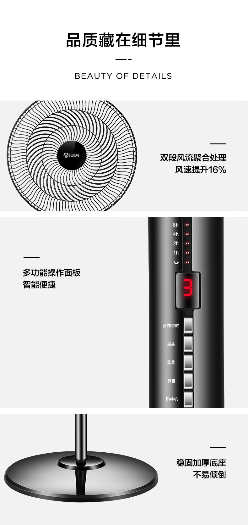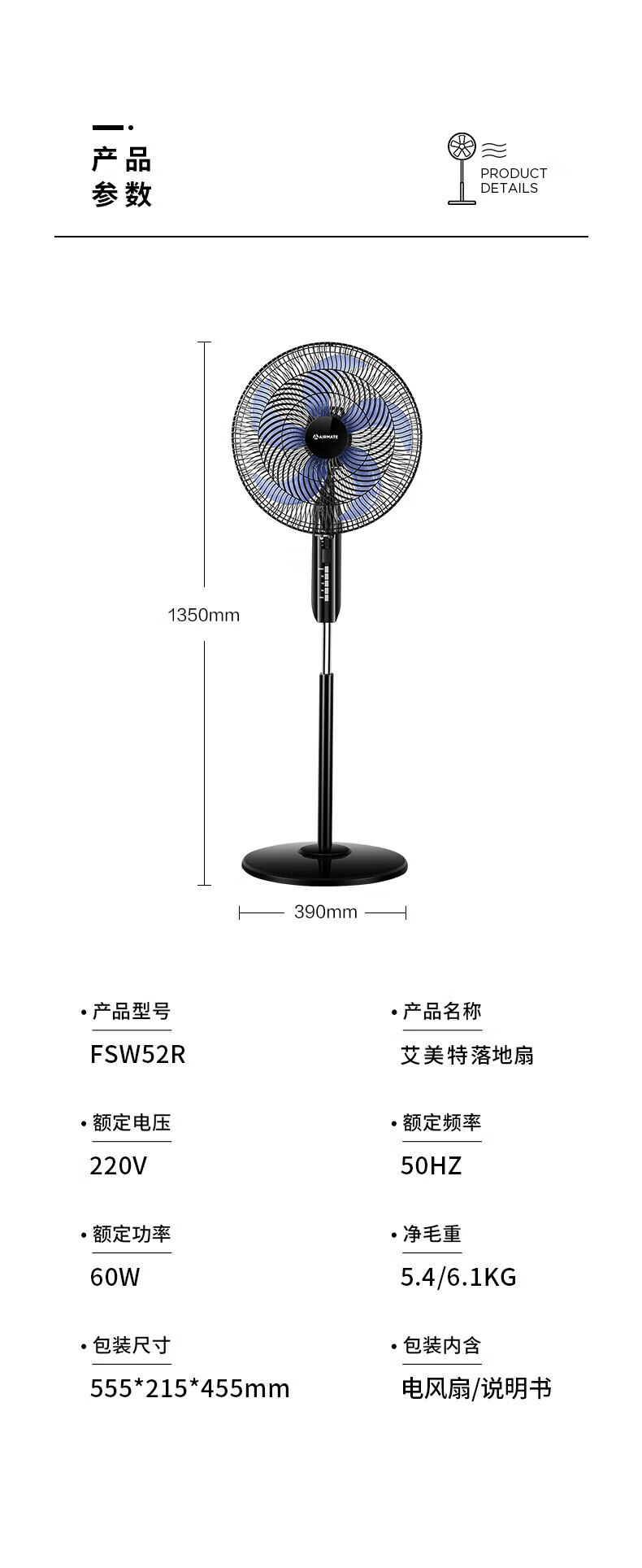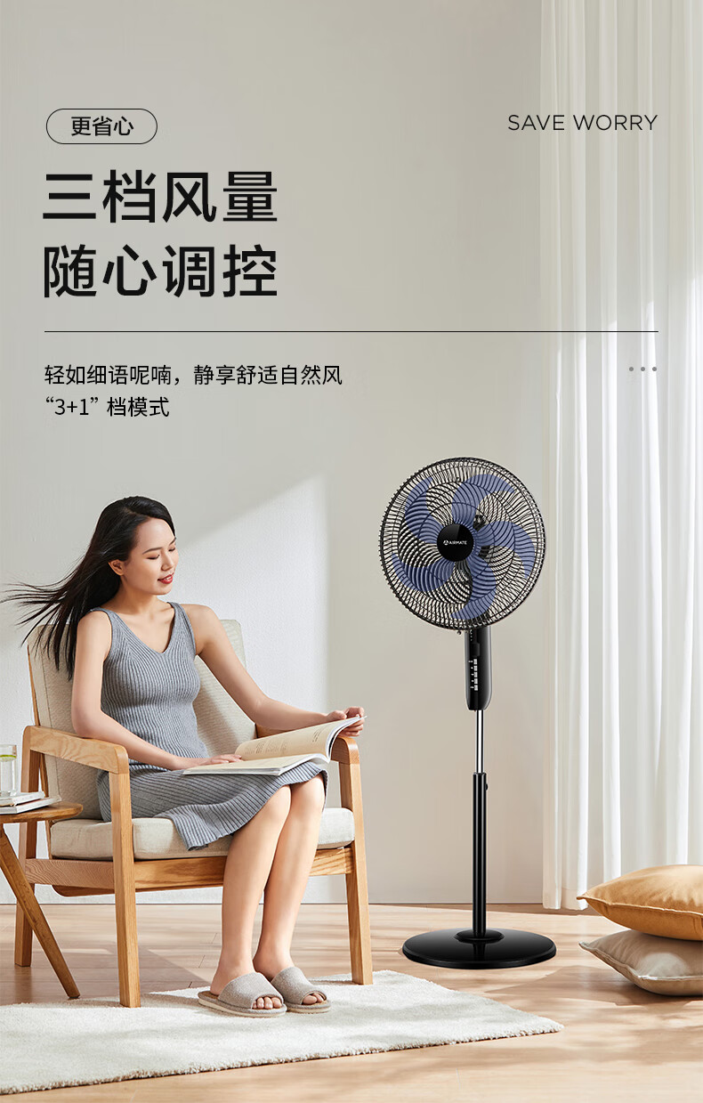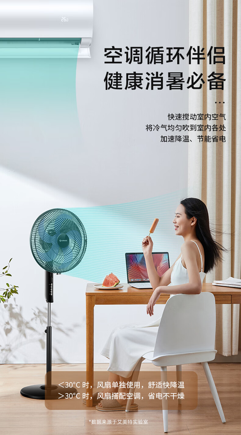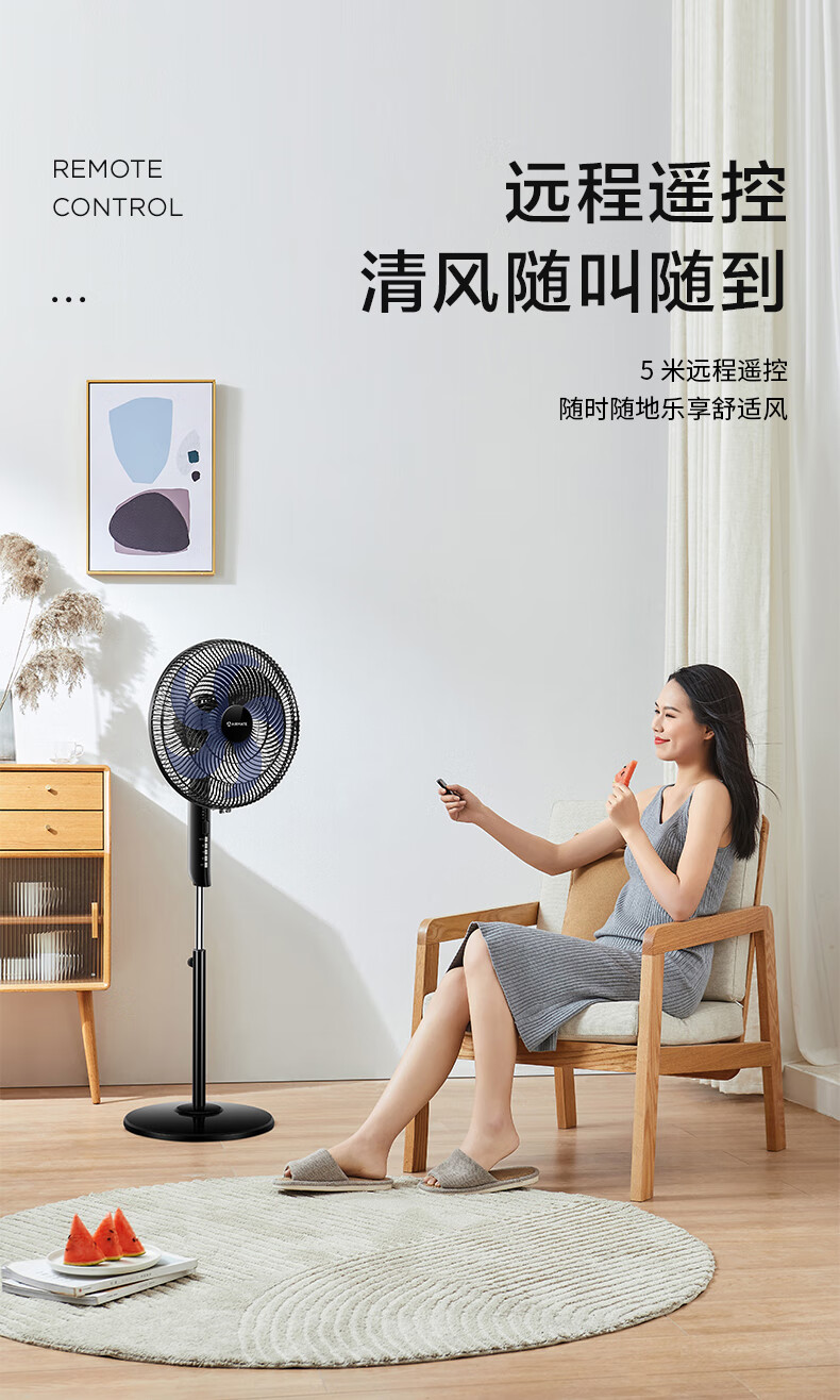 艾美特(AIRMATE)五叶 家用智能遥控 电风扇 大风量摇头立式 落地扇 节能轻音 定时电扇 宿舍降温风扇 FSW52R