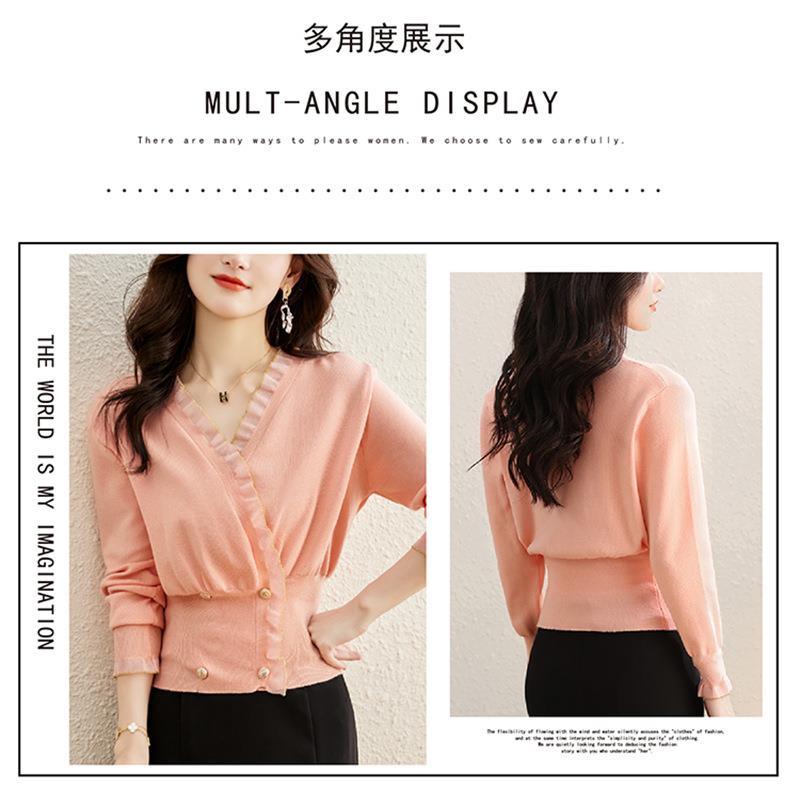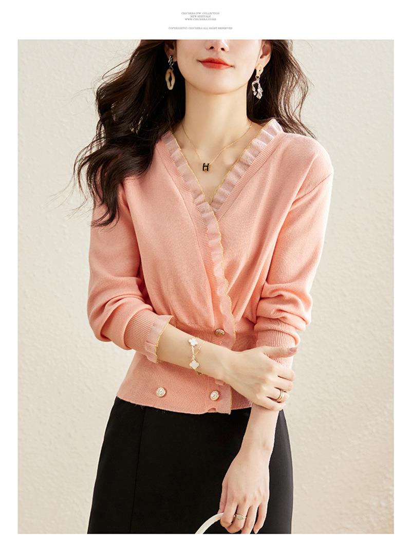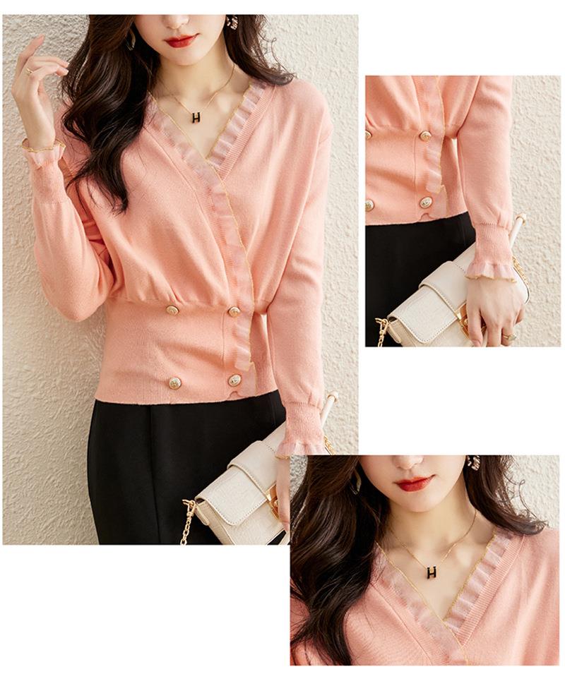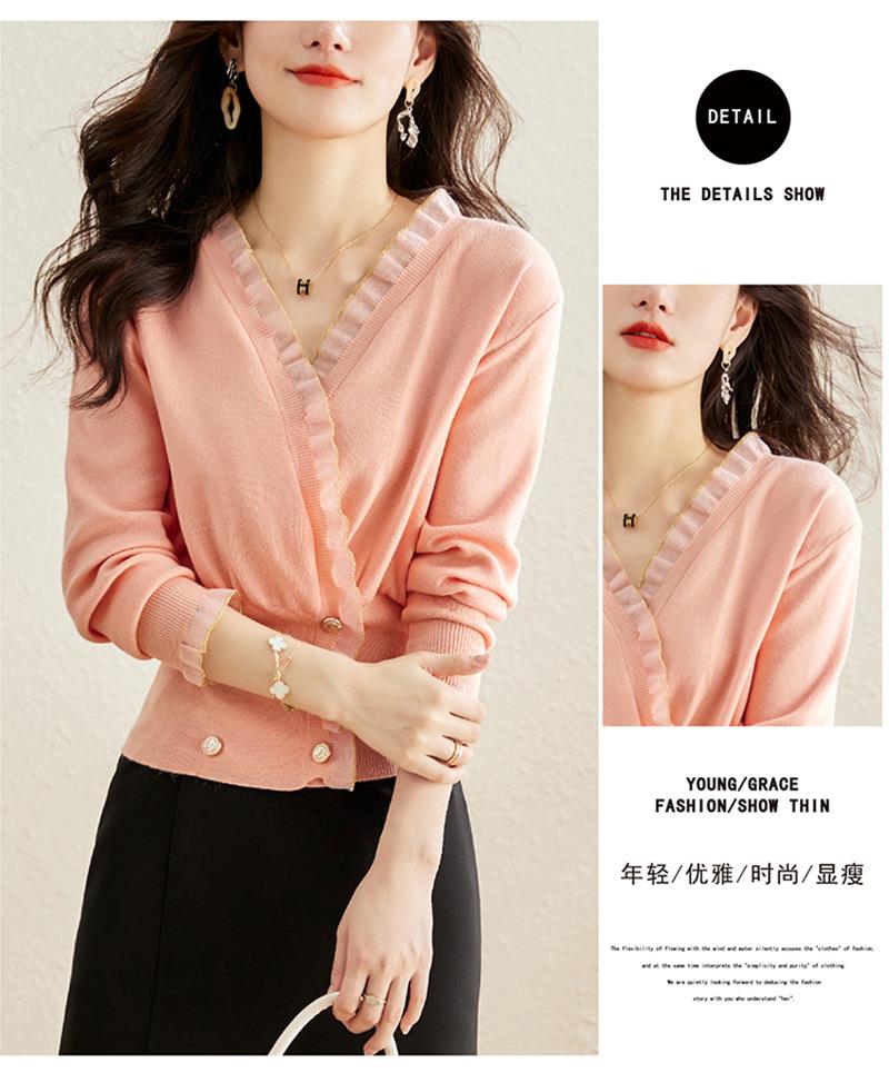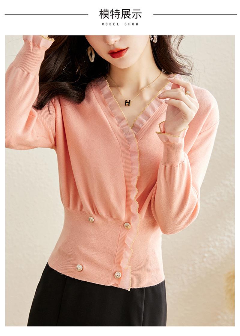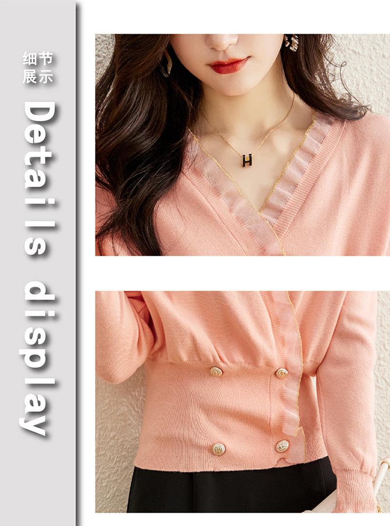 针织衫女长袖秋装新款粉色套头毛衣洋气春秋款宽松v领上衣