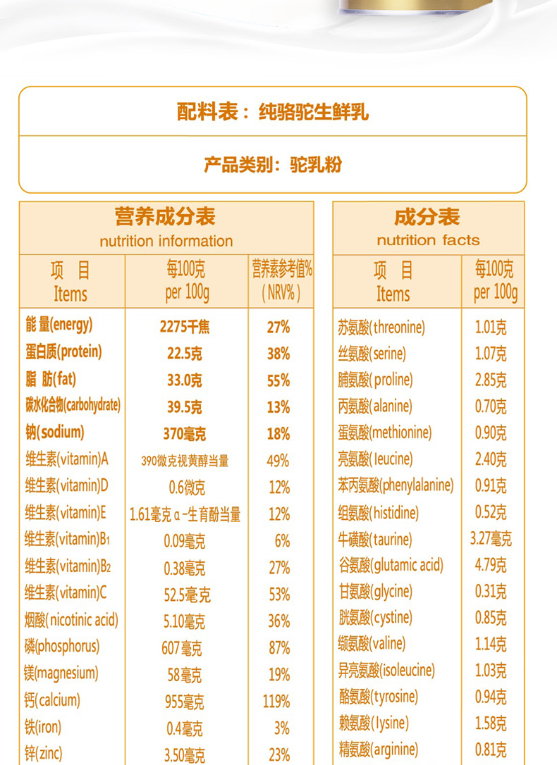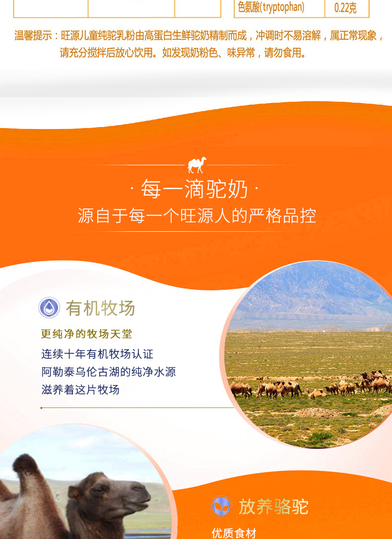 新疆旺源有机儿童纯驼乳粉 纯骆驼奶粉