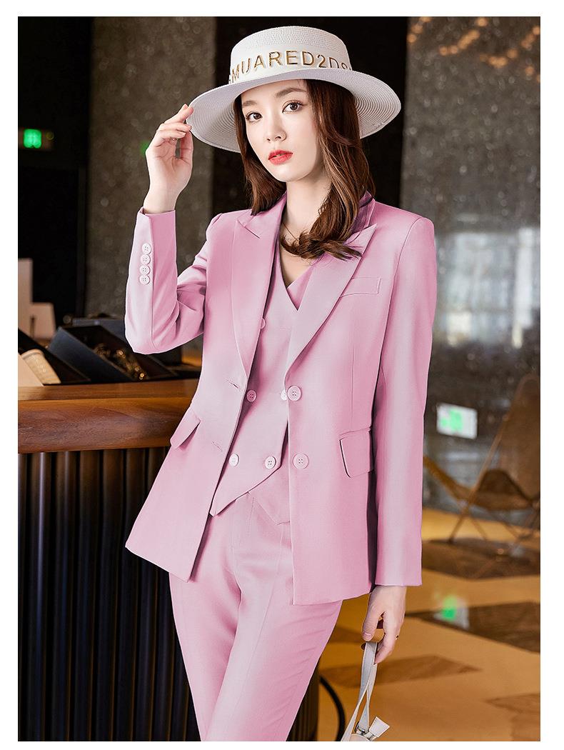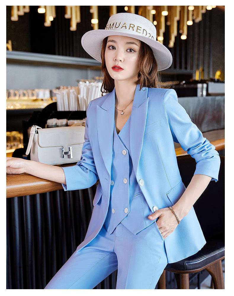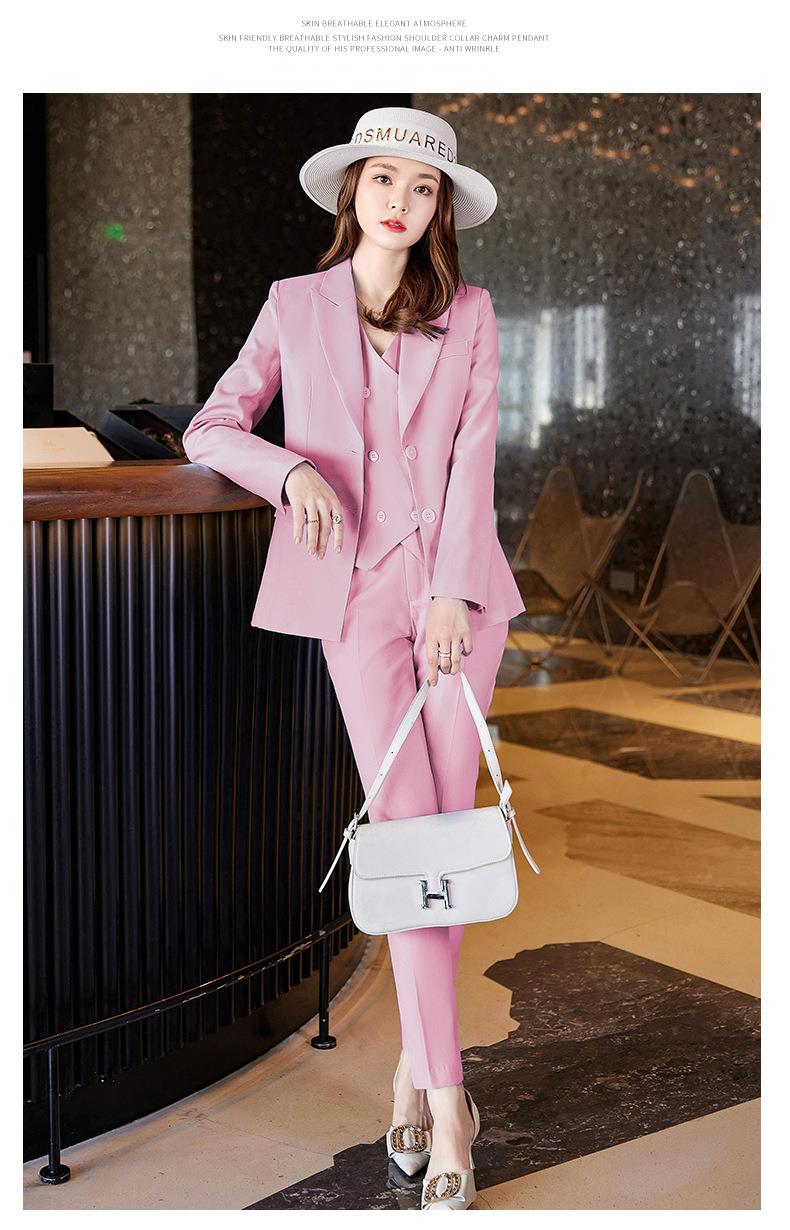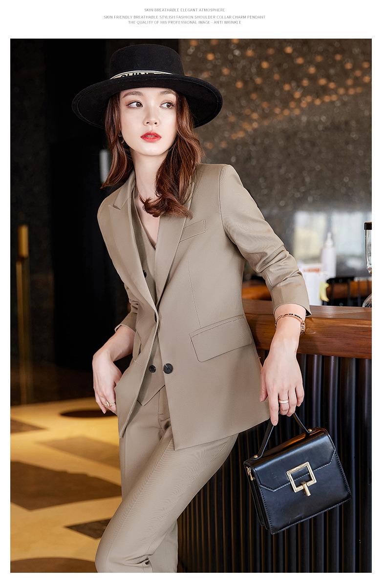 娜璐多 高级感OL通勤气质亮面炸街三件套女2023春秋新款韩版时尚西装套装