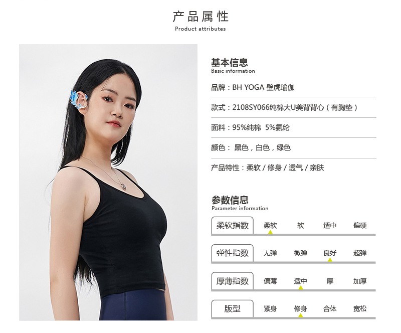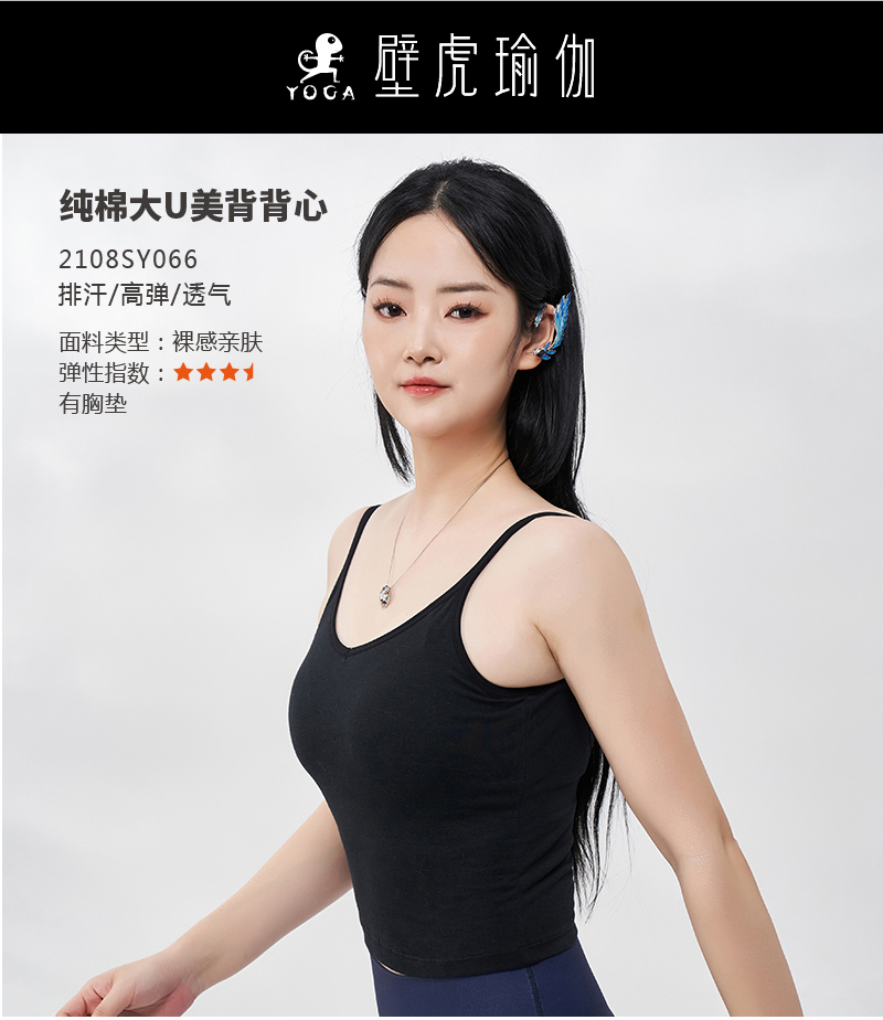 壁虎瑜伽【2108SY066】纯棉大U美背背心(一体式胸垫)【七十二小时发货】
