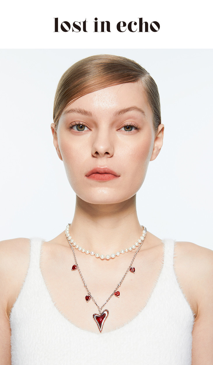 lost in echo 原创设计师品牌 爱心吊饰多种戴法珍珠项链 情人节系列