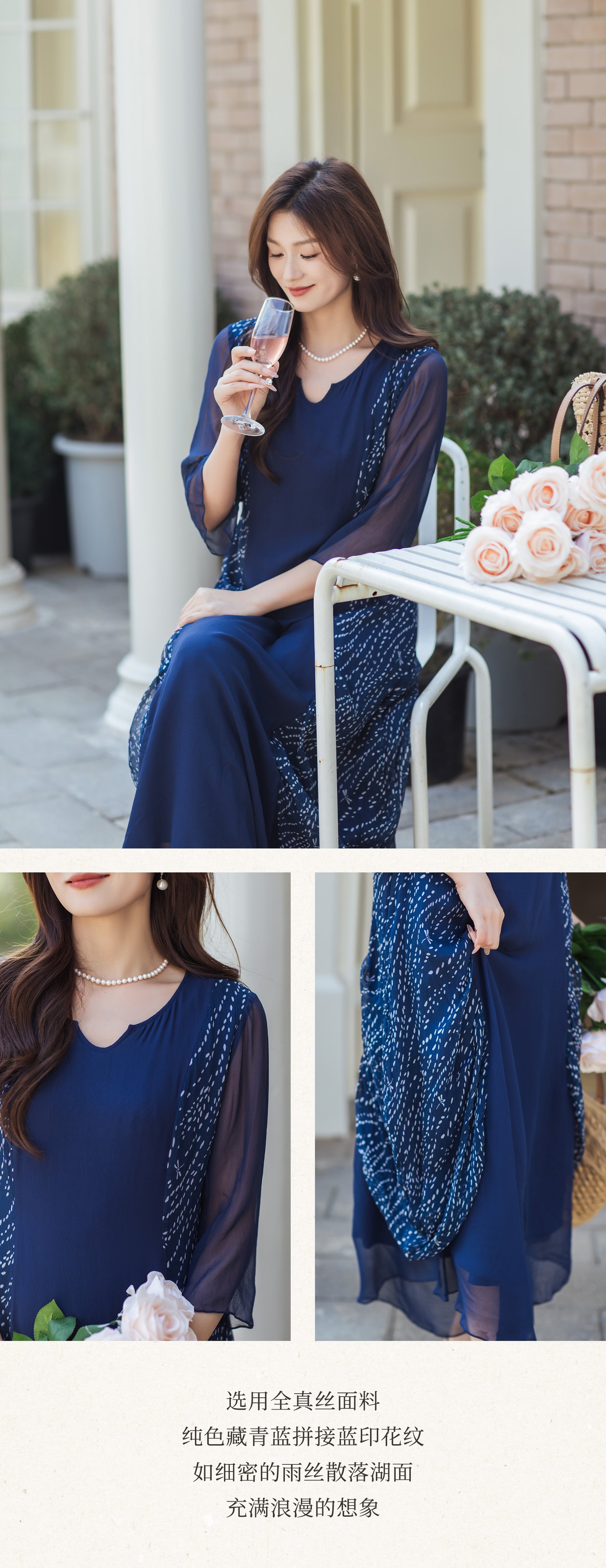 【林栖设计小店】【林栖推荐】2026春复古印花真丝长袖连衣裙N1961377