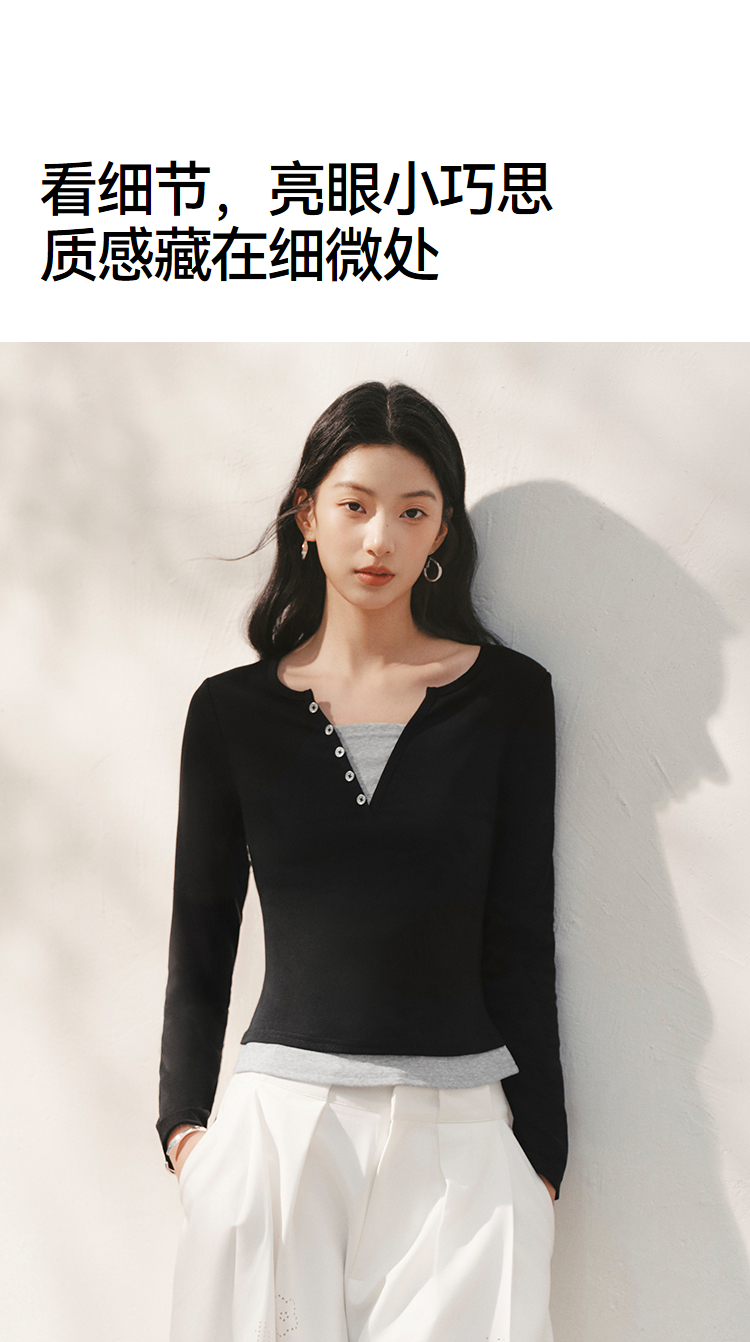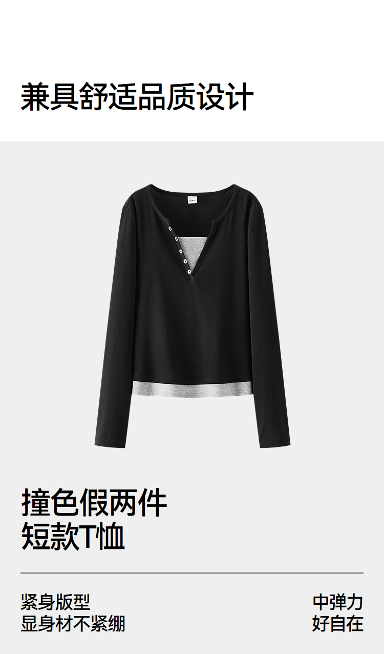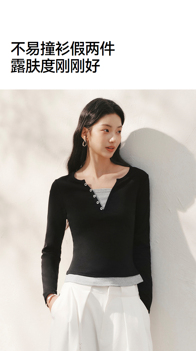 森马长袖T恤女春季短款紧身假两件2026新款设计感显瘦气质套头衫