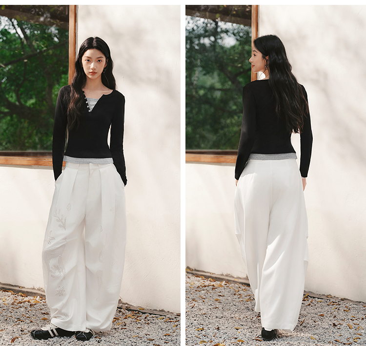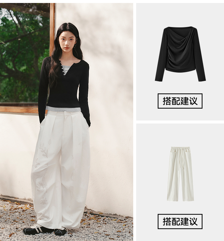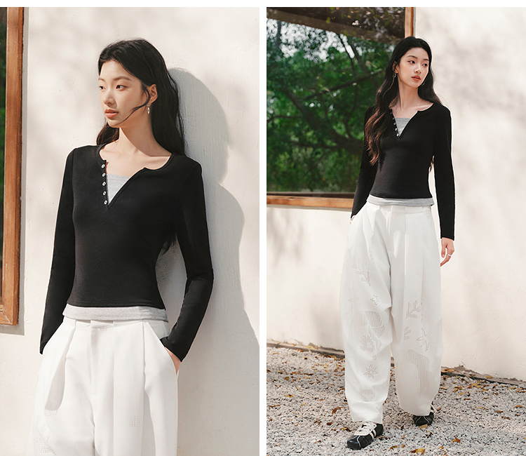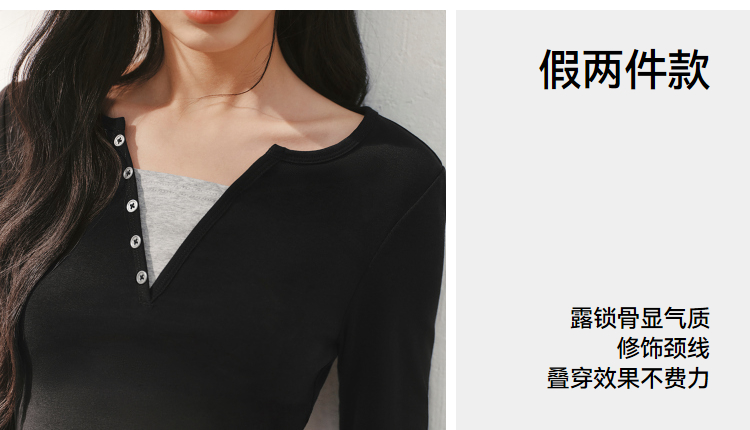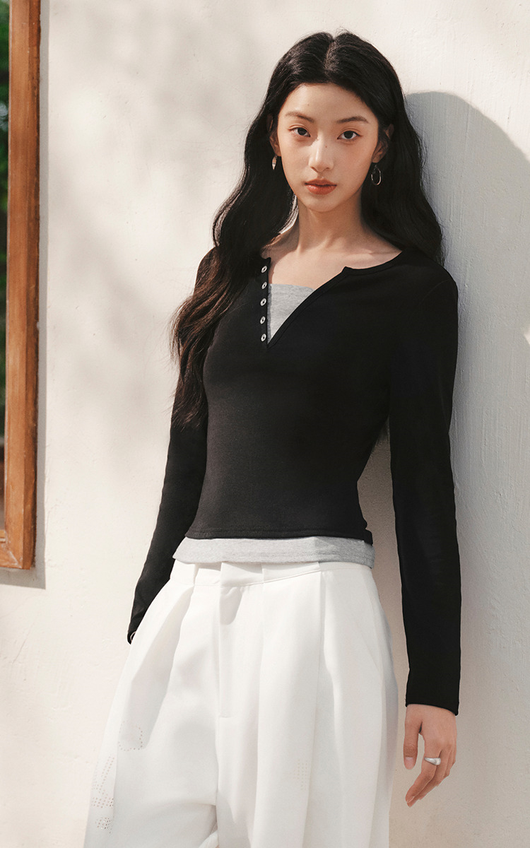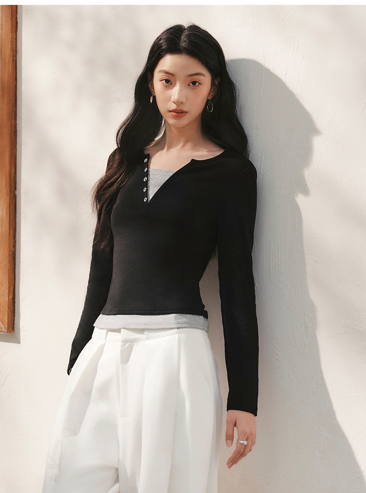 森马长袖T恤女春季短款紧身假两件2026新款设计感显瘦气质套头衫