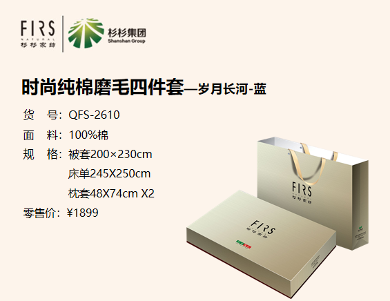 杉杉 时尚纯棉磨毛四件套—岁月长河-蓝QFS-2610