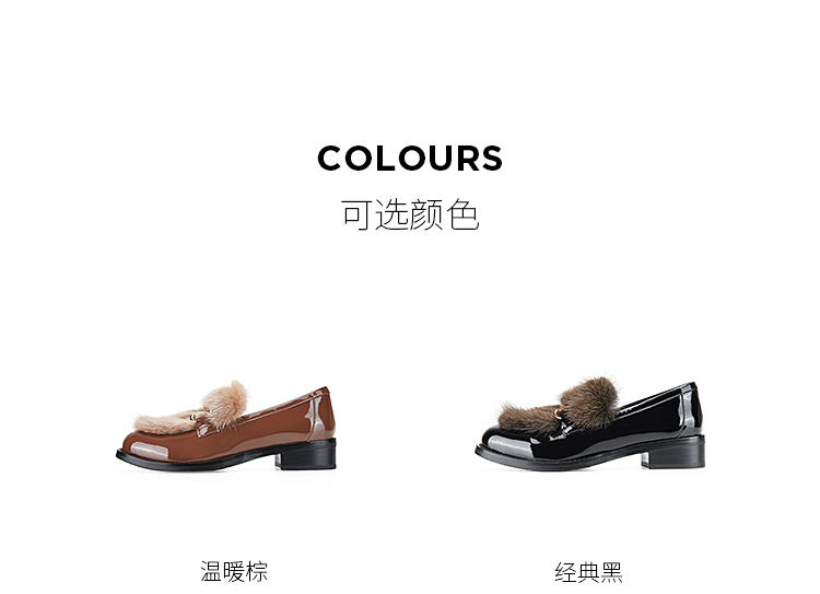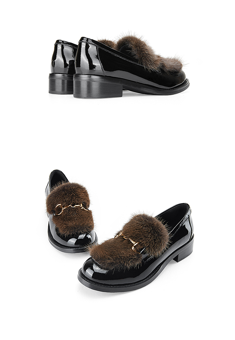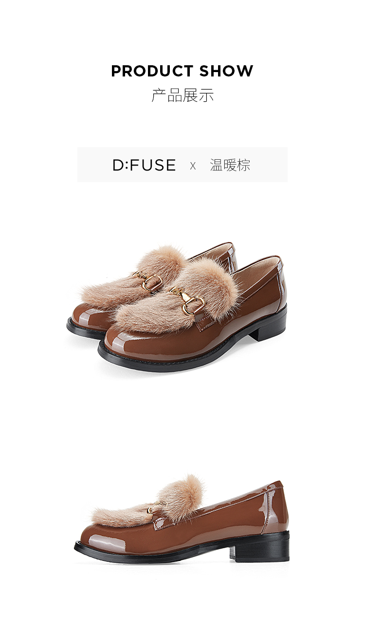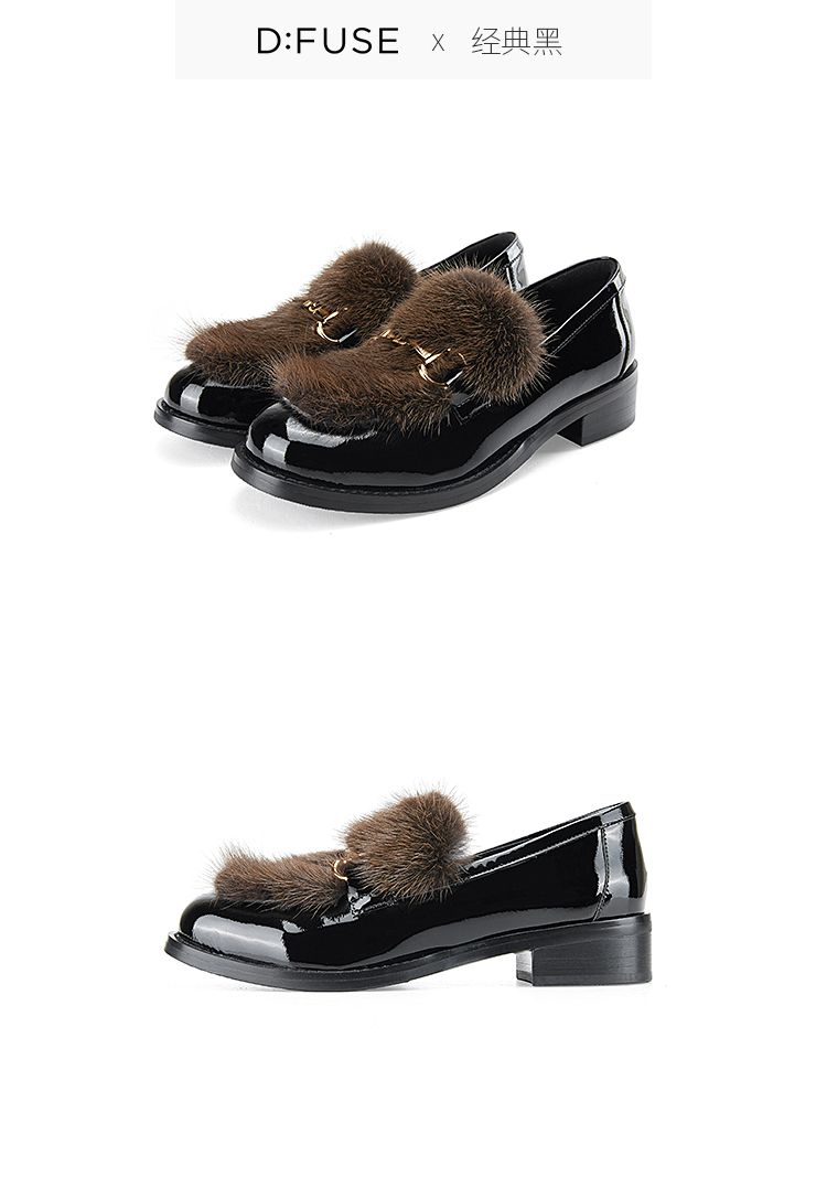 Dfuse迪芙斯秋款漆皮拼接水貂毛毛休闲乐福鞋DF33112118