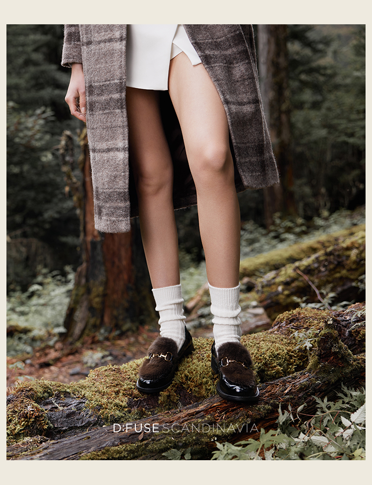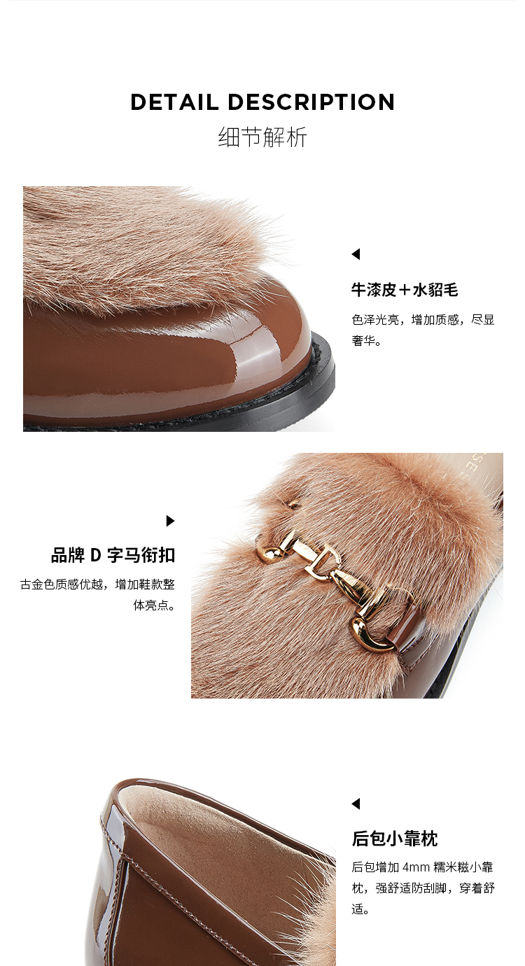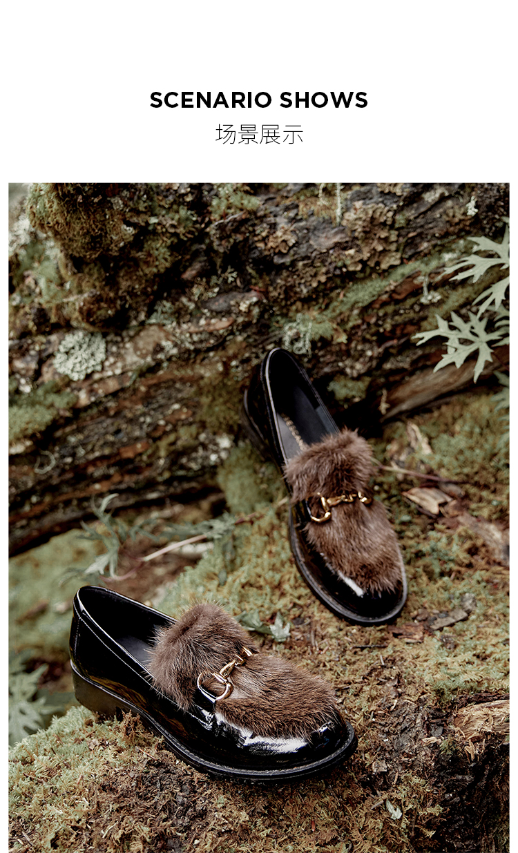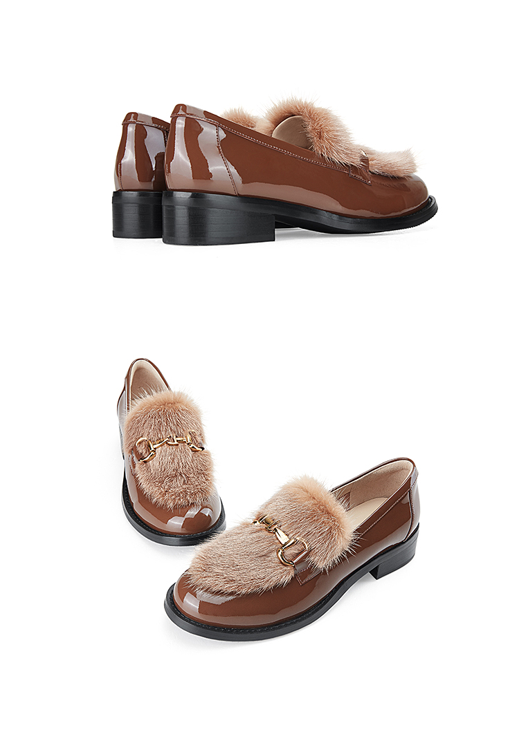 Dfuse迪芙斯秋款漆皮拼接水貂毛毛休闲乐福鞋DF33112118