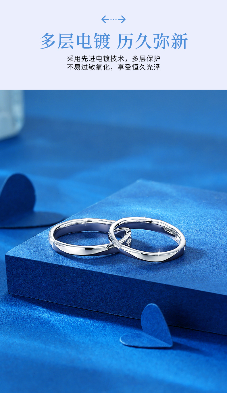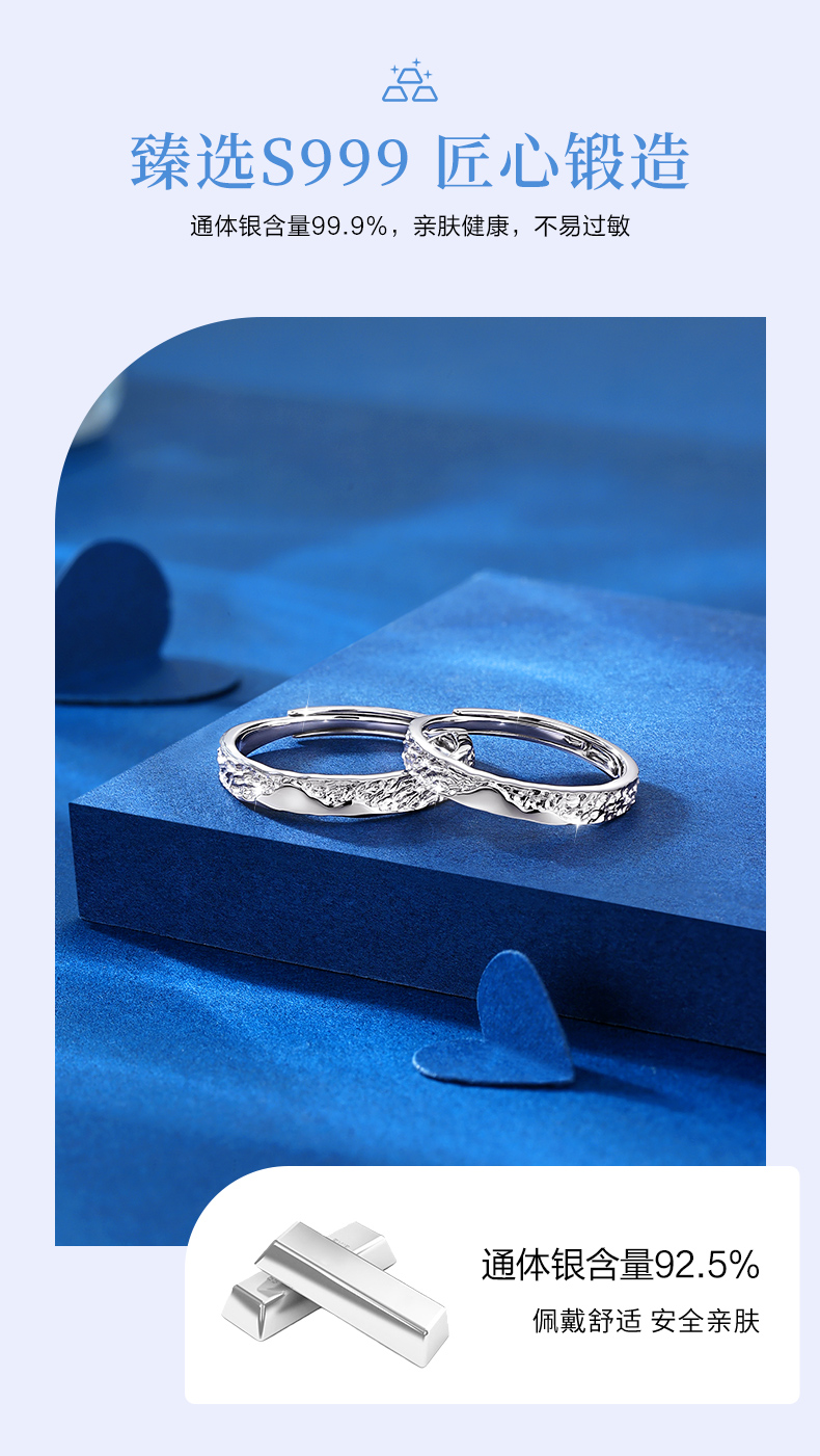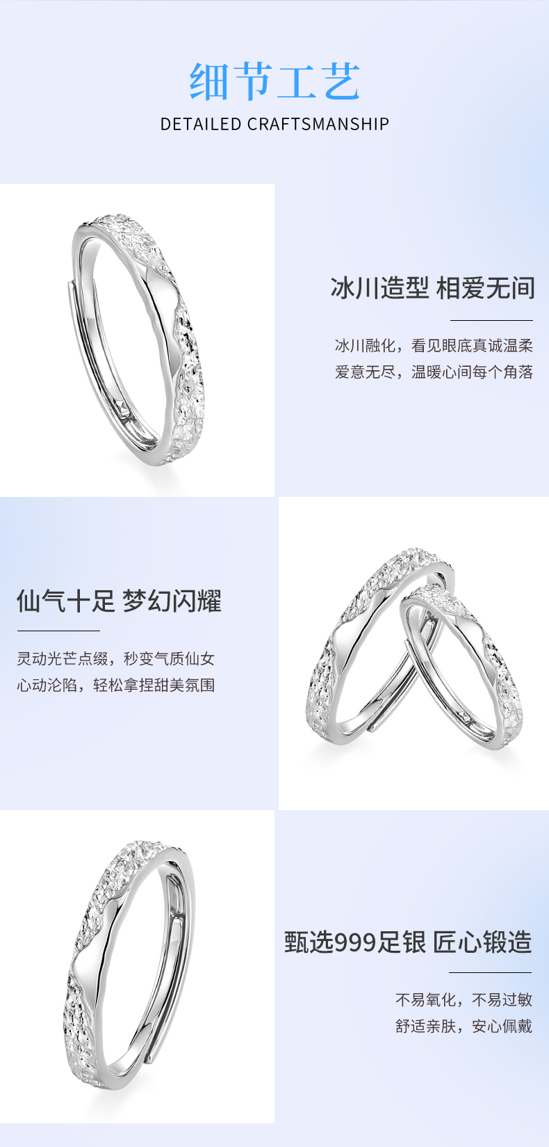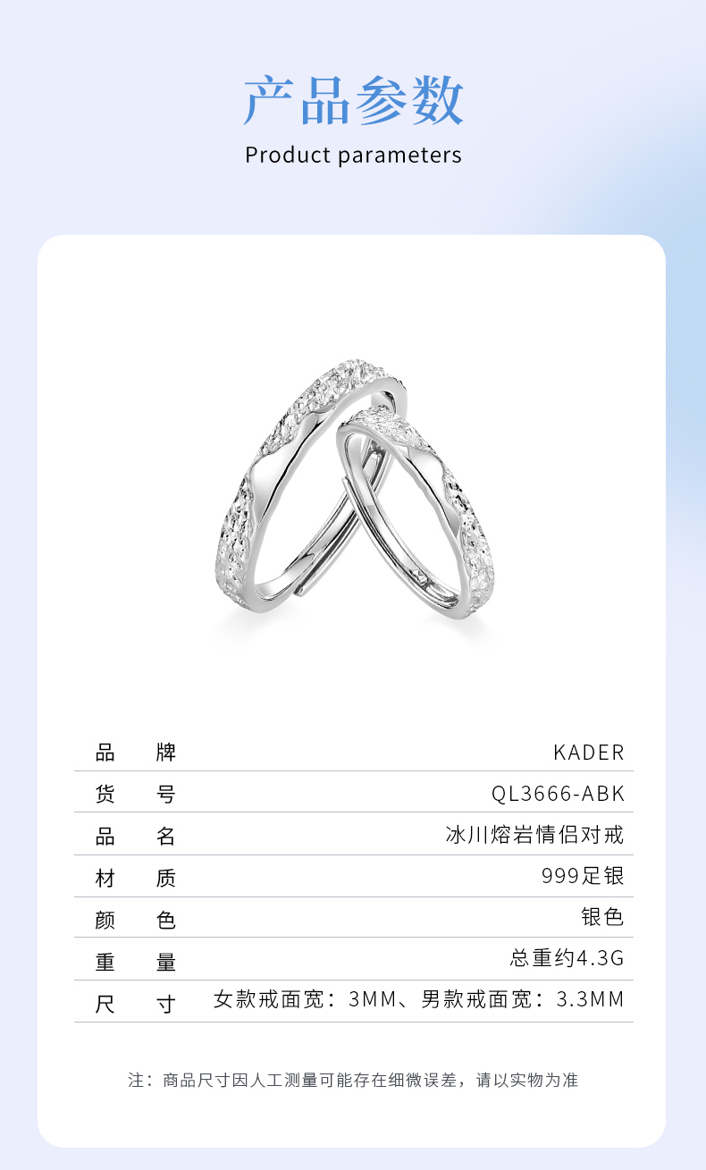 【999足银】卡蒂罗/KADER 冰川熔岩情侣对戒 钟久久 小众素圈开口可调节纯银对戒 小众设计高级感