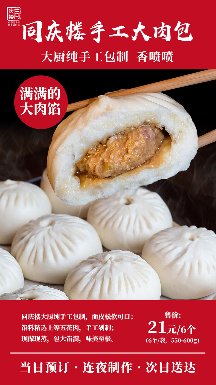 名厨面点|同庆楼大肉包(80g*6个/袋 )