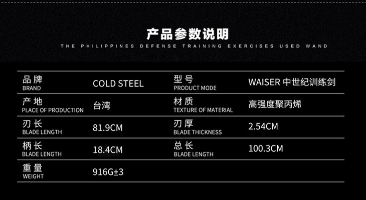 美国冷钢Cold steel 92BKS 塑钢单手剑训练塑钢剑