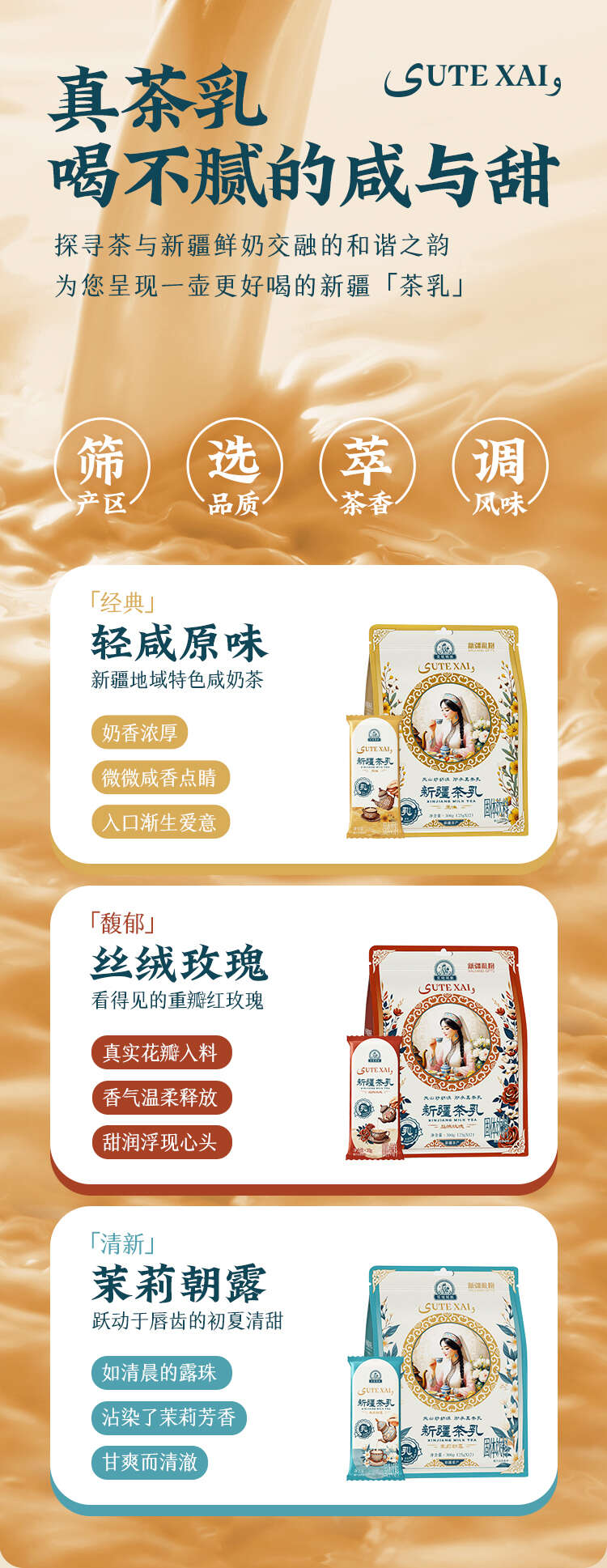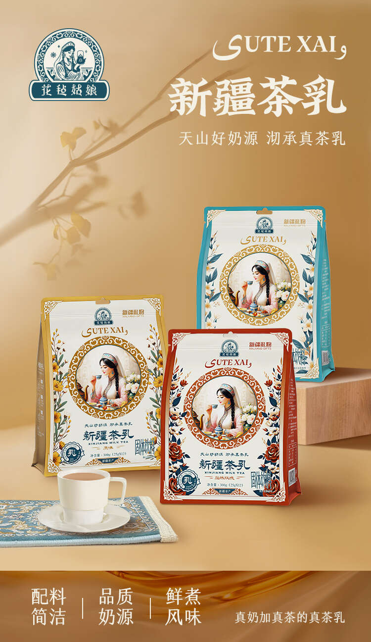 【产品名称】花毡姑娘新疆茶乳300g(原味、丝绒玫瑰、茉莉朝露)