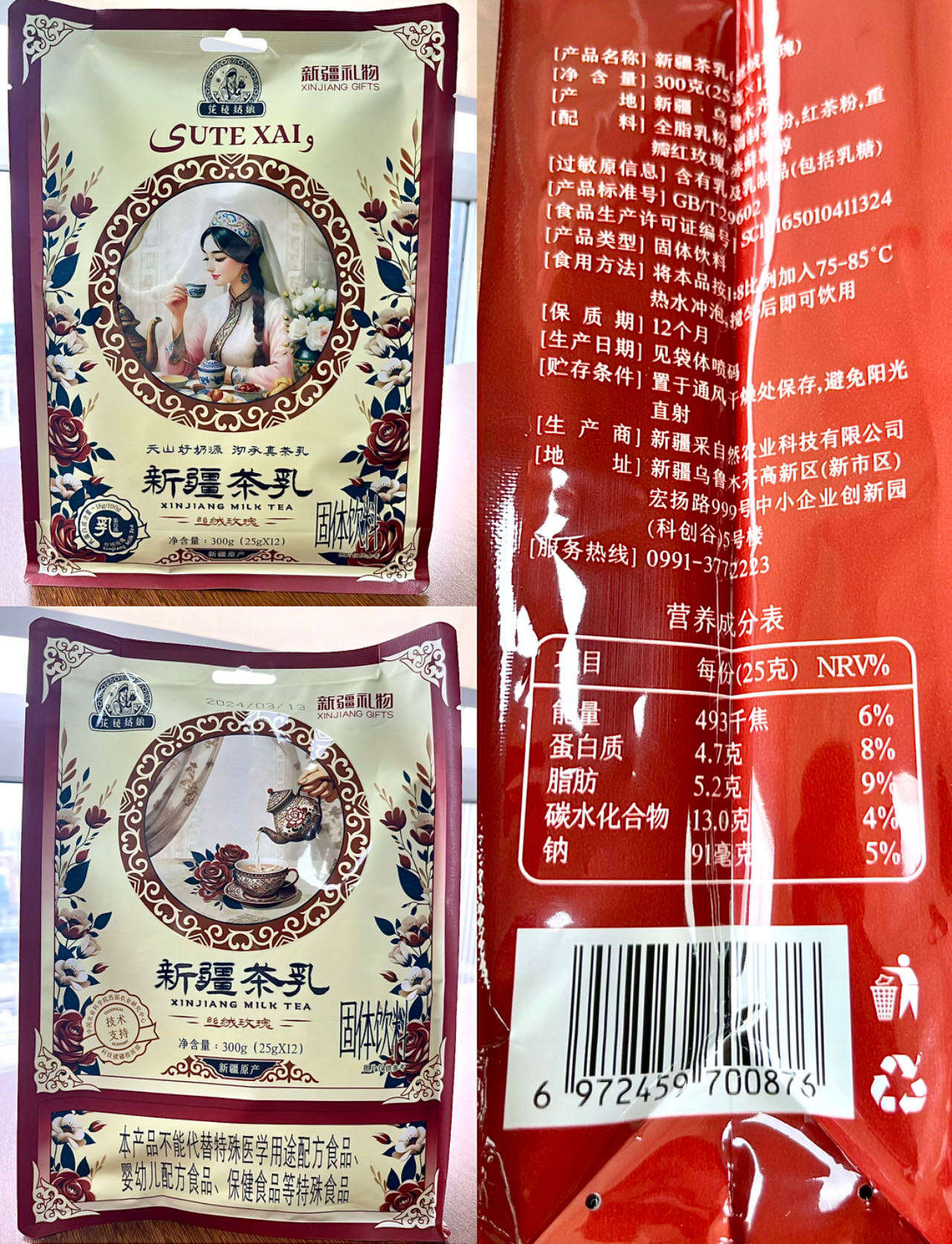 【配料】新疆茶乳(原味):全脂乳粉、调制乳粉、红茶粉、食用盐