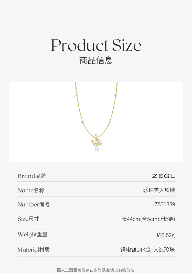 ZEGL设计师舞者系列人造珍珠项链女轻奢小众高级设计感锁骨链配饰