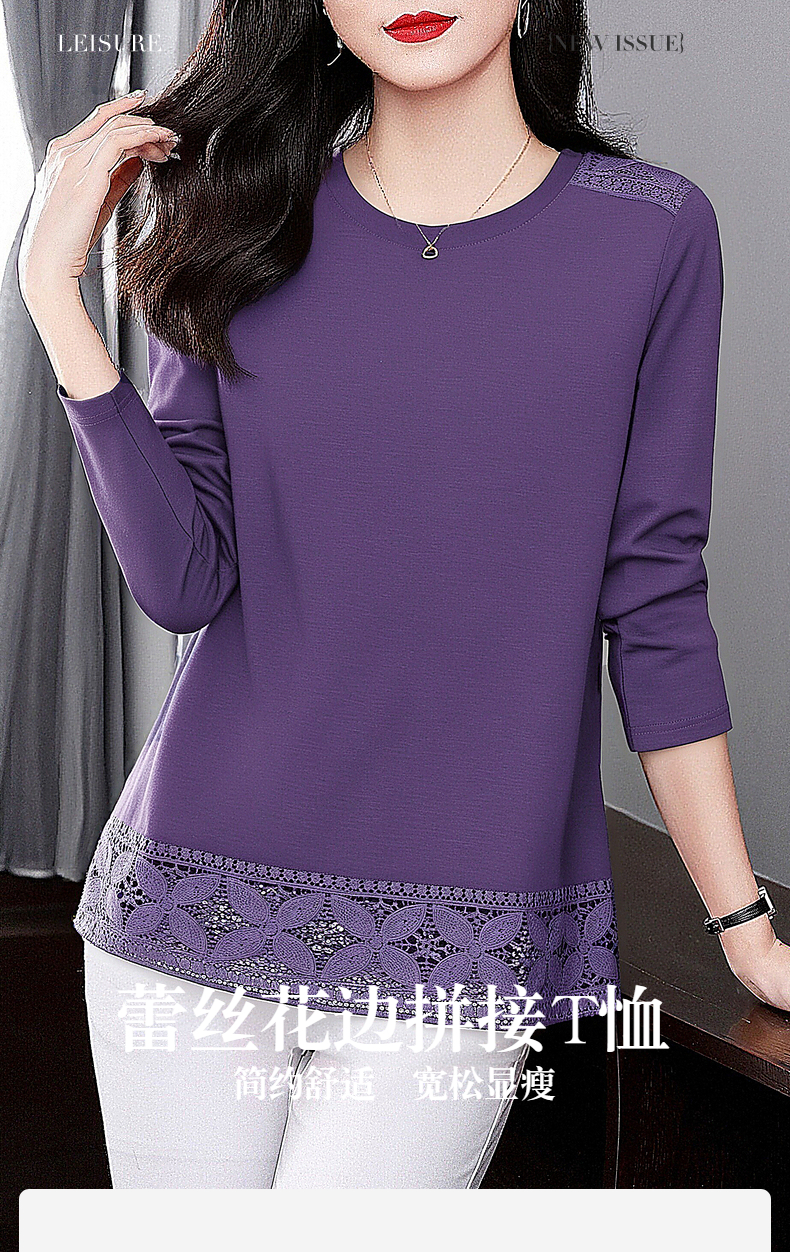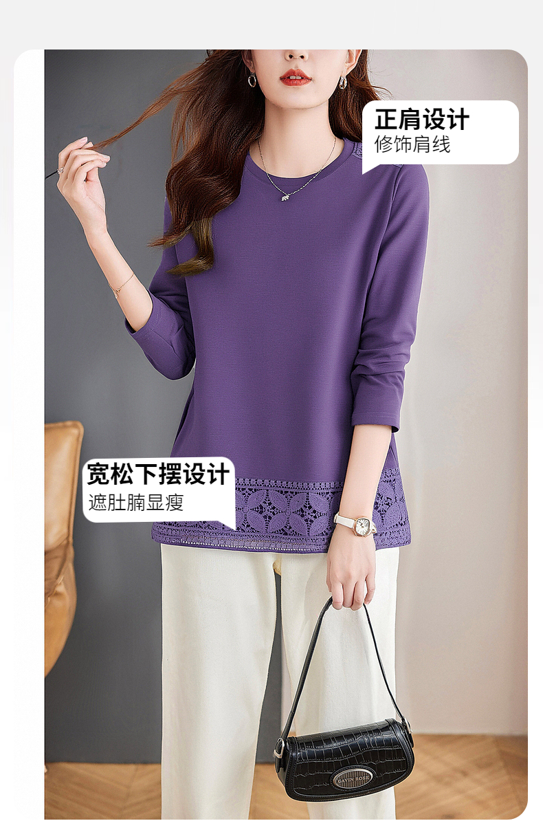 2026秋装新款大码胖MM女装宽松洋气长袖T恤拼接蕾丝高端时尚上衣