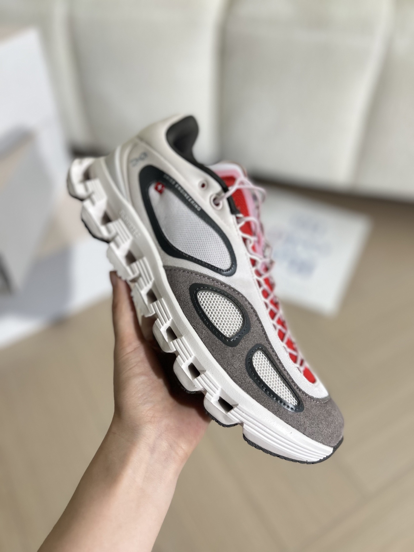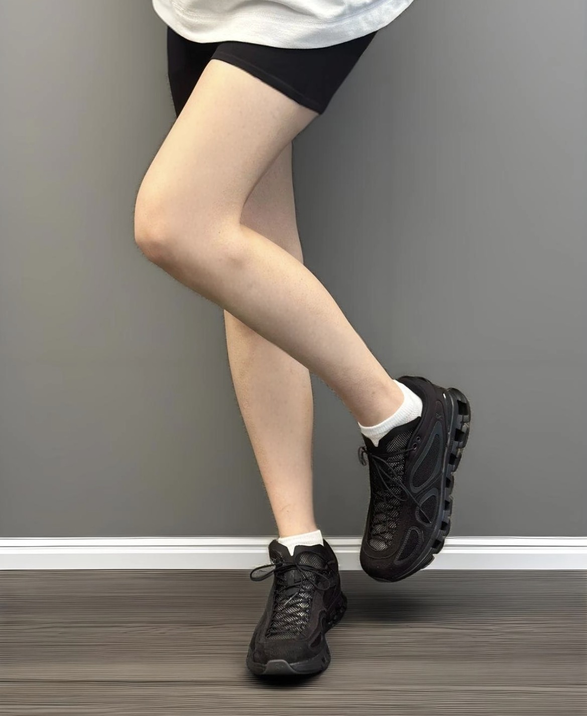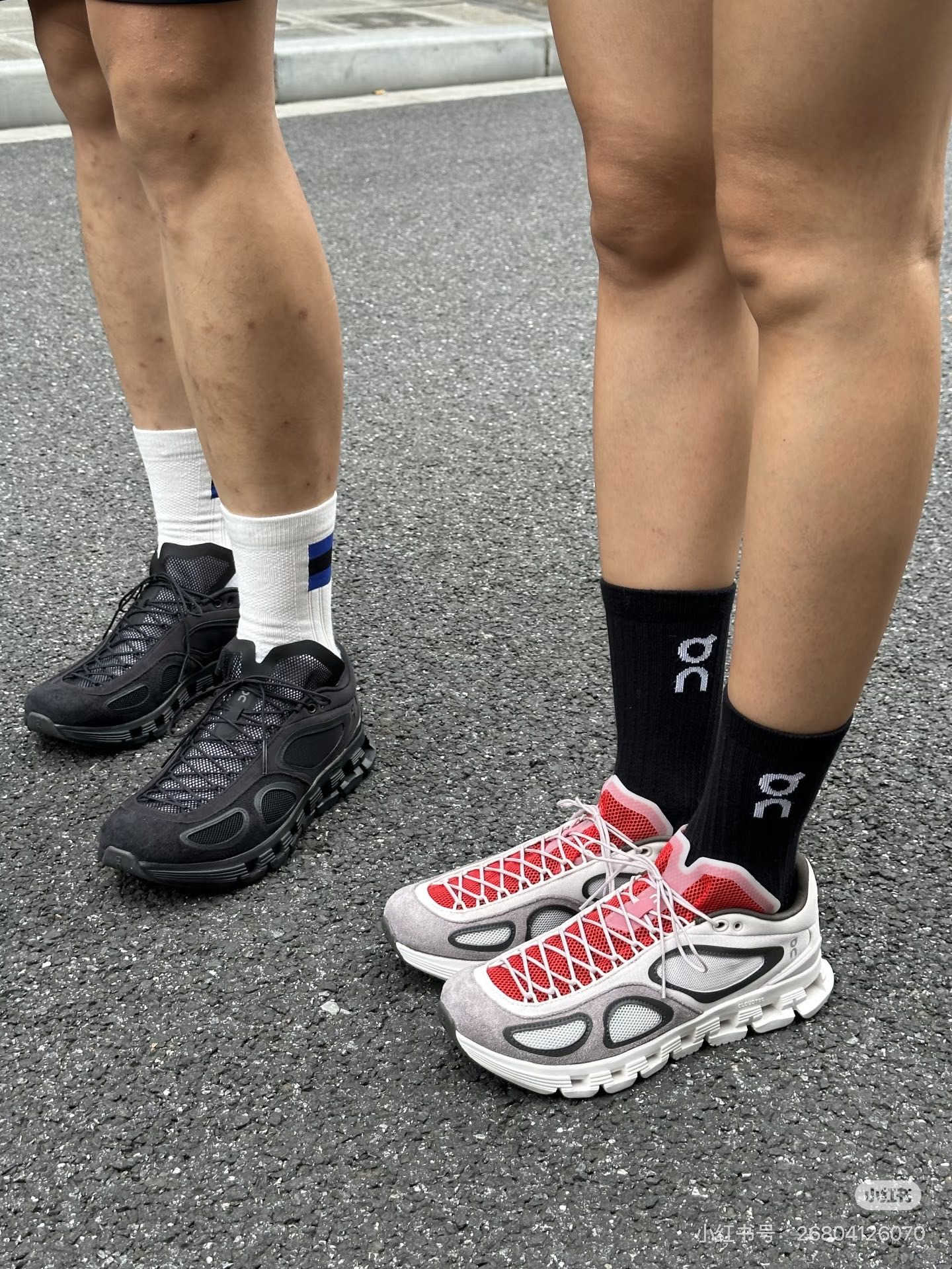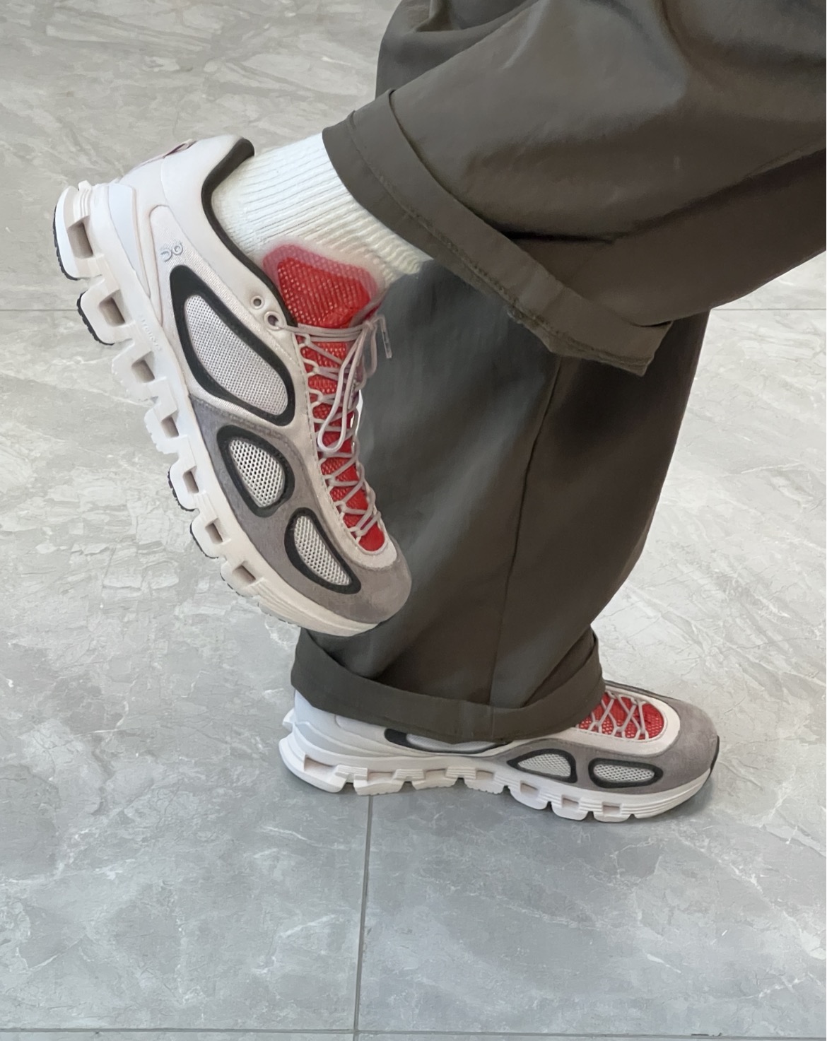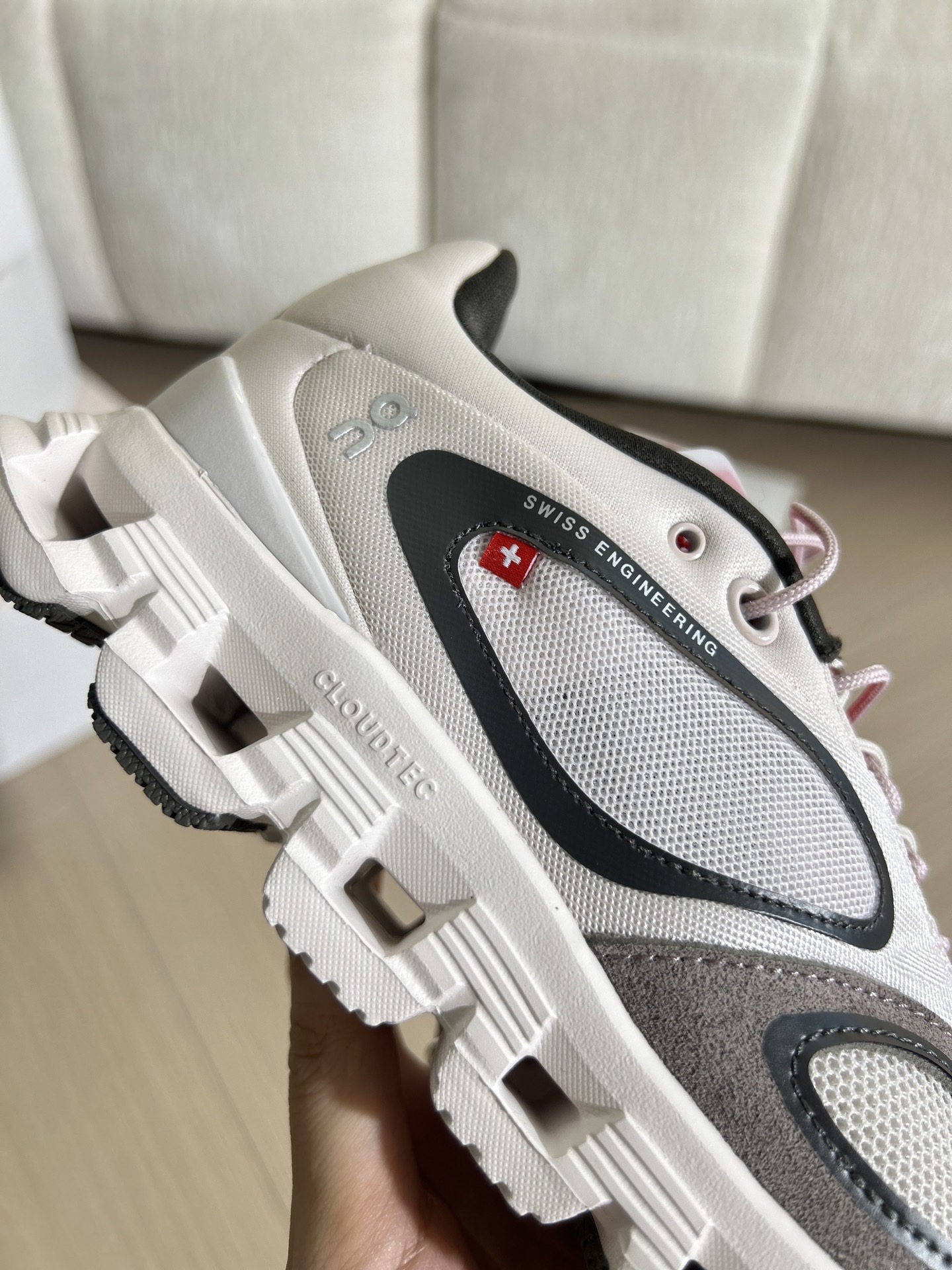 FKA Twigs x On Cloud X4联名跑鞋,中底的脚感偏韧,健身与有氧都可以驾驭,鞋面编织相比于普通款做出了更多的层次,鞋舌则是很轻薄的网面,透气与舒适度都很适合夏天了。鞋带系统是做的很细,这更多地增加了细节的丰富度,也让这双综训鞋具备更高的时尚感。