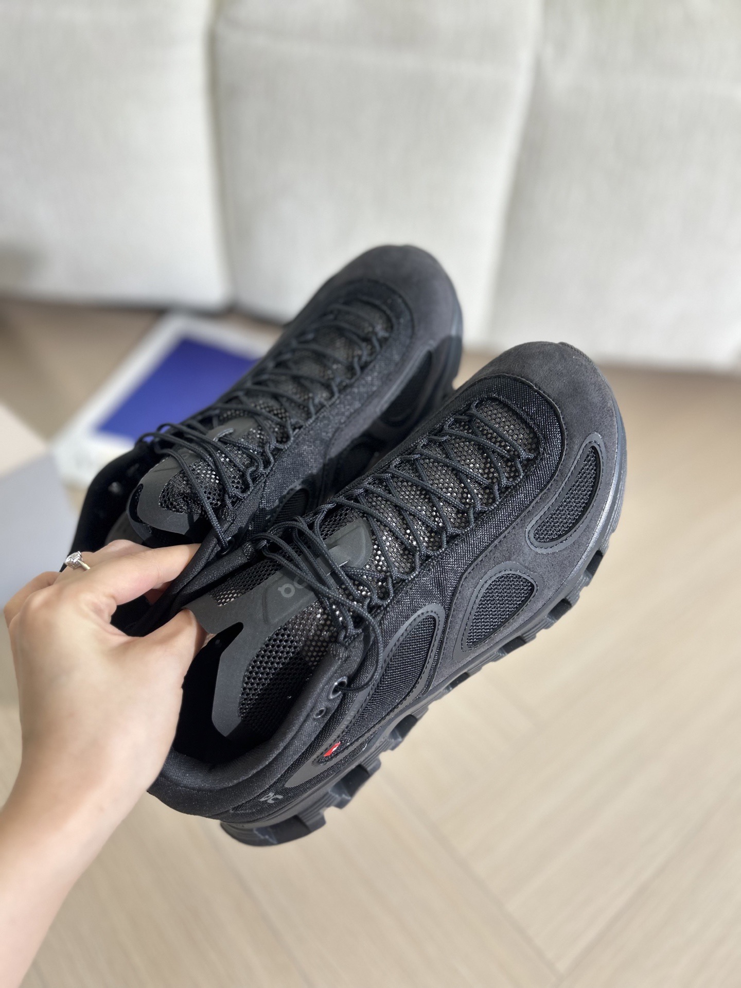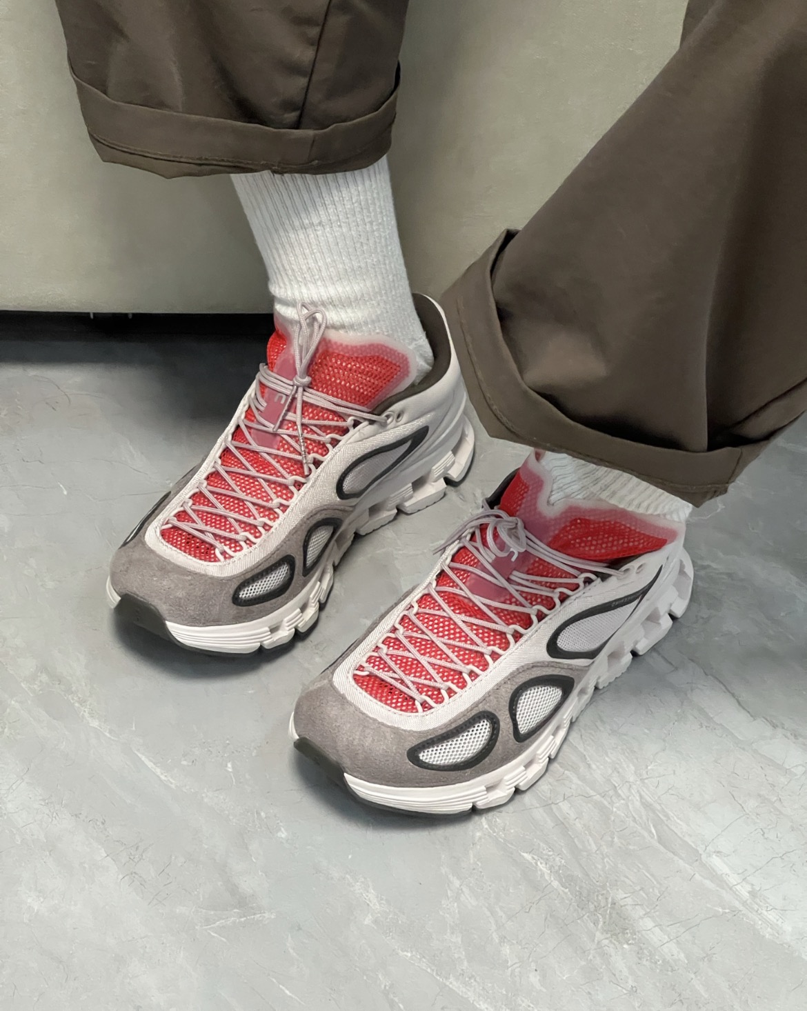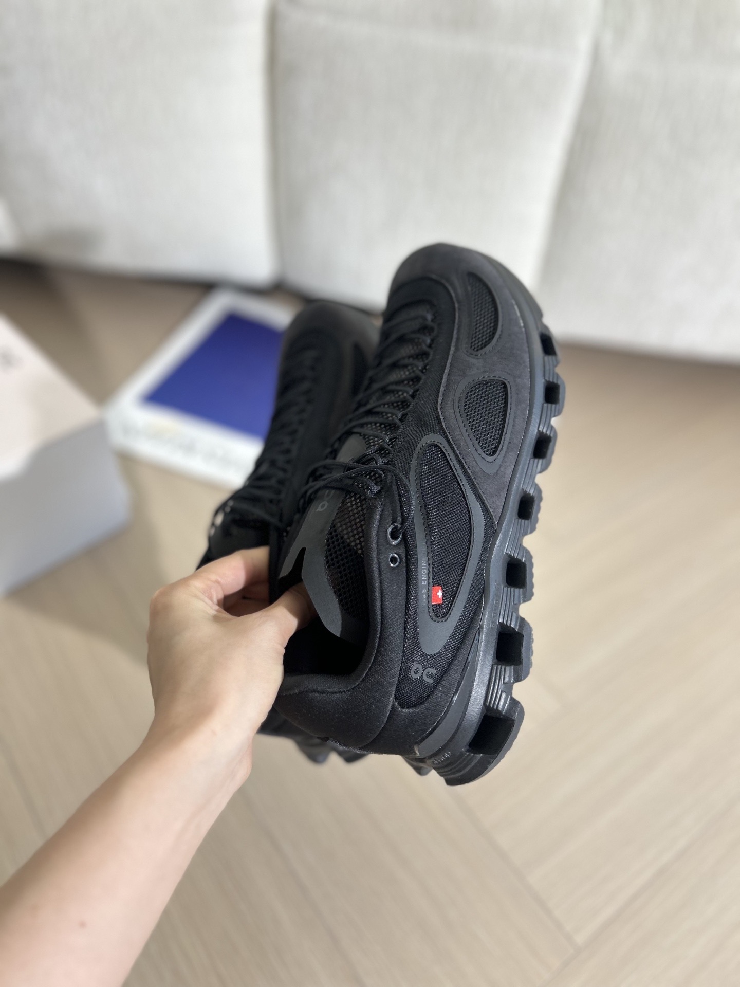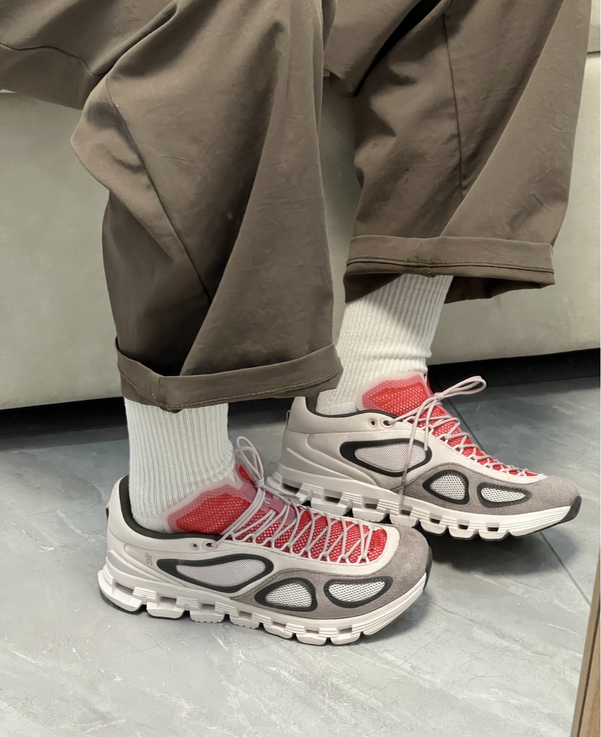 FKA Twigs x On Cloud X4联名跑鞋,中底的脚感偏韧,健身与有氧都可以驾驭,鞋面编织相比于普通款做出了更多的层次,鞋舌则是很轻薄的网面,透气与舒适度都很适合夏天了。鞋带系统是做的很细,这更多地增加了细节的丰富度,也让这双综训鞋具备更高的时尚感。
