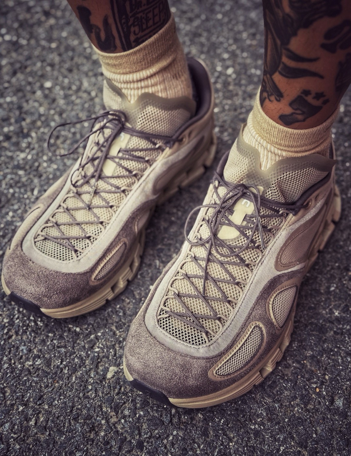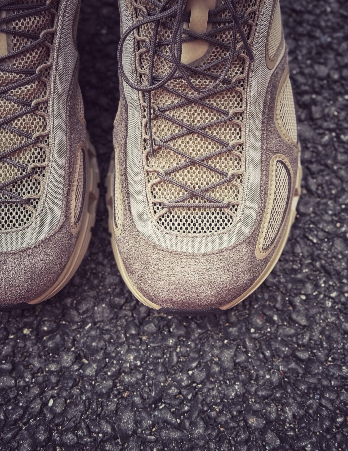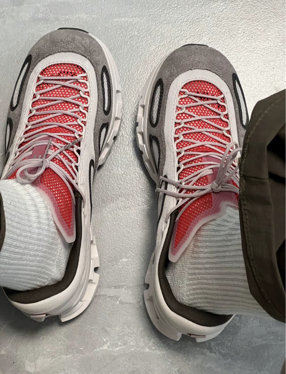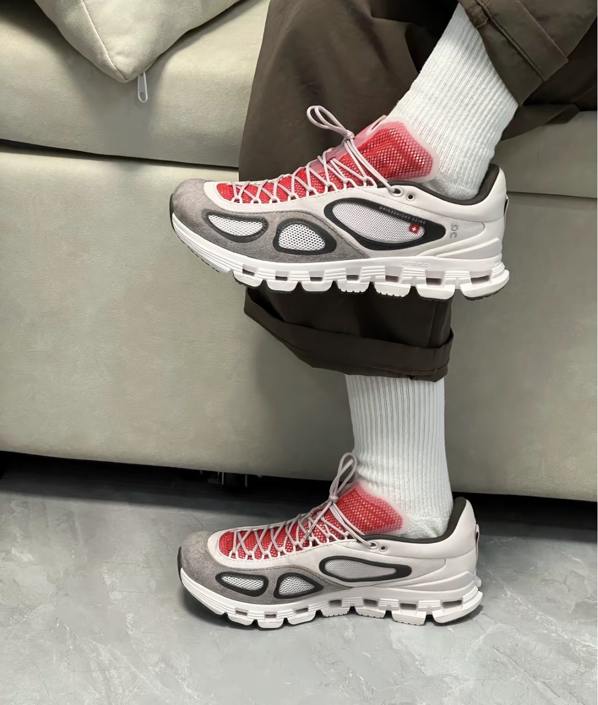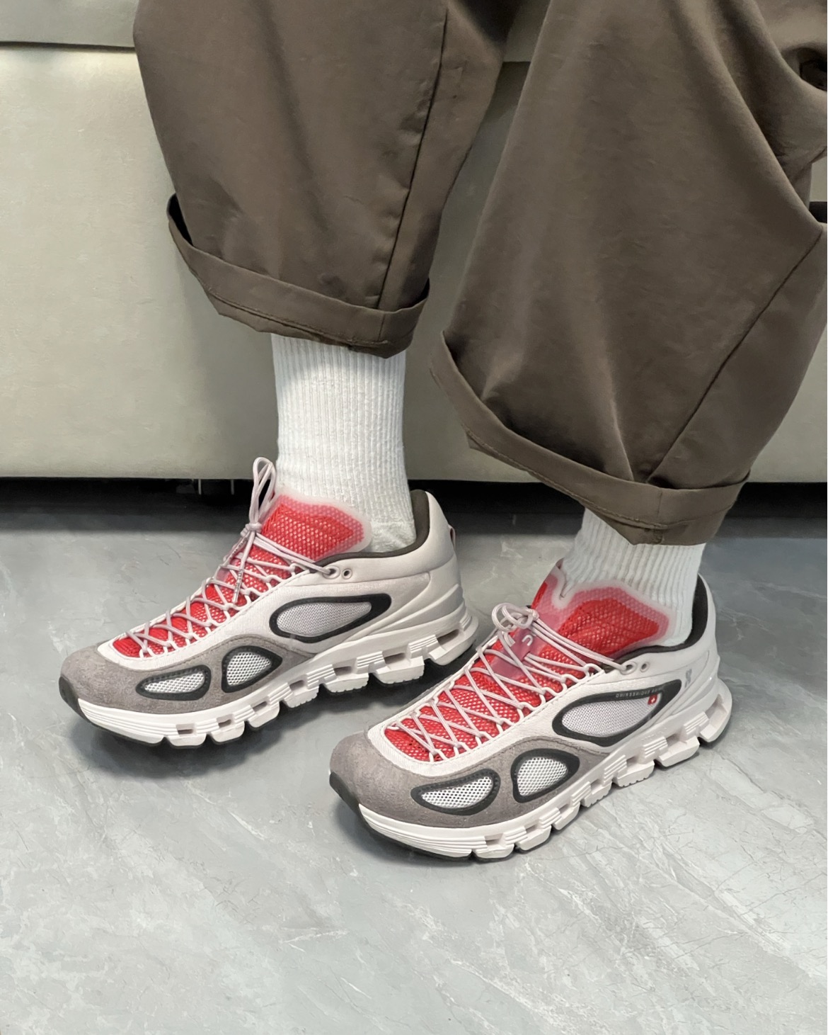 FKA Twigs x On Cloud X4联名跑鞋,中底的脚感偏韧,健身与有氧都可以驾驭,鞋面编织相比于普通款做出了更多的层次,鞋舌则是很轻薄的网面,透气与舒适度都很适合夏天了。鞋带系统是做的很细,这更多地增加了细节的丰富度,也让这双综训鞋具备更高的时尚感。