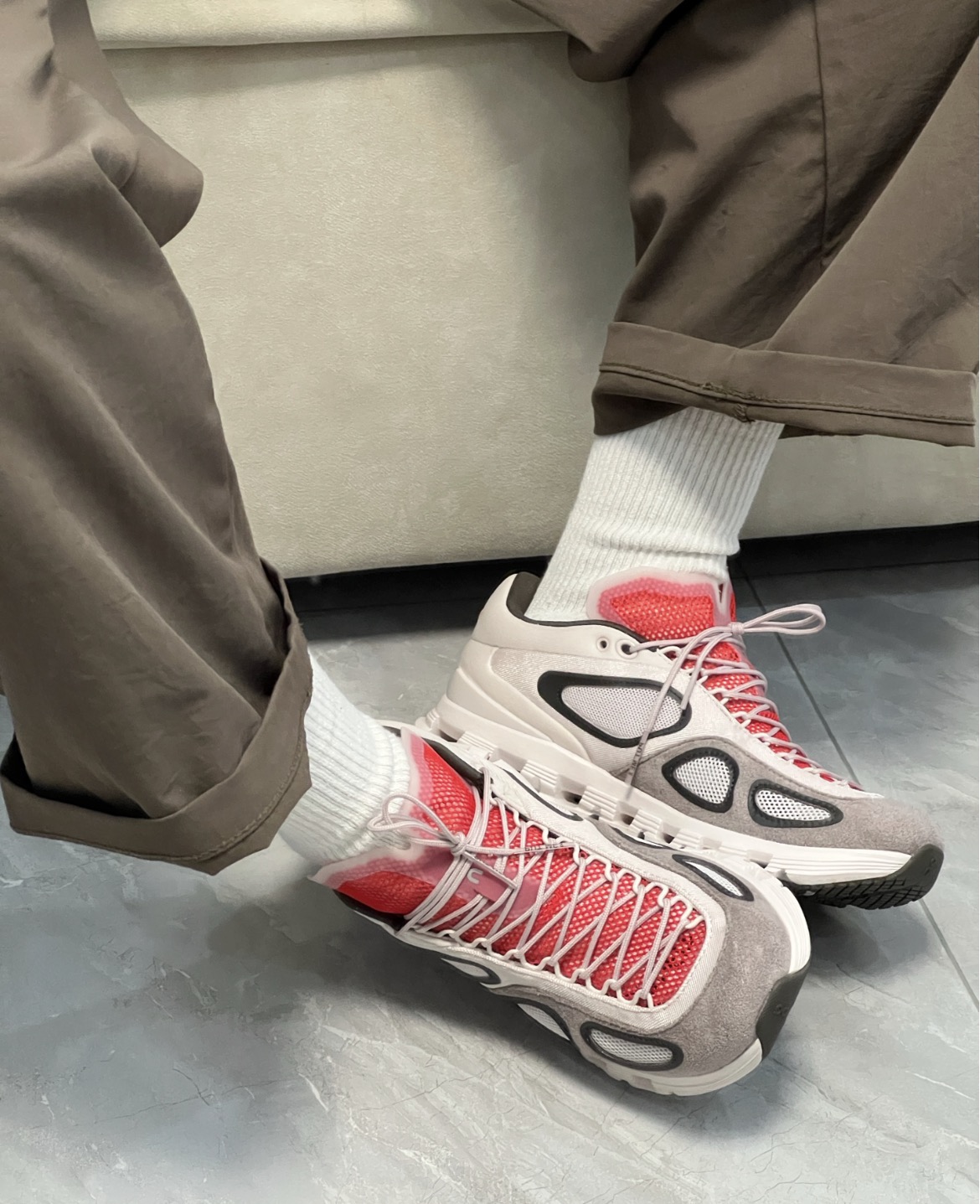 分层模块化中底!!可以说是隐形增高但不违和!! 中底也是采用的分段式立体拼接设计!! 前掌薄、后掌厚!! 自带4.5cm黄金增高! 完美符合人体工学弧度! 不规则镂空网眼模块更是核心辨识度,既减轻鞋身重量,又强化了户外机能风!!