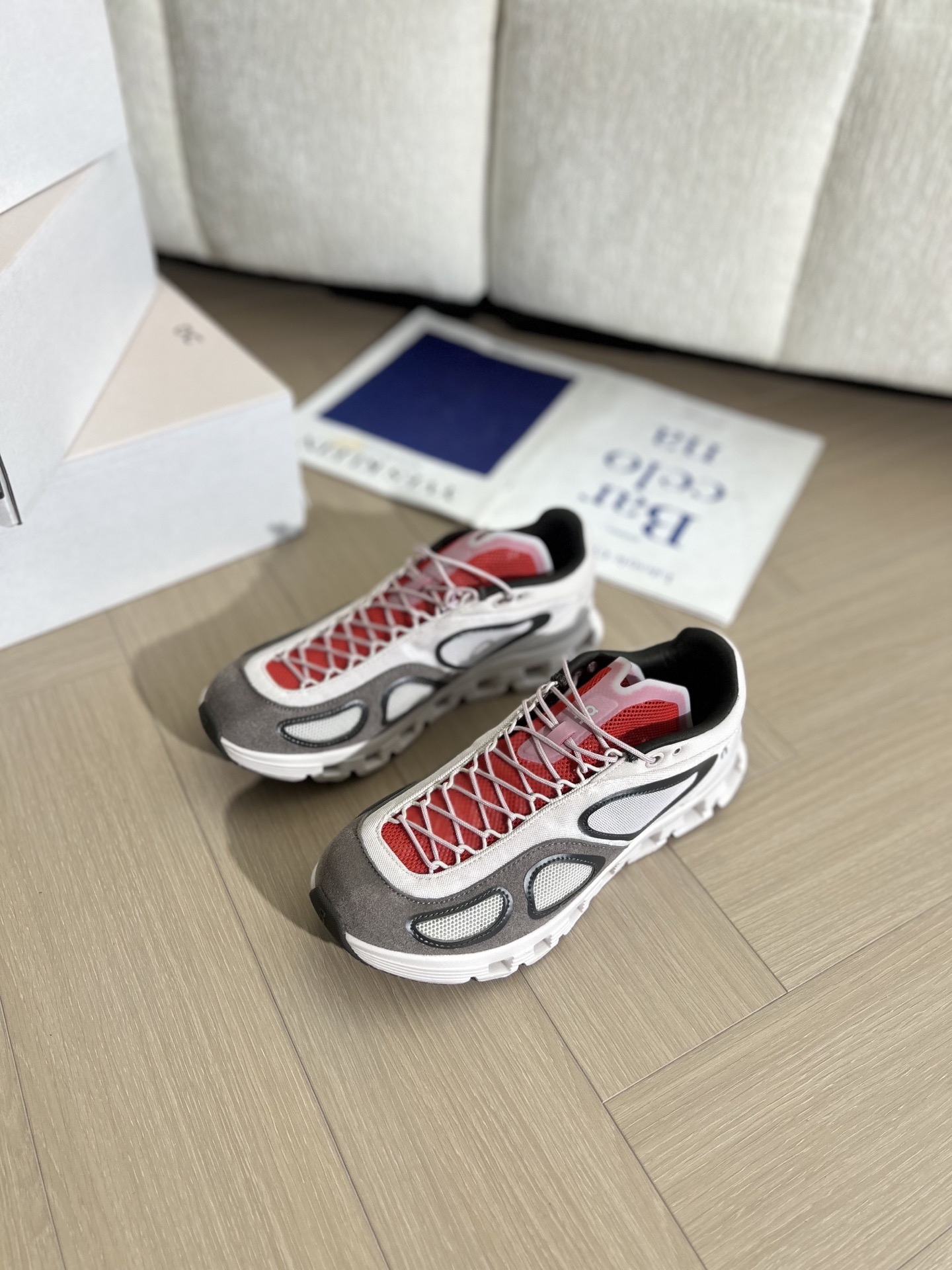 低帮流线型设计,鞋头圆润微翘,鞋身从鞋头到鞋跟自然收窄弧度!主体面料为高密透气网眼布! 网眼细密又均匀,不用担心勾丝! 导汗非常棒!鞋头、鞋跟及侧身拼接反绒皮!!