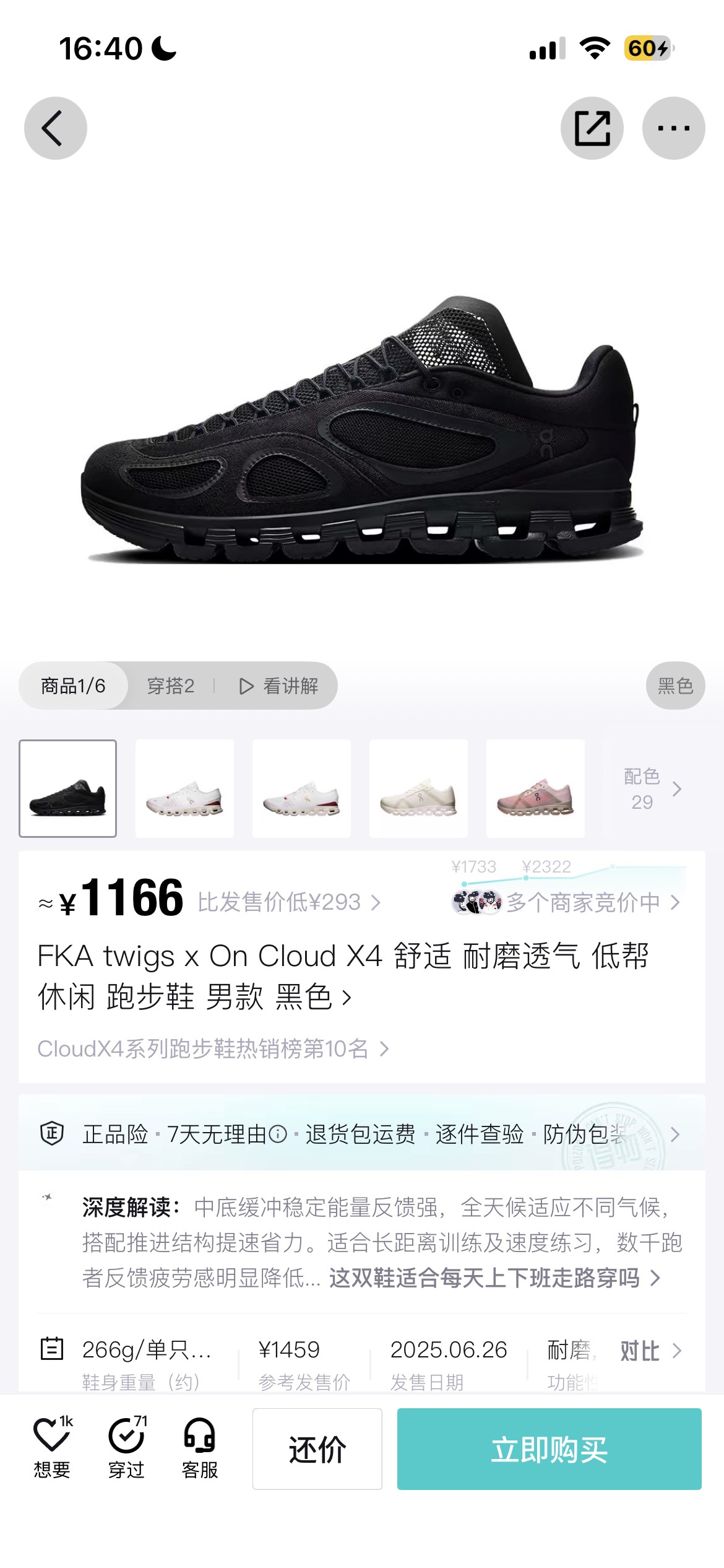 FKA Twigs x On Cloud X4春夏透气轻盈舒适耐磨低帮跑步鞋 特惠 Z-15872