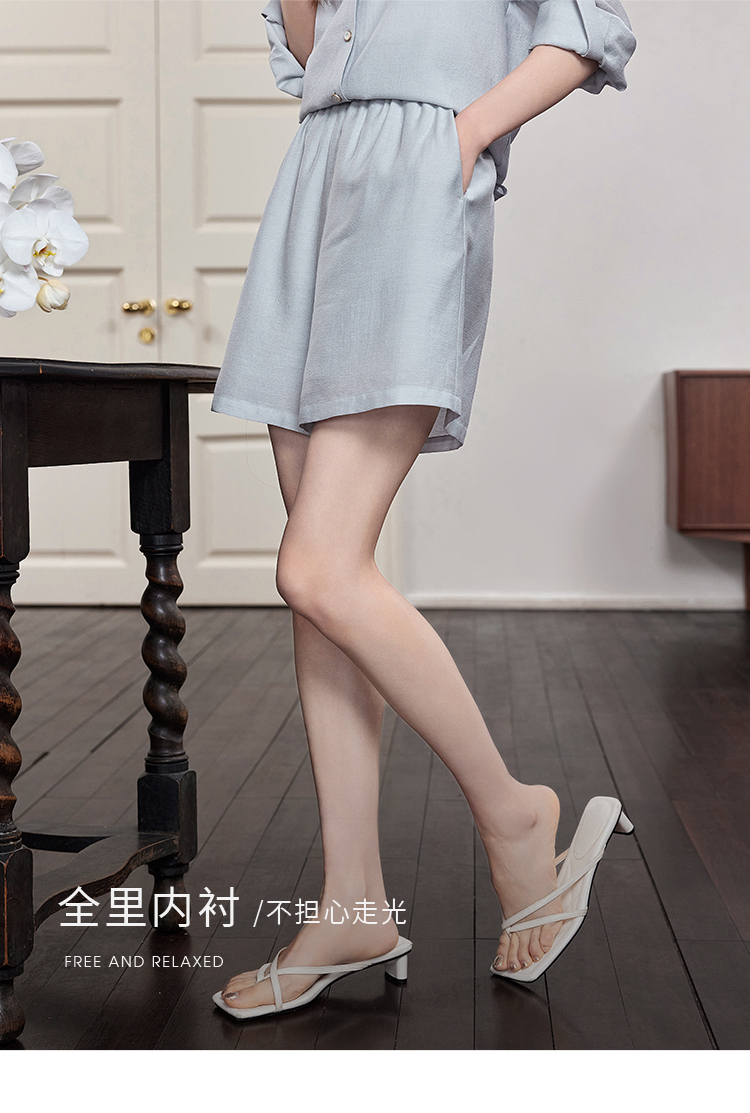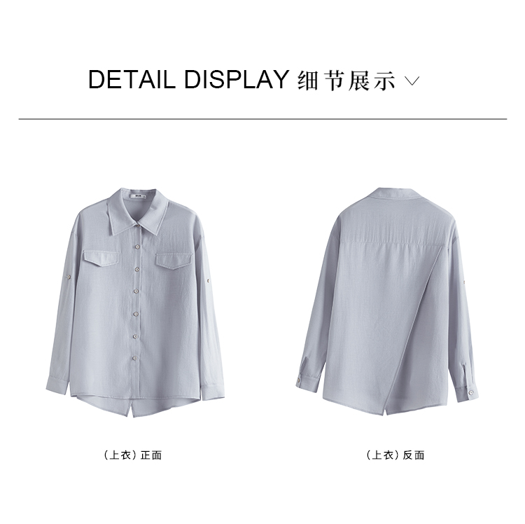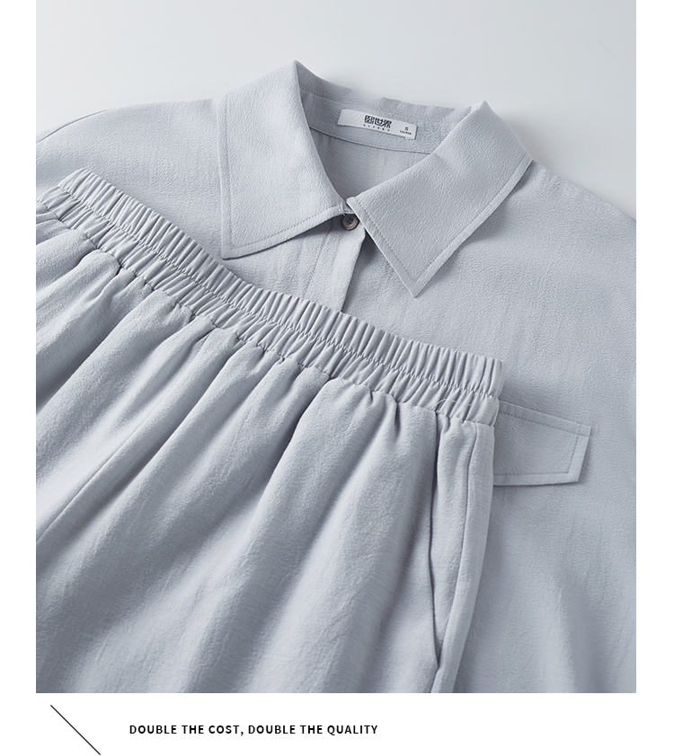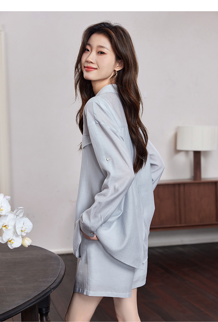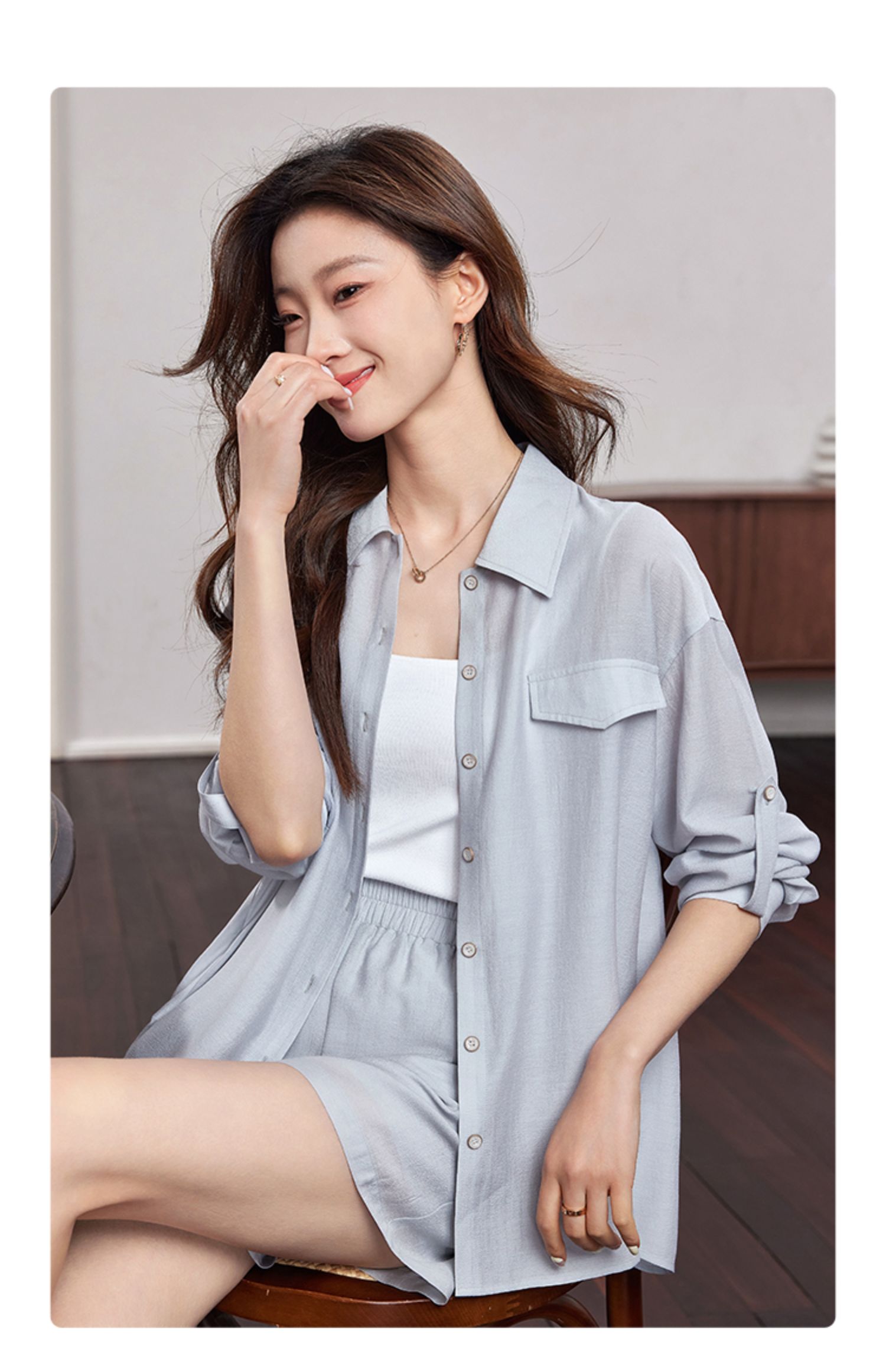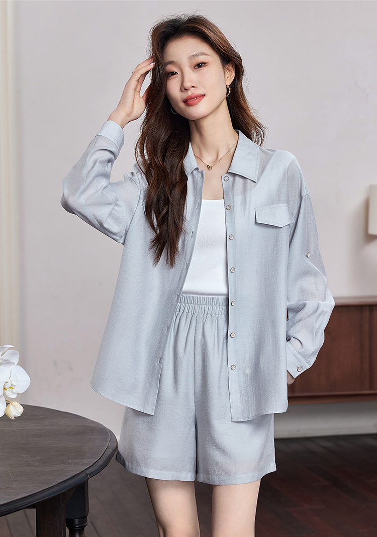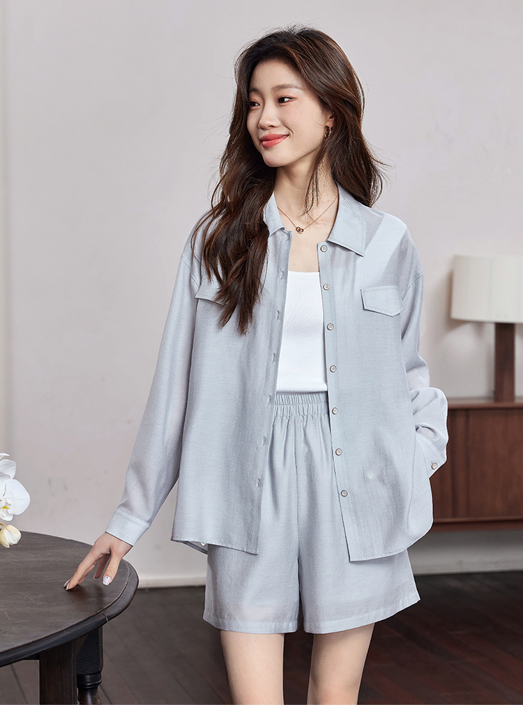 【专属特价】熙世界夏装搭配一整套女醋酸防晒衬衫外套休闲阔腿短裤两件套装
