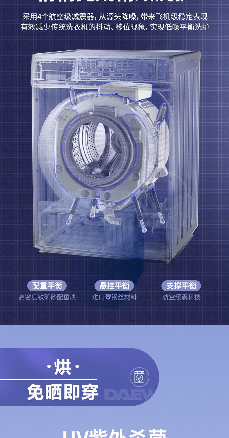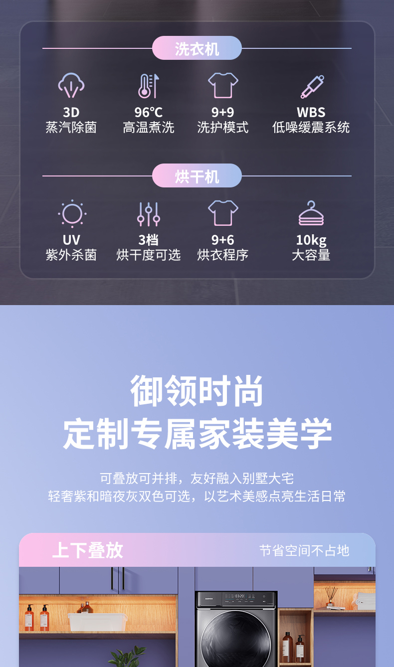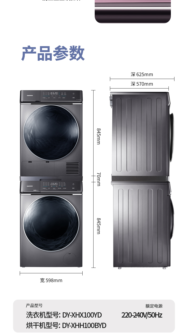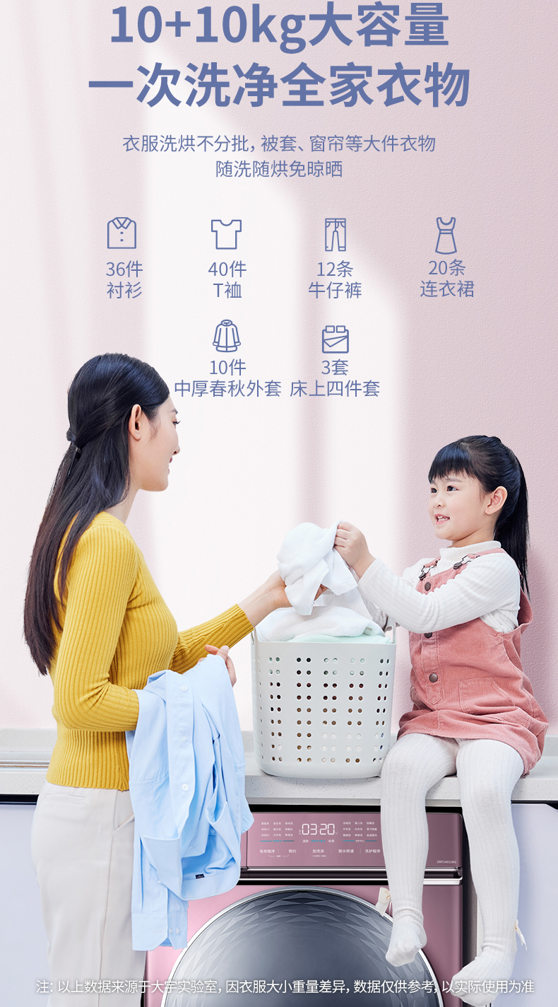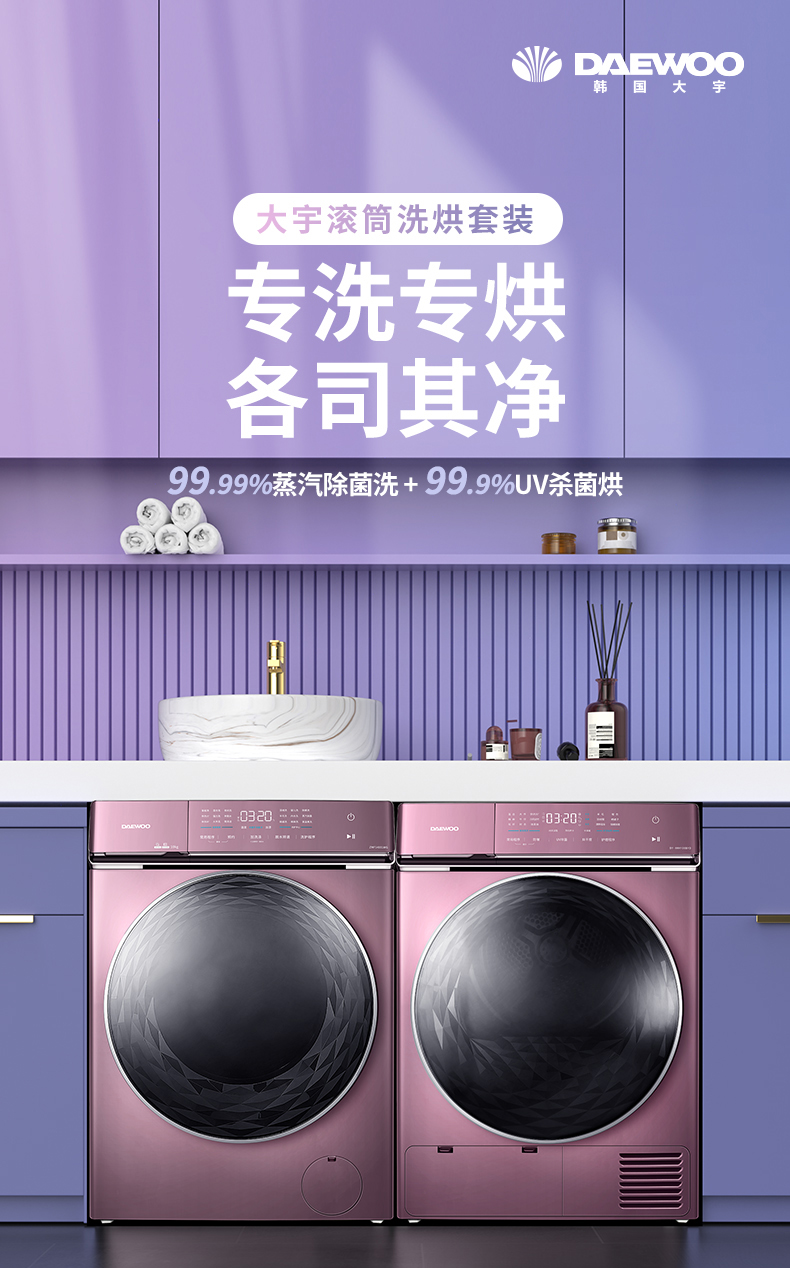 大宇(DAEWOO)洗烘套装 滚筒式 全自动洗衣机+热泵烘干机DY-XHH100BYD +DY-XHX100YD