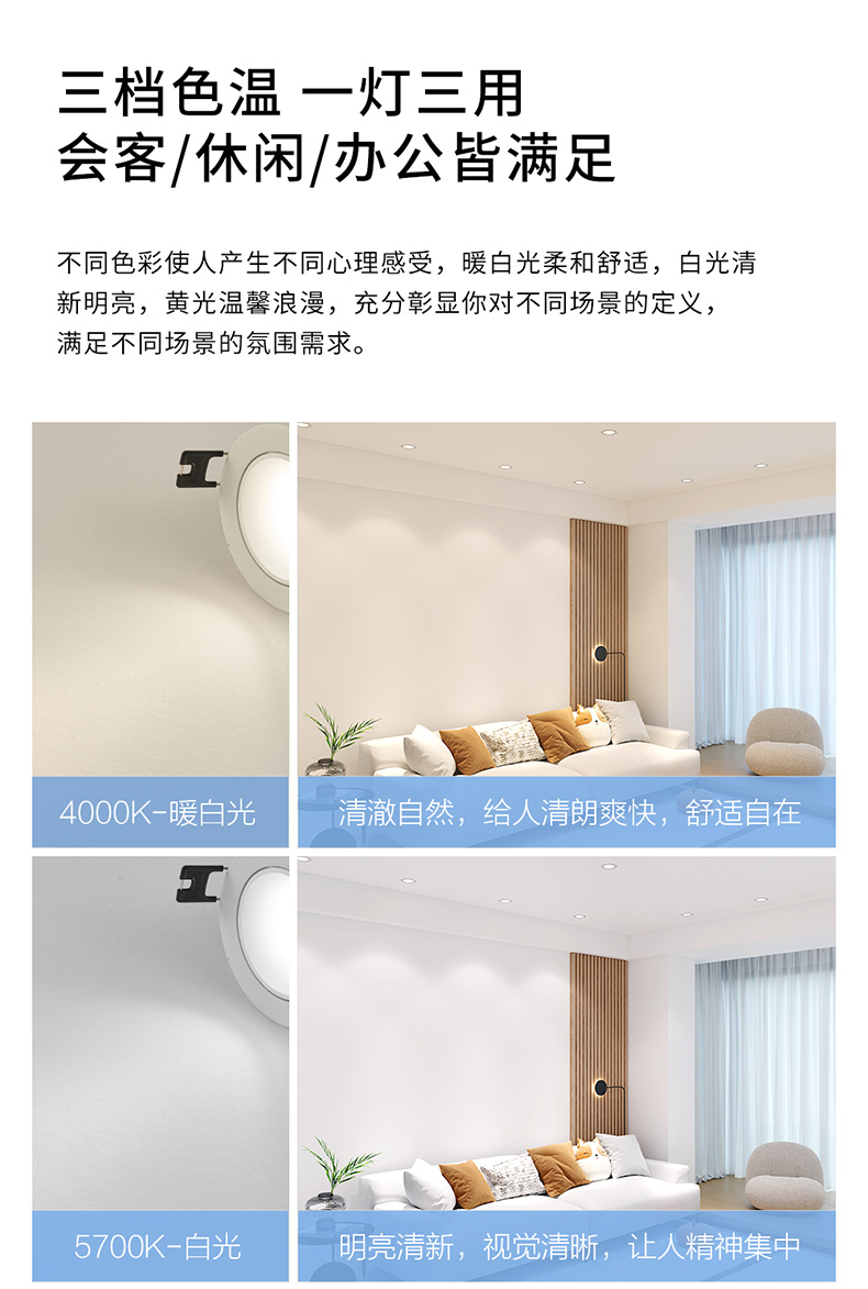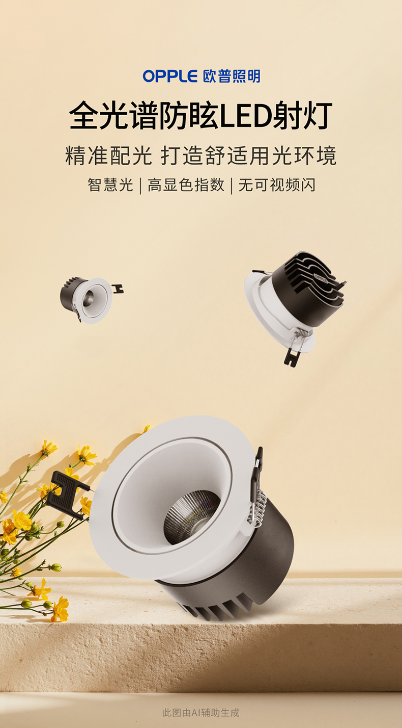 欧普(OPPLE)射灯RA95高显色调色客厅天花灯嵌入式家用防眩LED无主灯明炫
