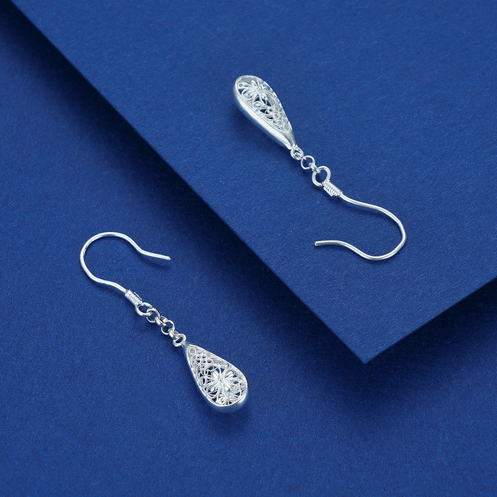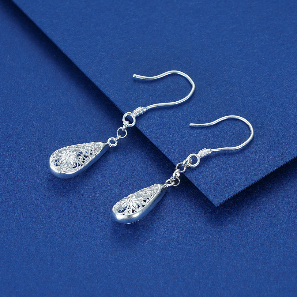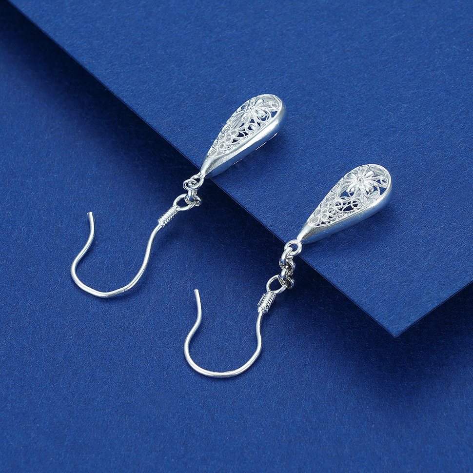 S990银镂空水滴耳环【LEH000042】花丝2101