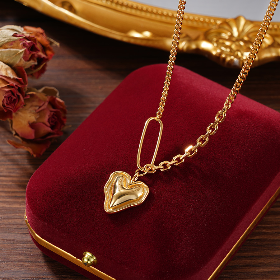 【寓意】:项链融入爱心元素,采用镀金工艺打造。造型简约立体,却兼具灵动感与肌理感。寓意情绪汹涌,爱意渐浓。