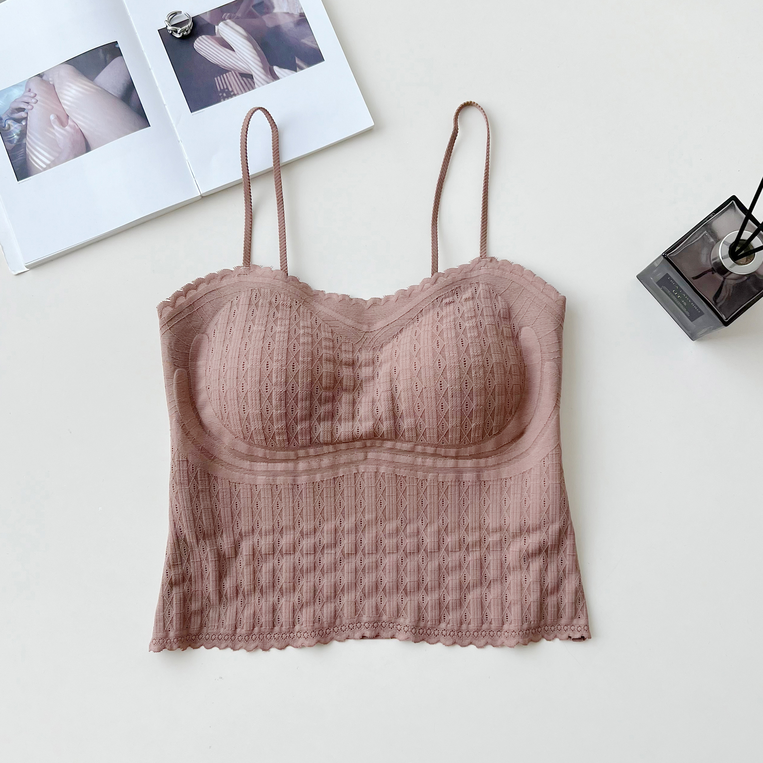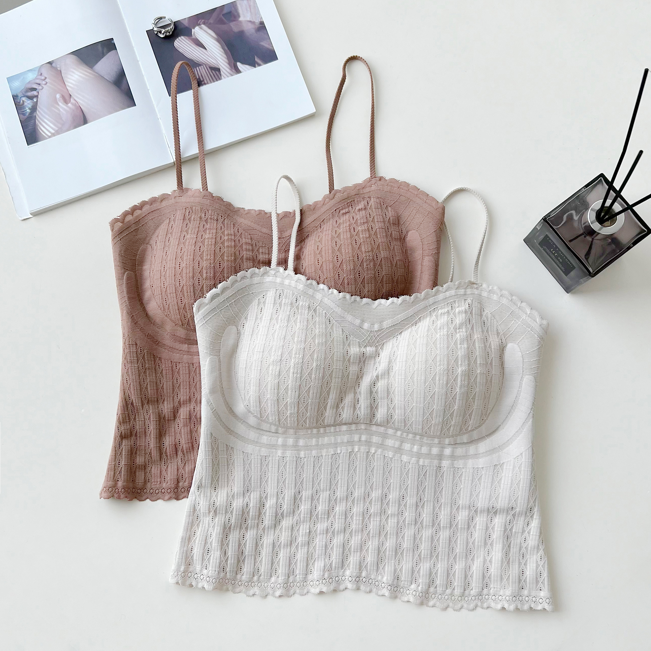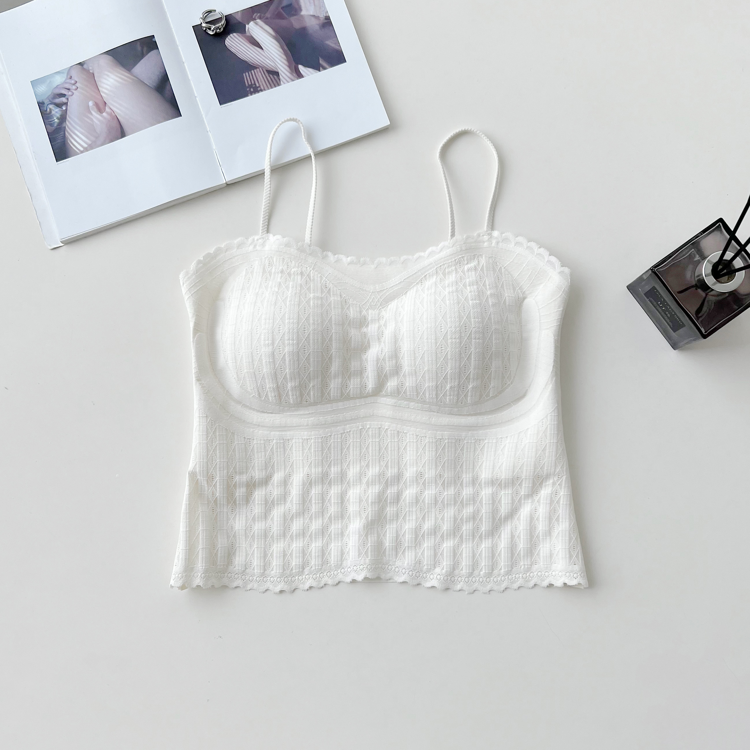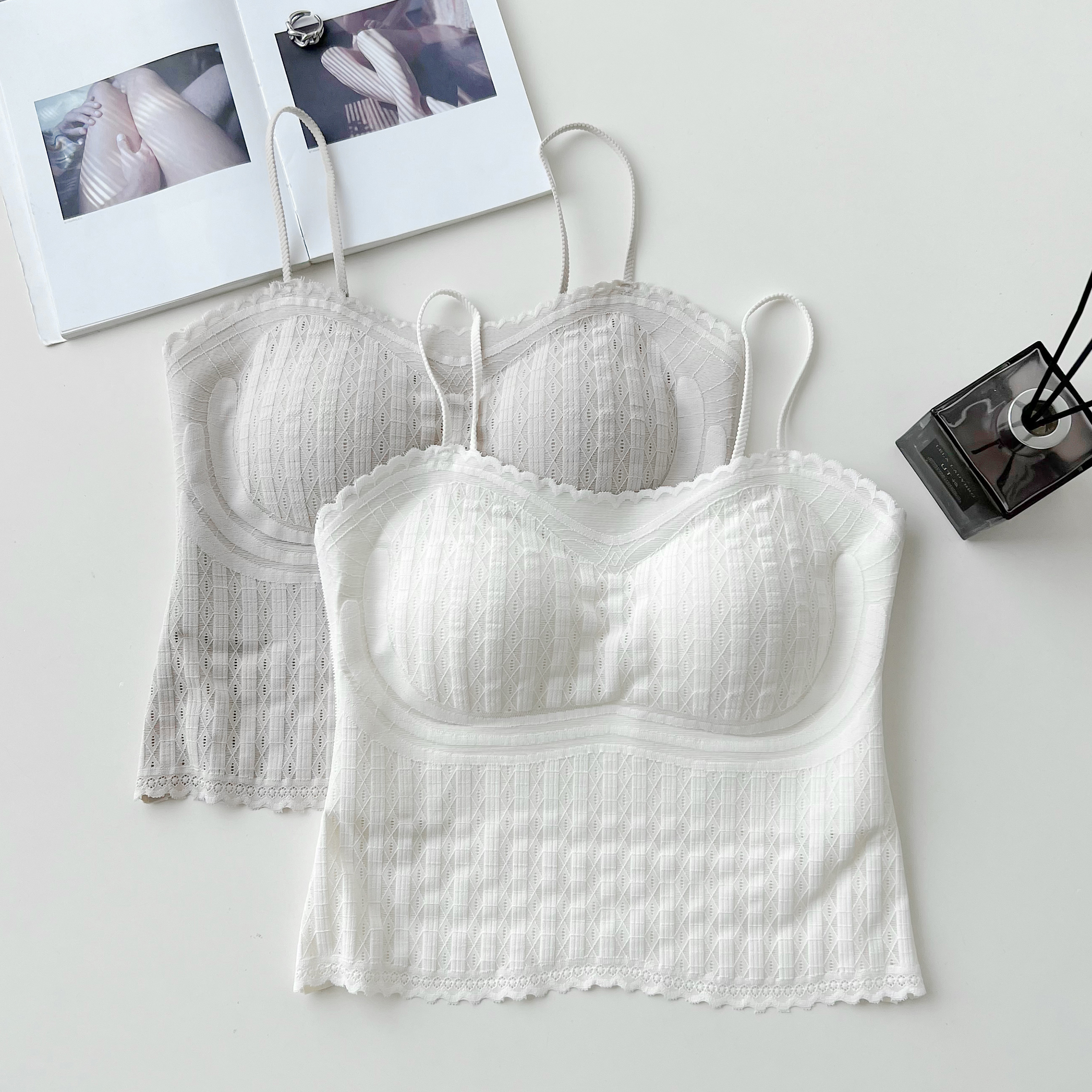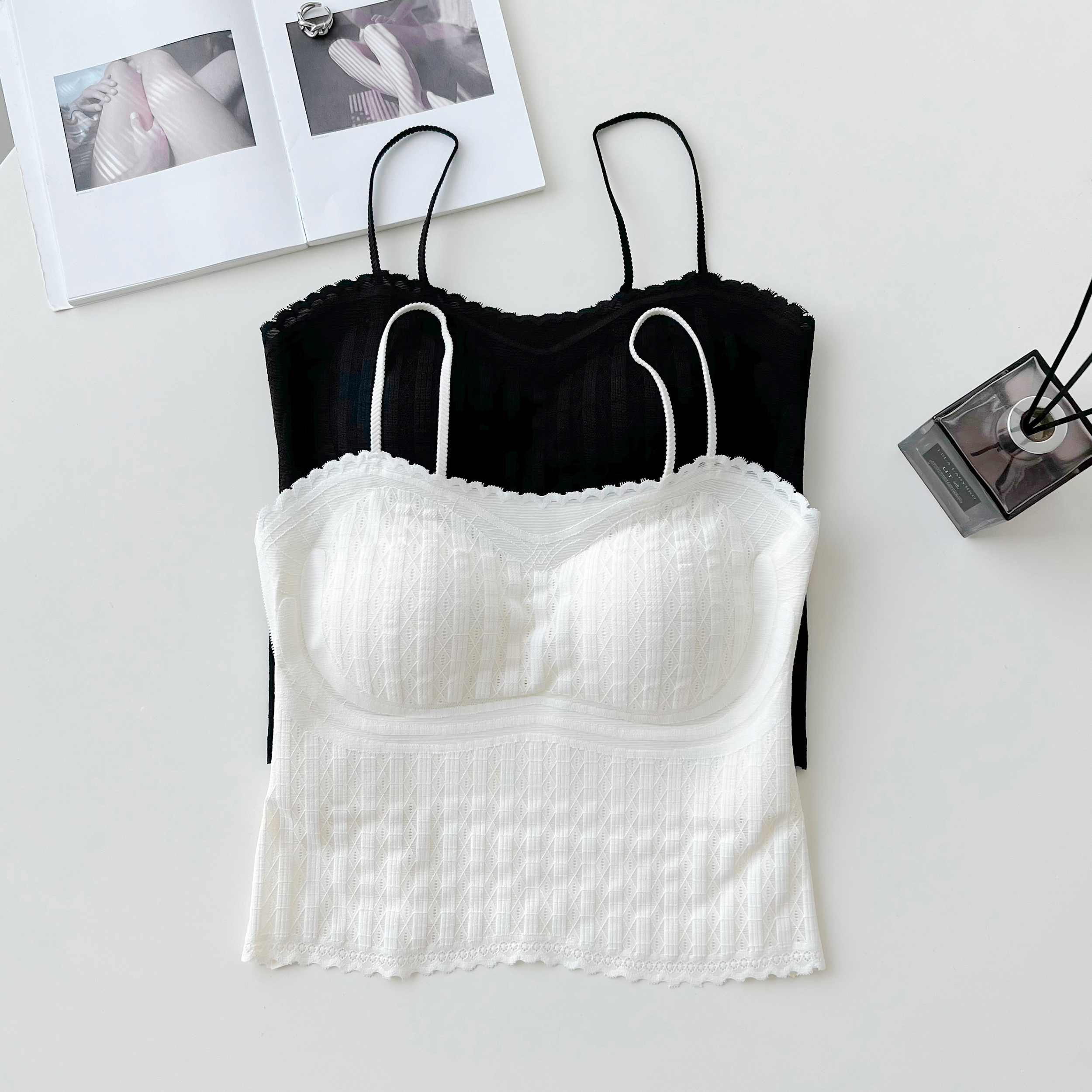 老米优品🎈甜美女生人手一件!蕾丝带胸垫设计 唯美细肩带打底背心,巨温柔哦 ! BX240325A