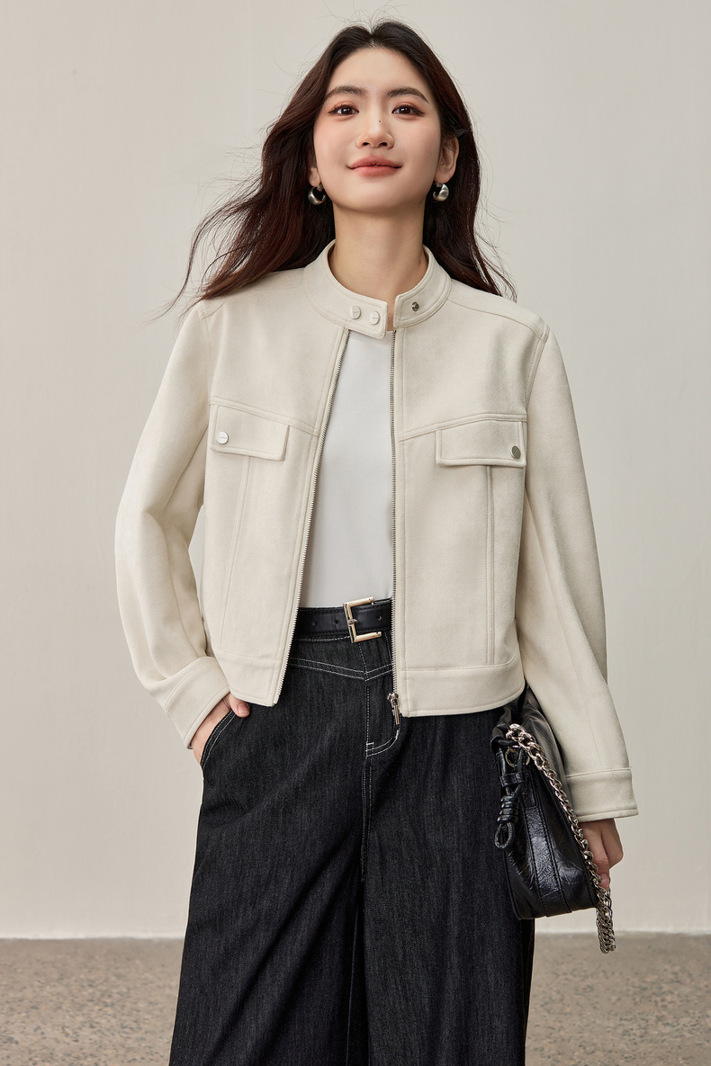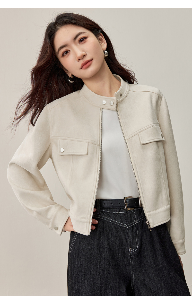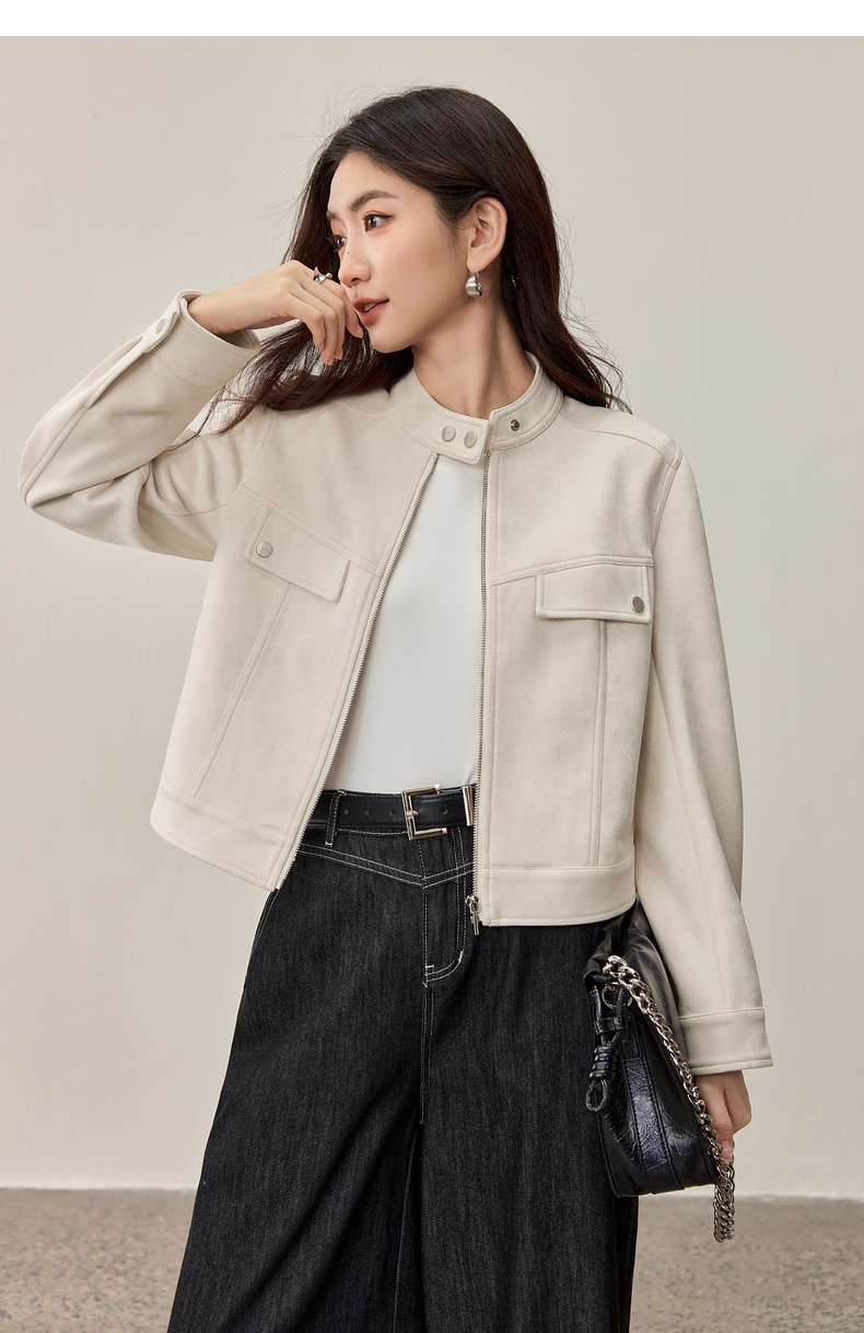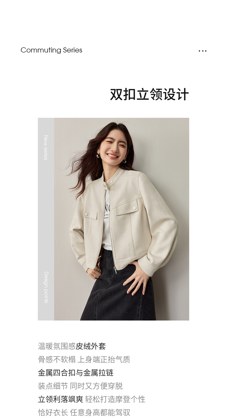 【内购】【双扣立领】都市通勤气质立领金属拉链长袖皮绒外套-153WB2100