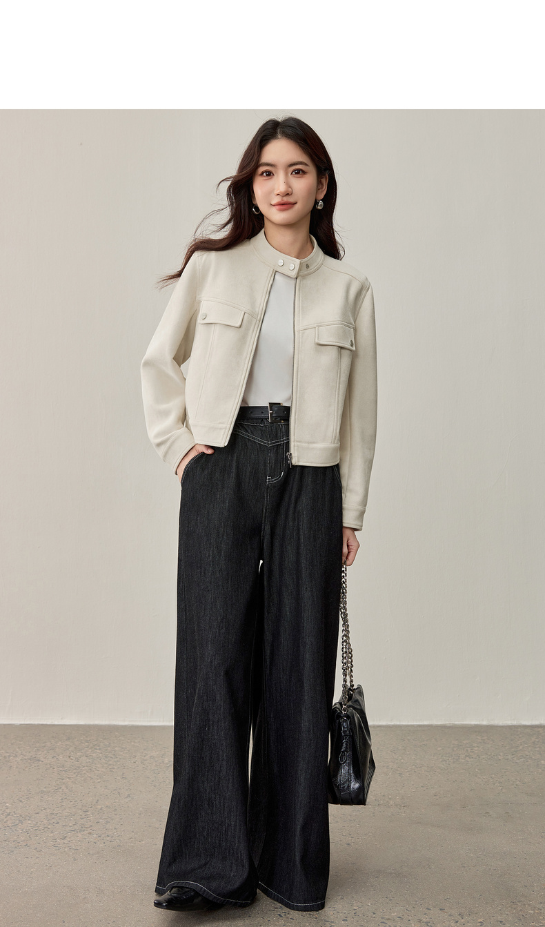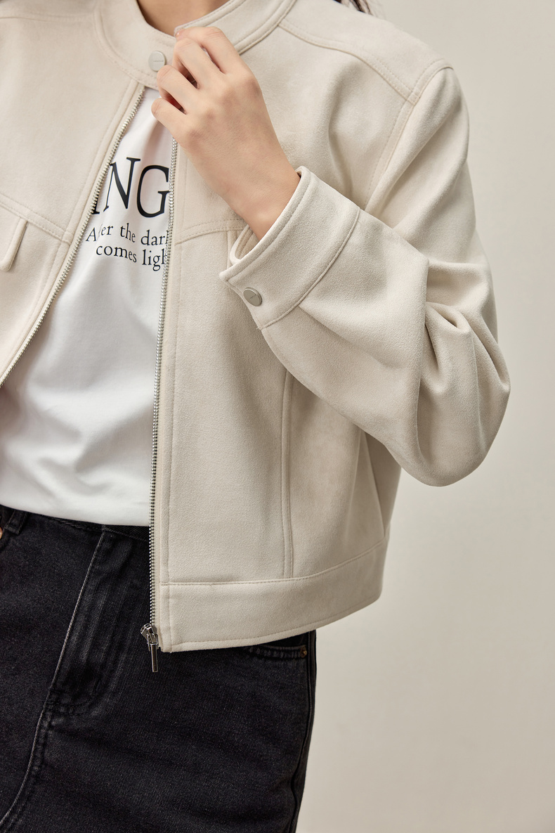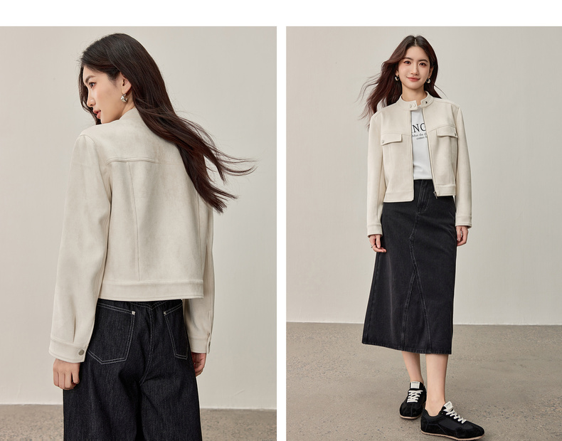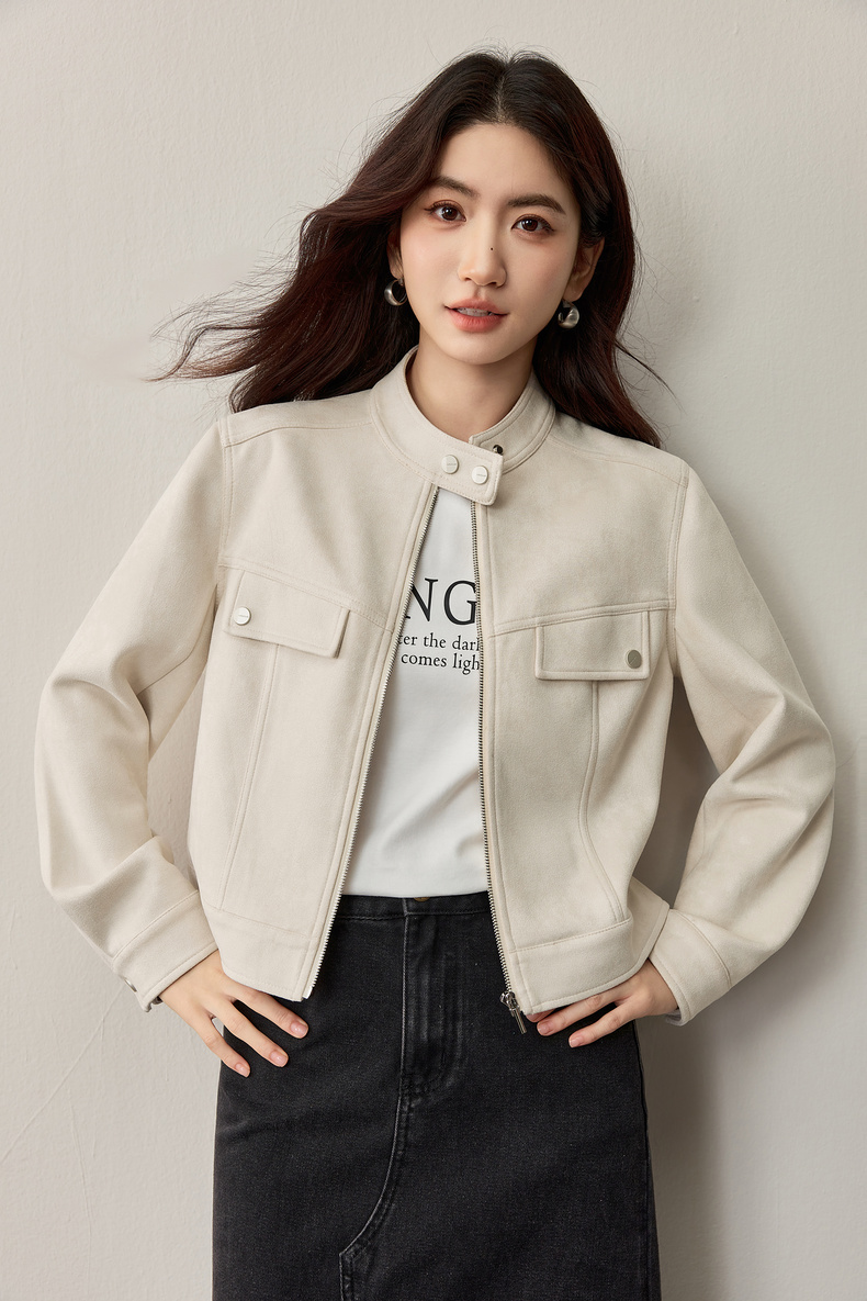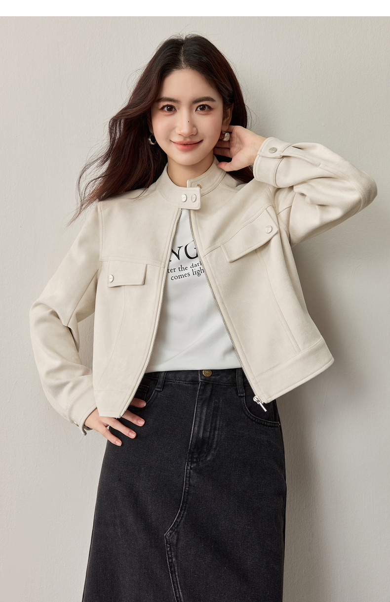 【内购】【双扣立领】都市通勤气质立领金属拉链长袖皮绒外套-153WB2100
